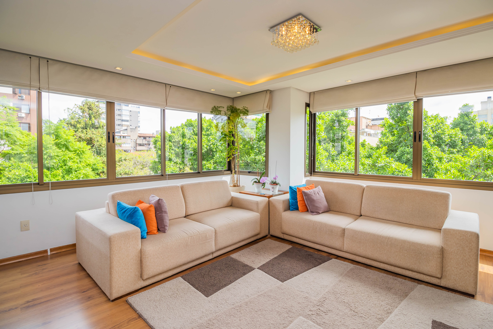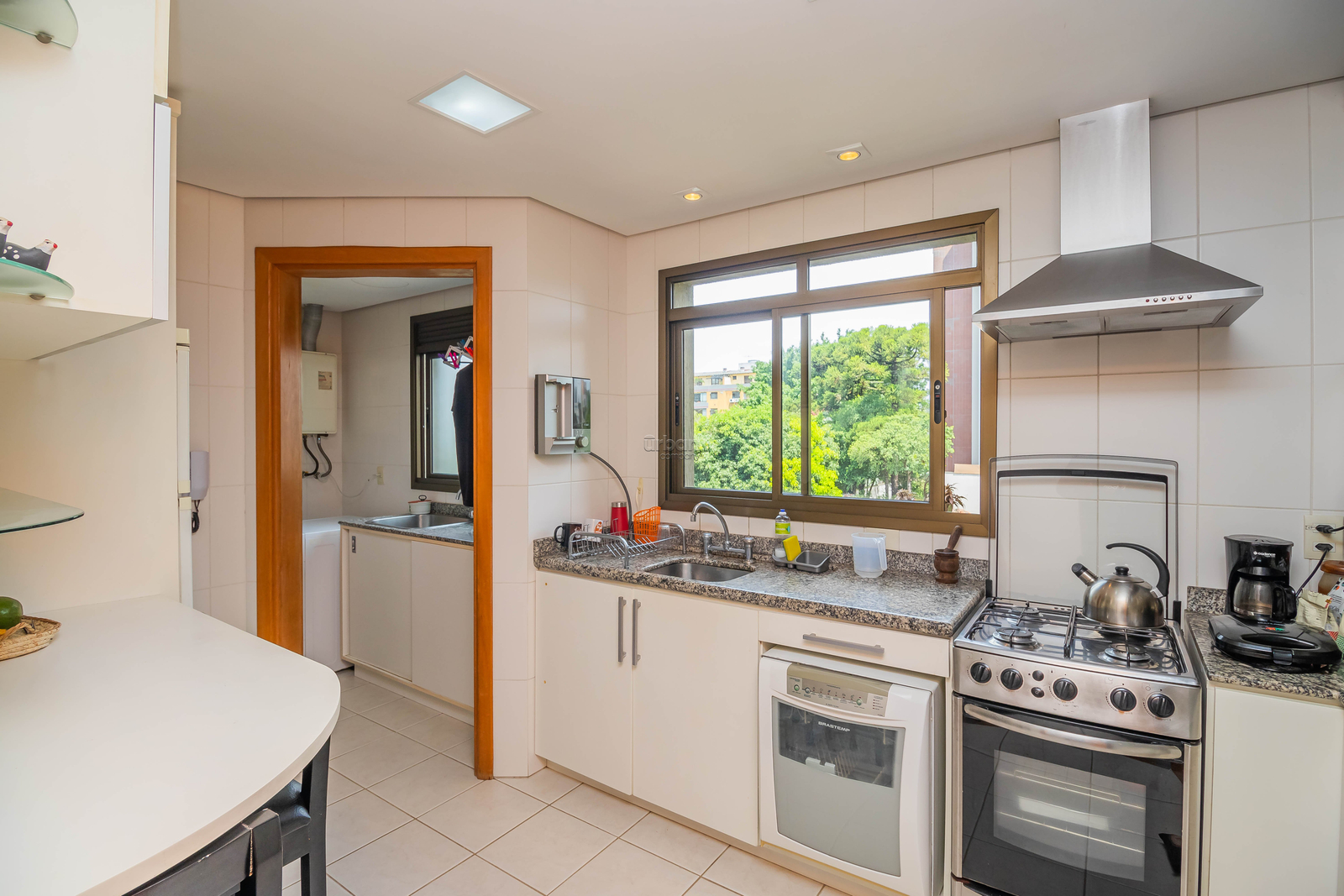 São 3 dormitórios, sendo 1 suíte, todos com móveis planejados de alta qualidade. A cozinha é funcional e bem distribuída, integrada à área de serviço separada, que conta com um banheiro auxiliar. Todos os ambientes possuem ventilação natural, garantindo conforto e bem-estar.