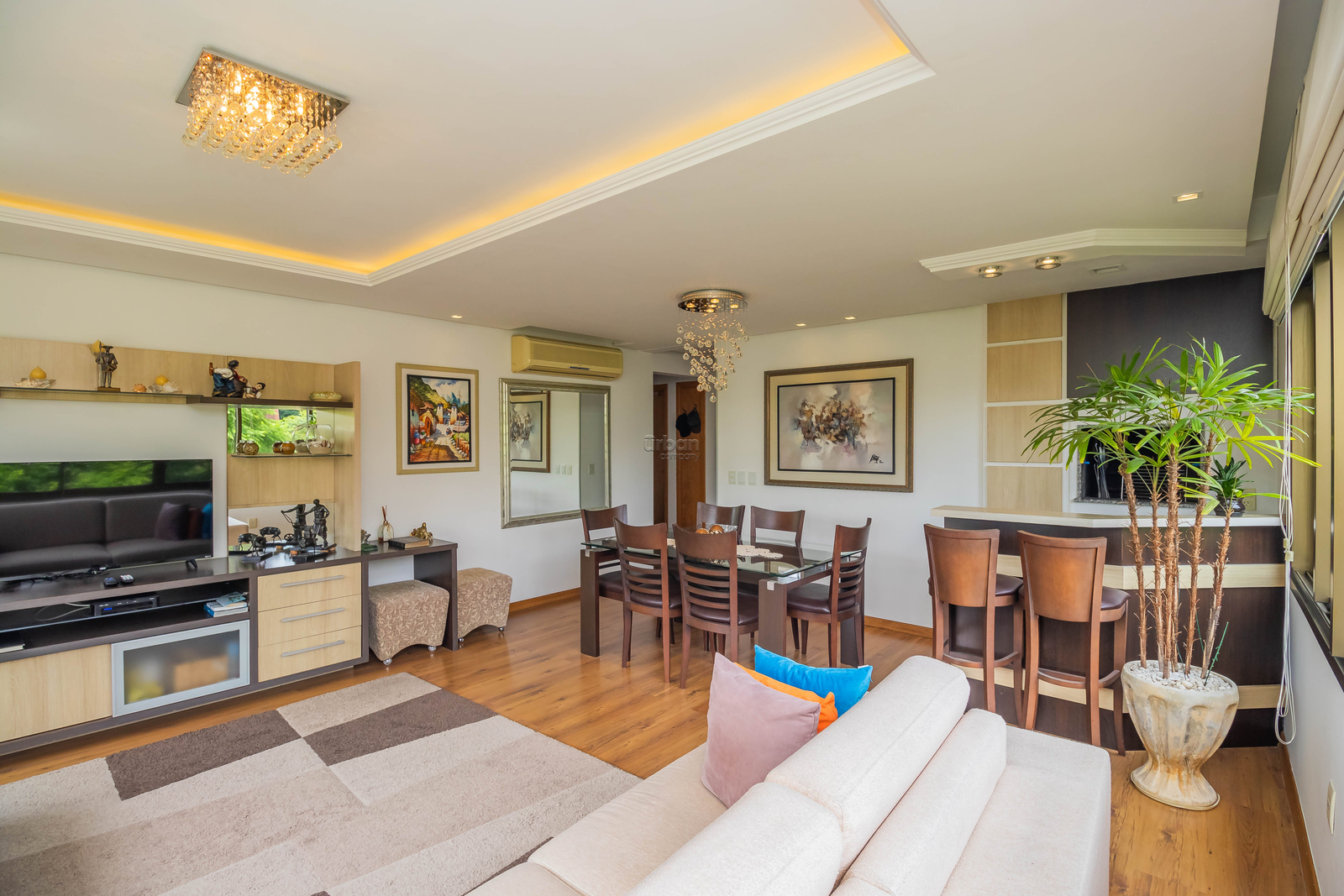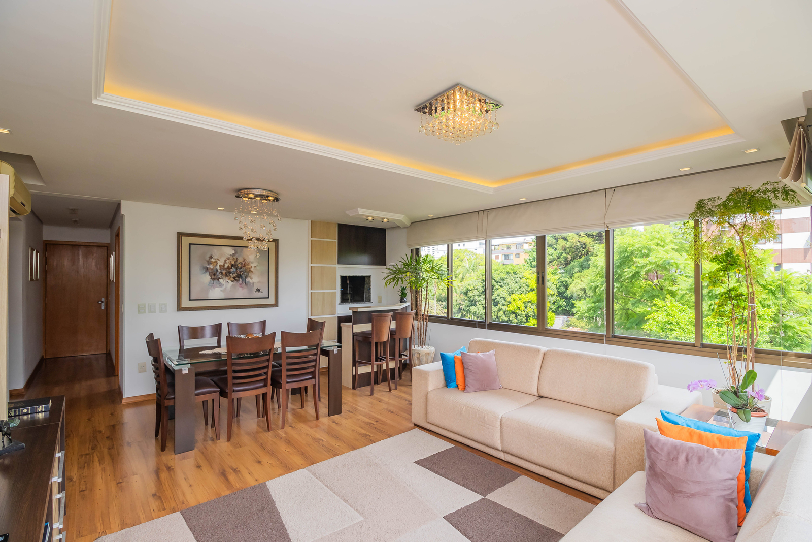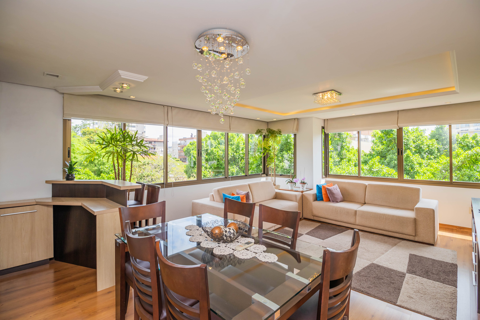 Lindo apartamento mobiliado, com ambientes amplos, bem iluminados e excelente posição solar. A sala de estar conta com janelas grandes, proporcionando uma vista panorâmica deslumbrante, além de um charmoso mini bar integrado à churrasqueira.