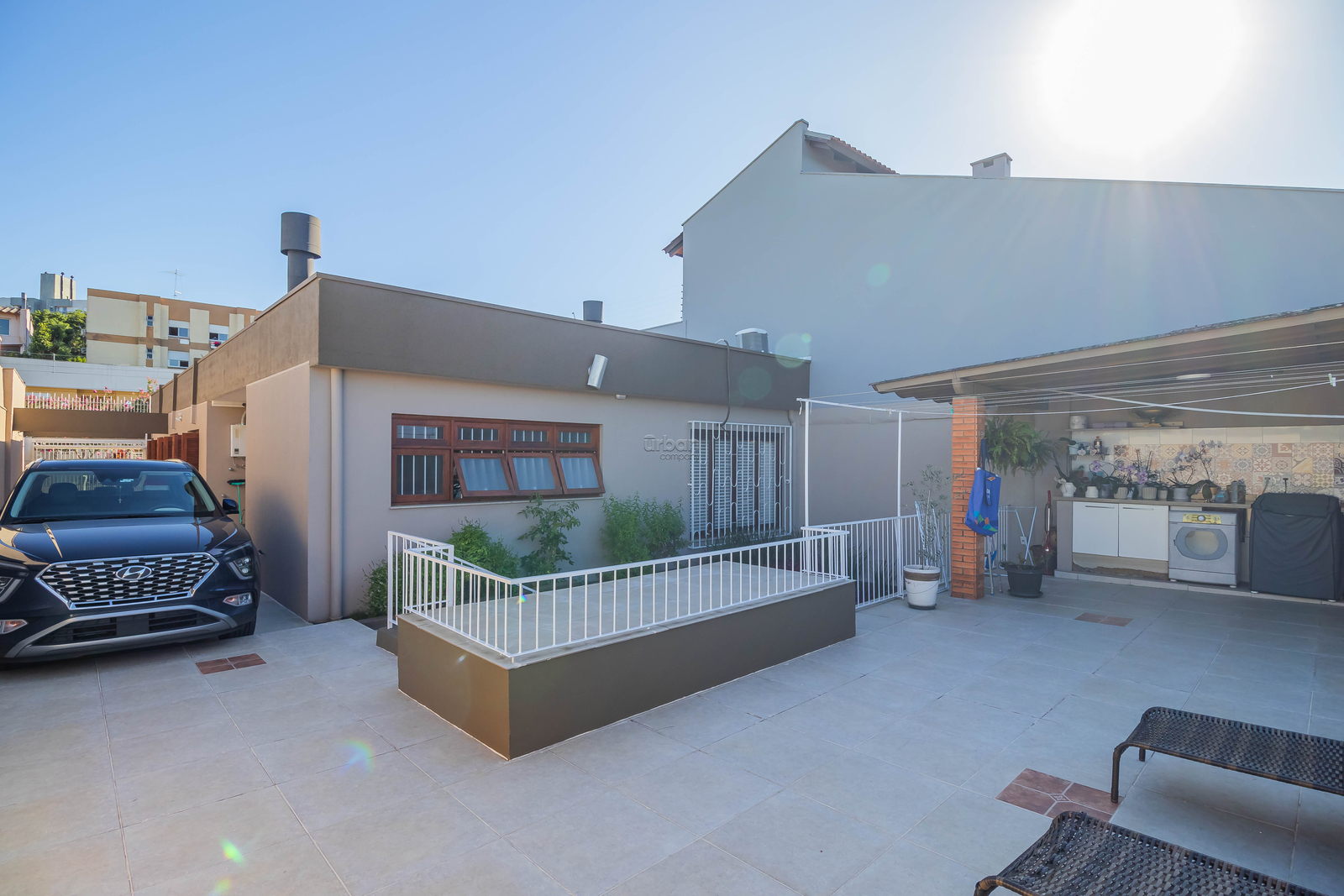 Nos fundos da propriedade, você encontrará um espaço de lazer que inclui uma lavanderia, perfeito para suas atividades diárias. A garagem possui capacidade para até 3 veículos, garantindo segurança e comodidade.