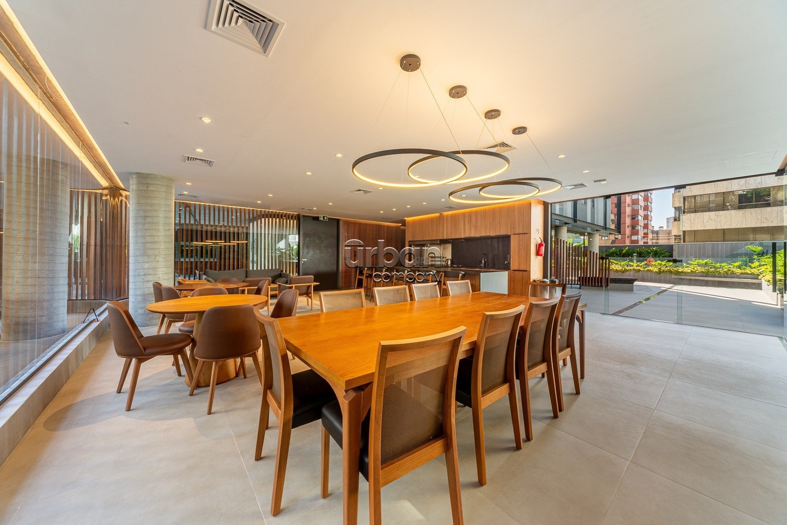 O apartamento possui 170m² de área privativa, sendo 10m² dedicados à sacada. Com 3 suítes, ele está localizado um andar abaixo da cobertura e conta com 3 vagas de garagem amplas e individuais.