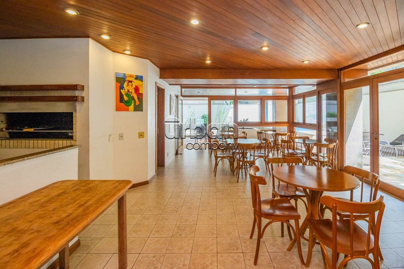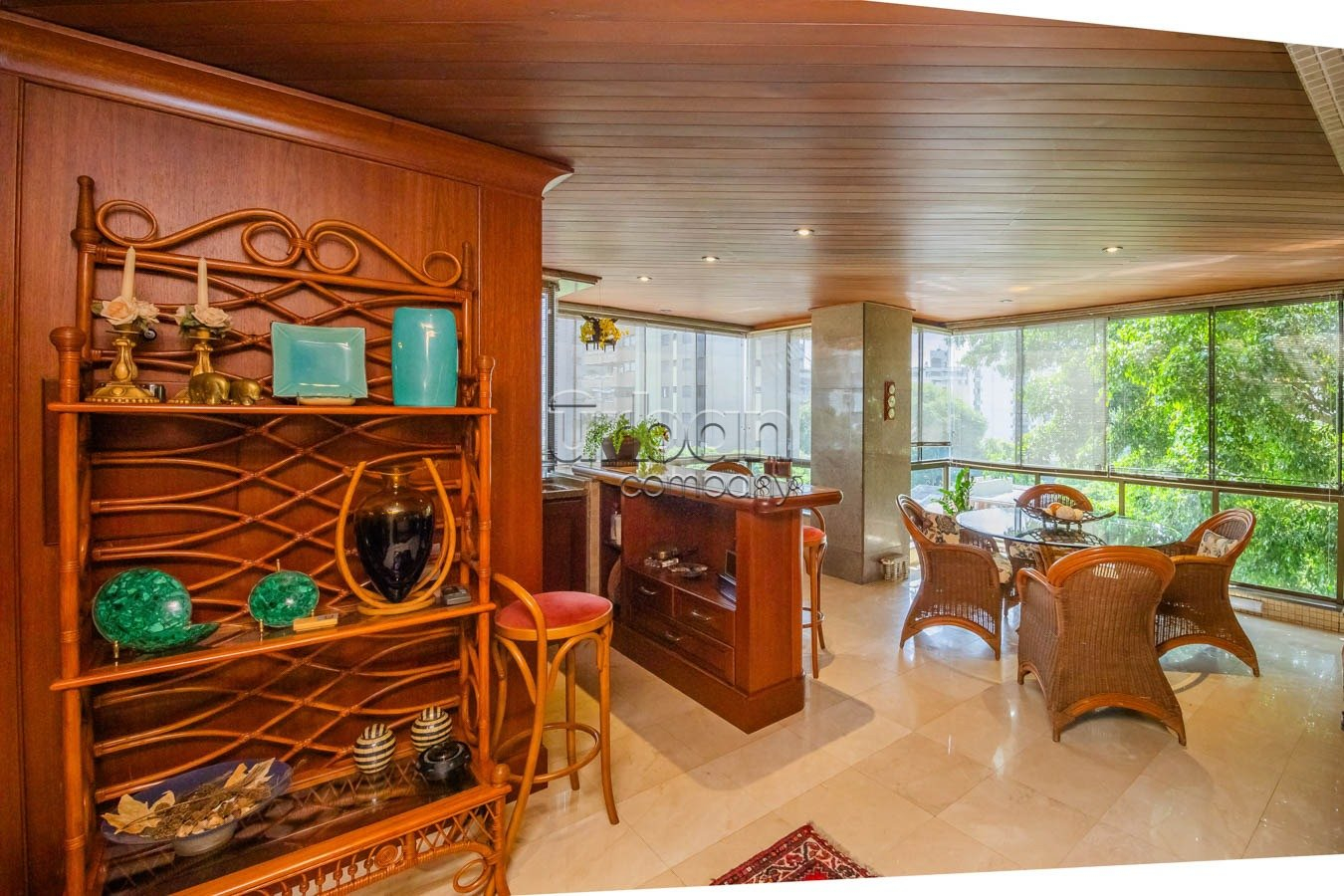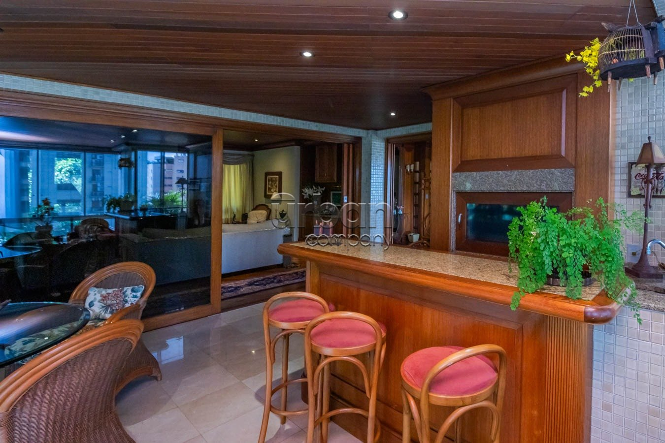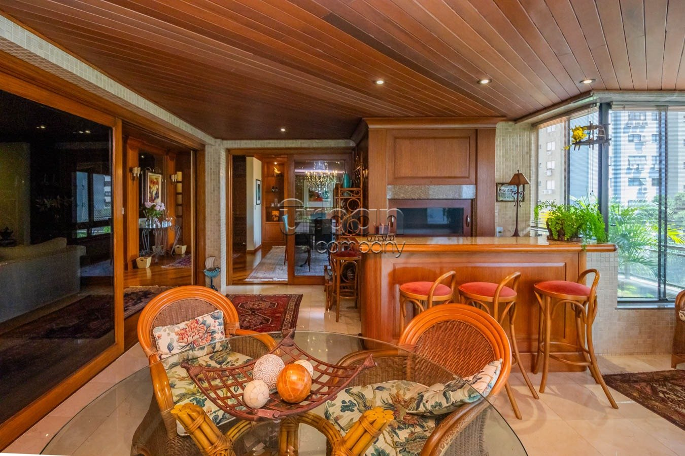Com 270 m² de área privativa, o imóvel oferece um living integrado para três ambientes, com sacada, lareira e um excelente espaço gourmet com churrasqueira. Conta ainda com dependência completa, estar íntimo e três suítes, sendo duas suítes tipo América com banheira de hidromassagem e a suíte master, que dispõe de sacada, closet e banheira de hidromassagem. Além disso, dois quartos possuem sacada.