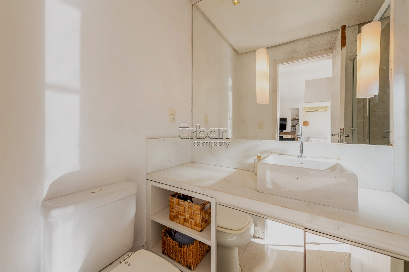 Também possui um depósito e uma sacada com vista ampla da cidade de Porto Alegre, com direito a um pôr do sol maravilhoso.