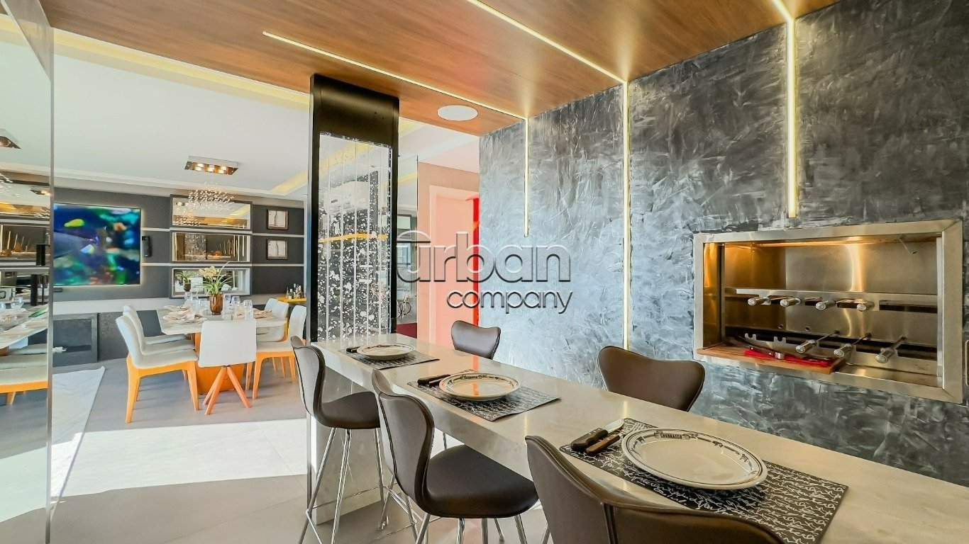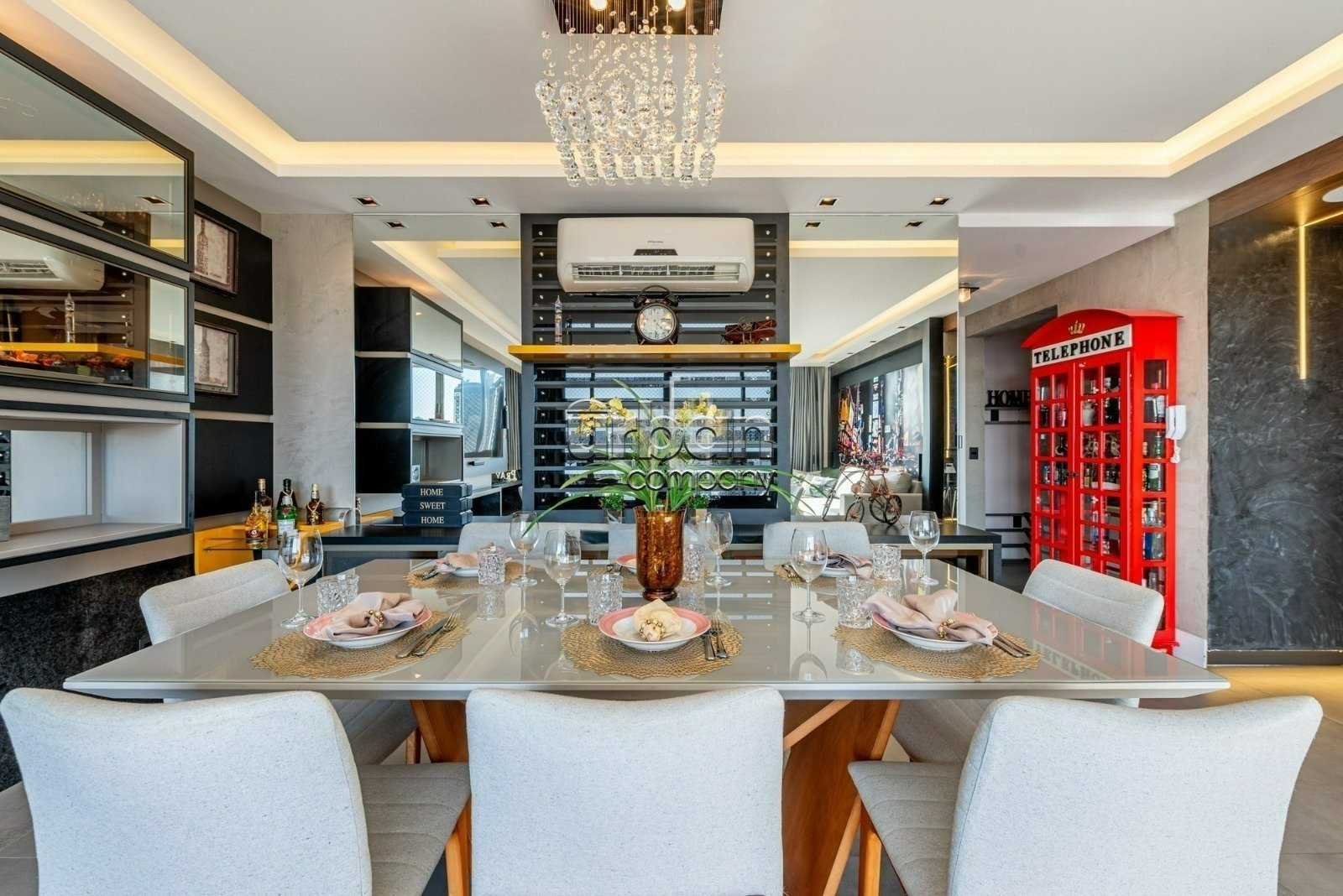 O living integrado foi cuidadosamente projetado para oferecer dois ambientes acolhedores, com sala de estar e jantar. A sala de estar é equipada com uma lareira a álcool, criando um ambiente aconchegante, enquanto as janelas do piso ao teto garantem excelente iluminação natural. A cozinha moderna se conecta ao ambiente gourmet com churrasqueira elétrica, perfeita para receber amigos e familiares.