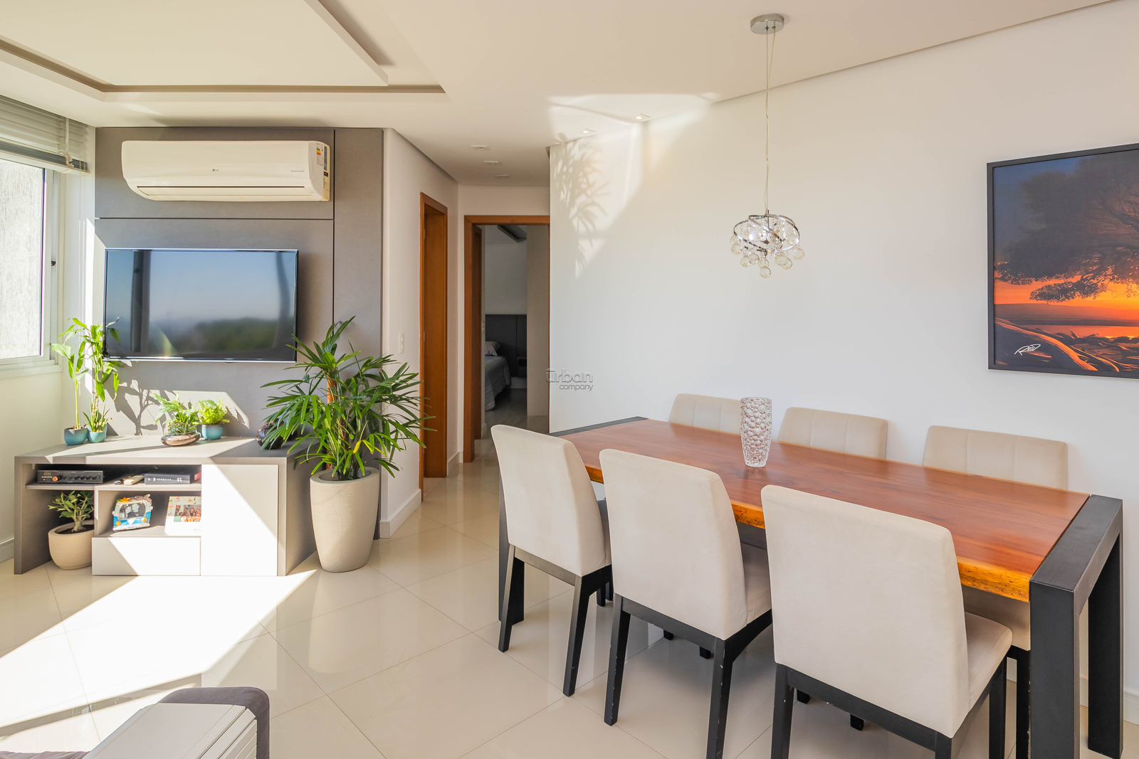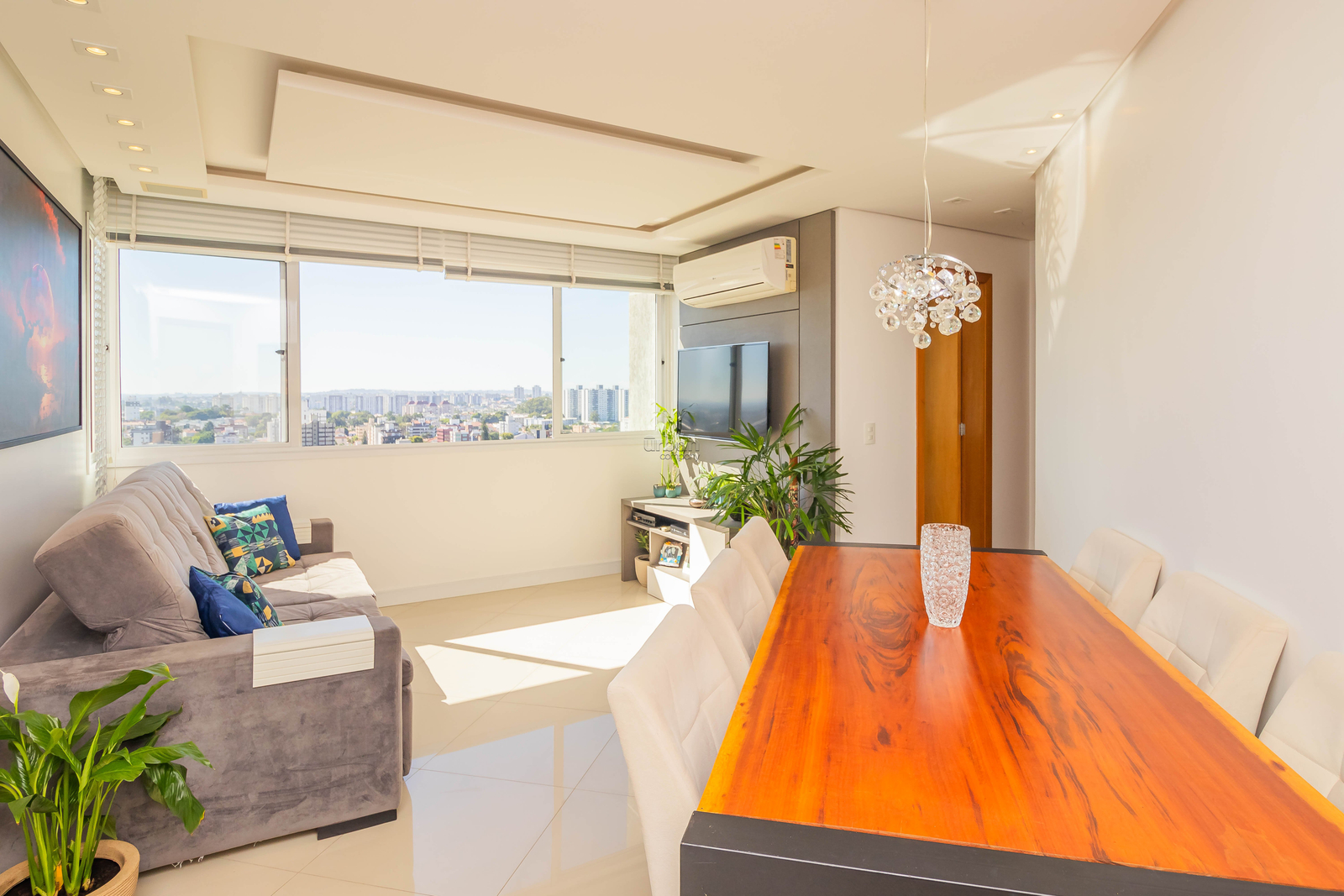 Apartamento de frente com 2 dormitórios, sendo 1 suíte, semi mobiliado e decorado por arquiteta, banheiro social, living para 2 ambientes com churrasqueira, cozinha montada e área de serviço separada. O apartamento possui piso laminado e porcelanato. Conta com uma vaga de garagem coberta e escriturada.