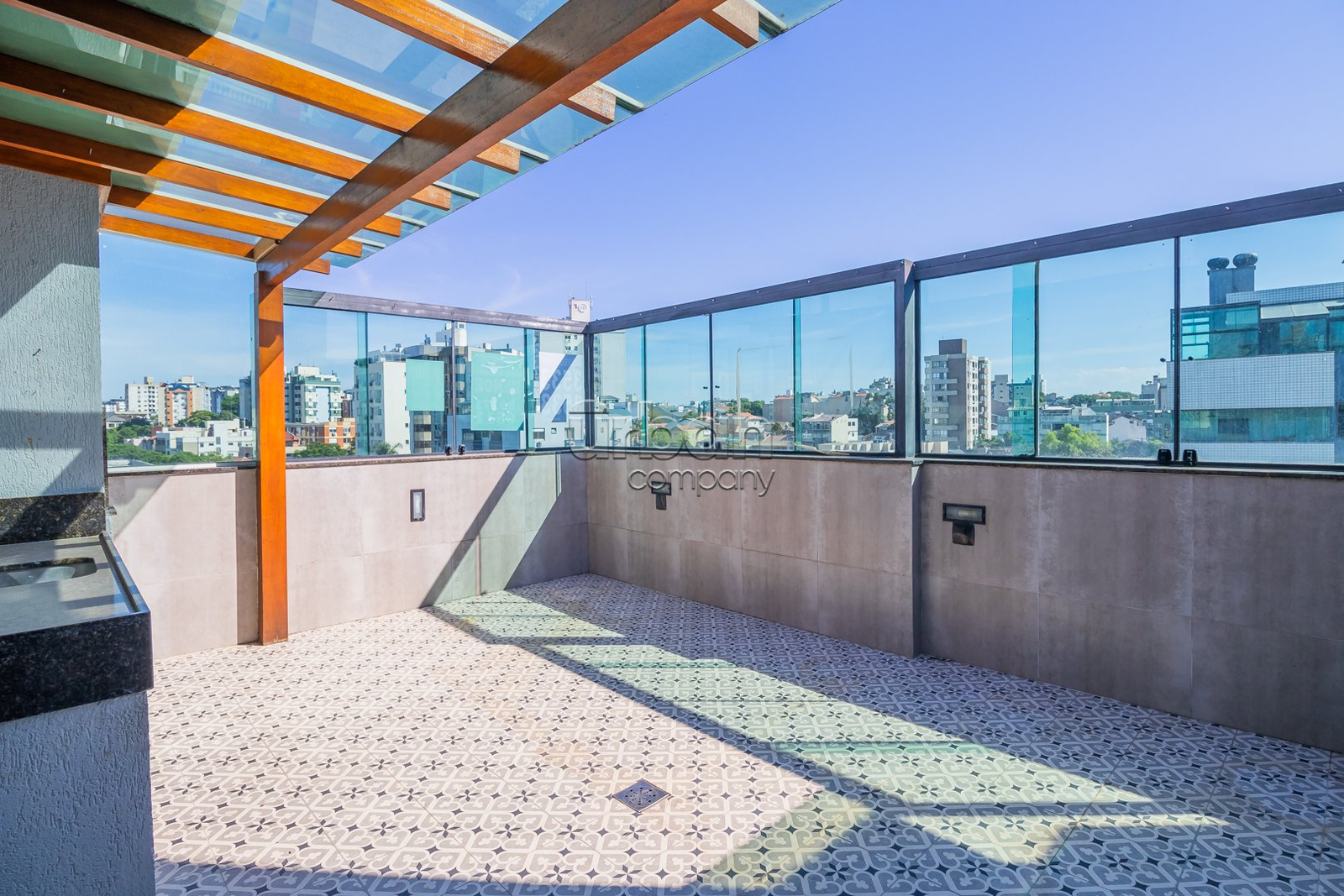 A cobertura possui dois dormitórios, incluindo uma suíte, além de um lavabo e uma cozinha integrada a um amplo living com dois ambientes. No segundo pavimento, encontra-se um espaço ainda mais versátil, composto por um amplo living com lareira, um escritório que pode ser convertido em um terceiro dormitório, um banheiro e um terraço aberto com churrasqueira, ideal para momentos de lazer e convivência.