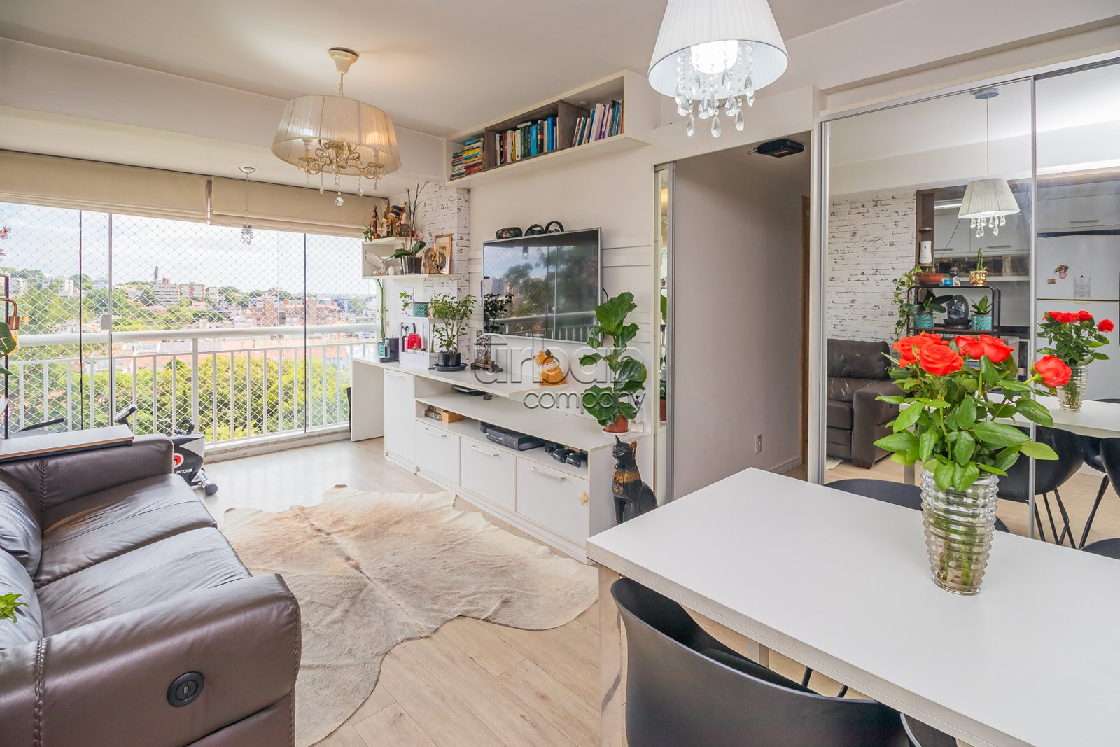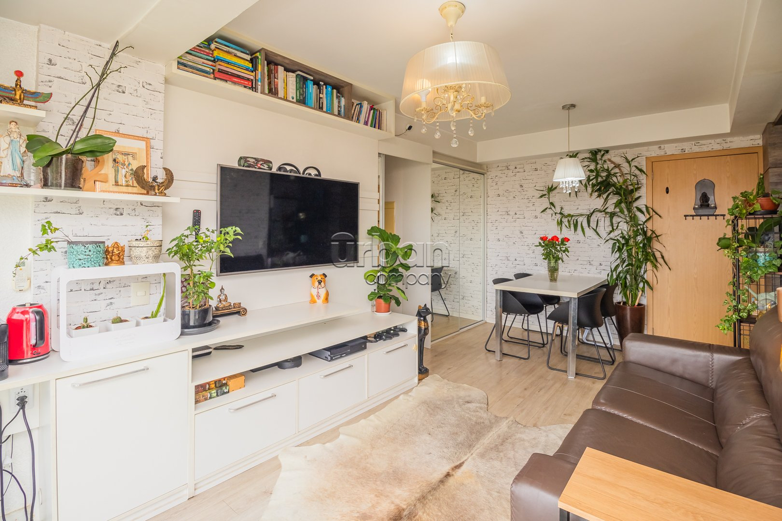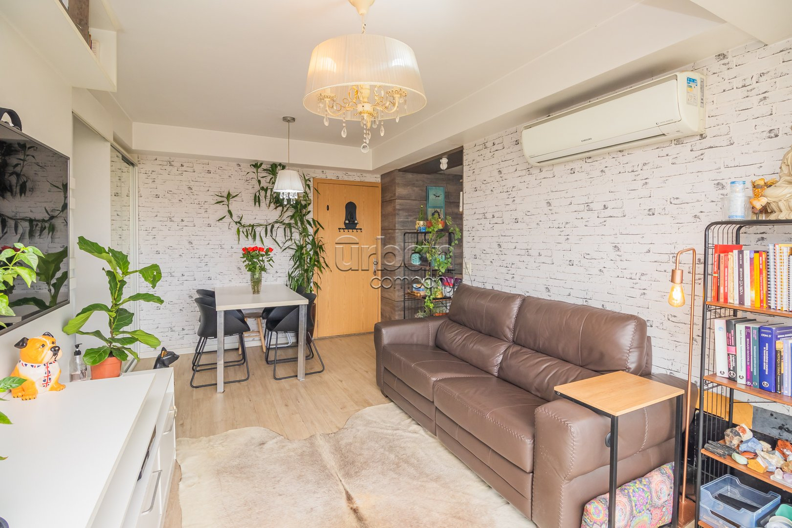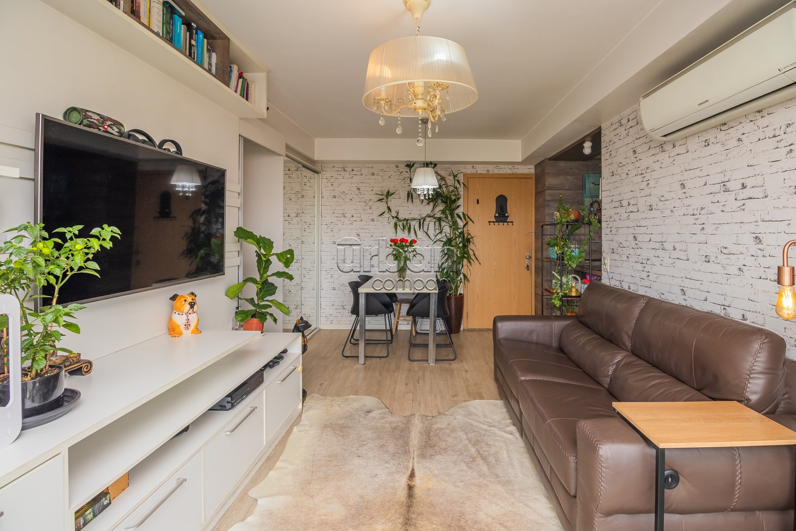 Com ótima distribuição, conta com 2 dormitórios (1 suíte), living para dois ambientes com sacada integrada, cozinha americana com churrasqueira, área de serviço e banheiro social.