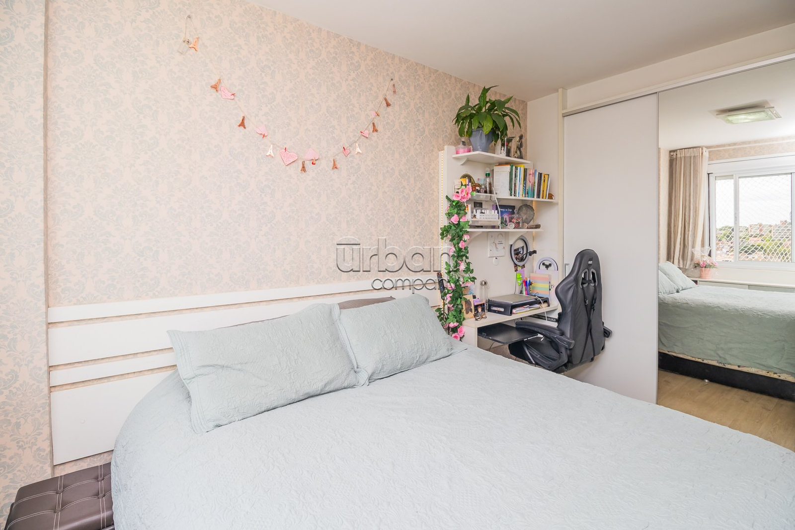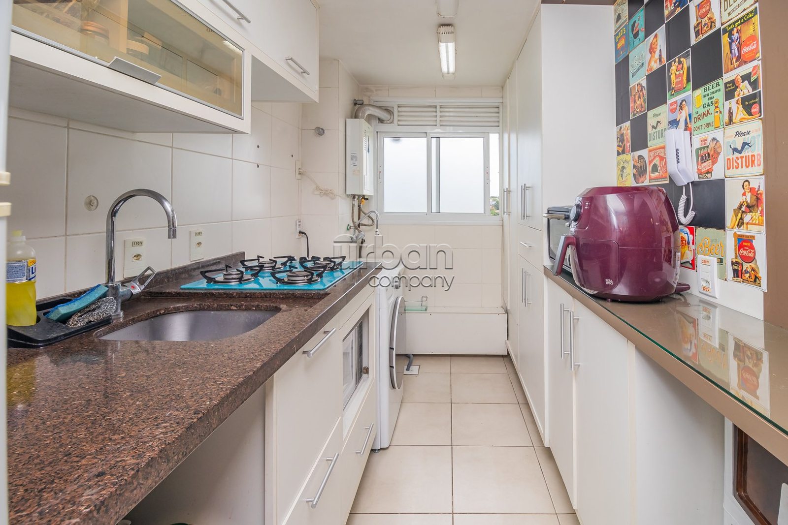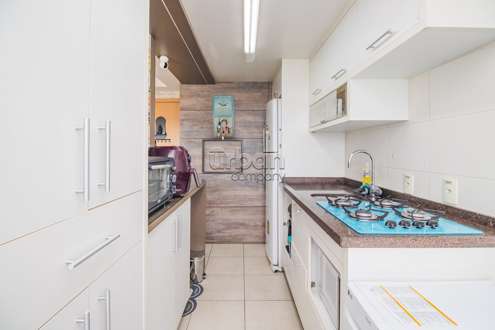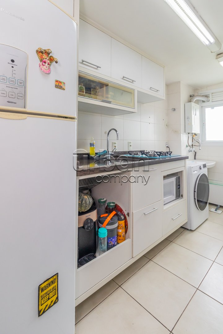 Com ótima distribuição, conta com 2 dormitórios (1 suíte), living para dois ambientes com sacada integrada, cozinha americana com churrasqueira, área de serviço e banheiro social.