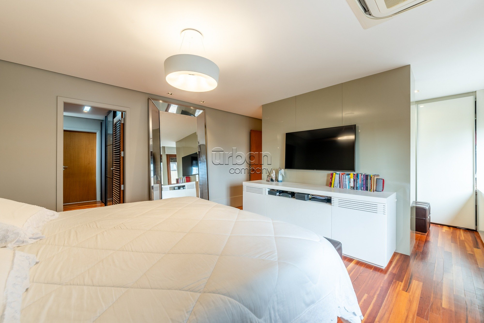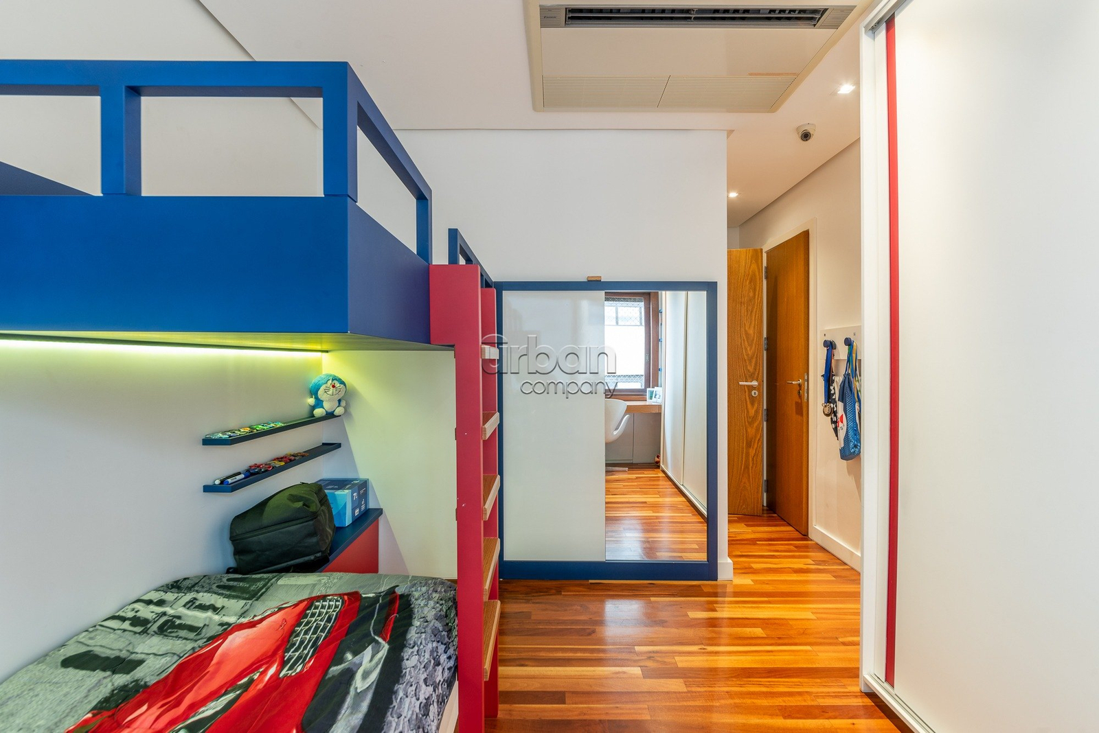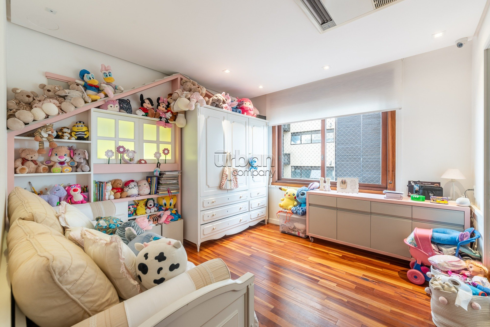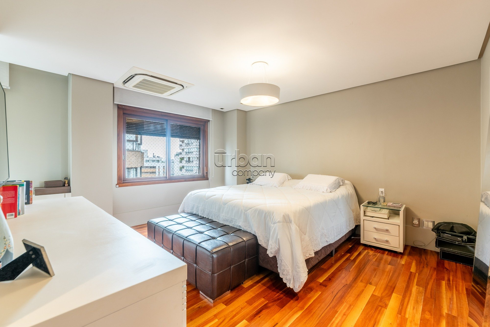 A quarta suíte oferece múltiplas possibilidades de uso, podendo servir como gabinete, sala de brinquedos ou um aconchegante quarto de hóspedes.