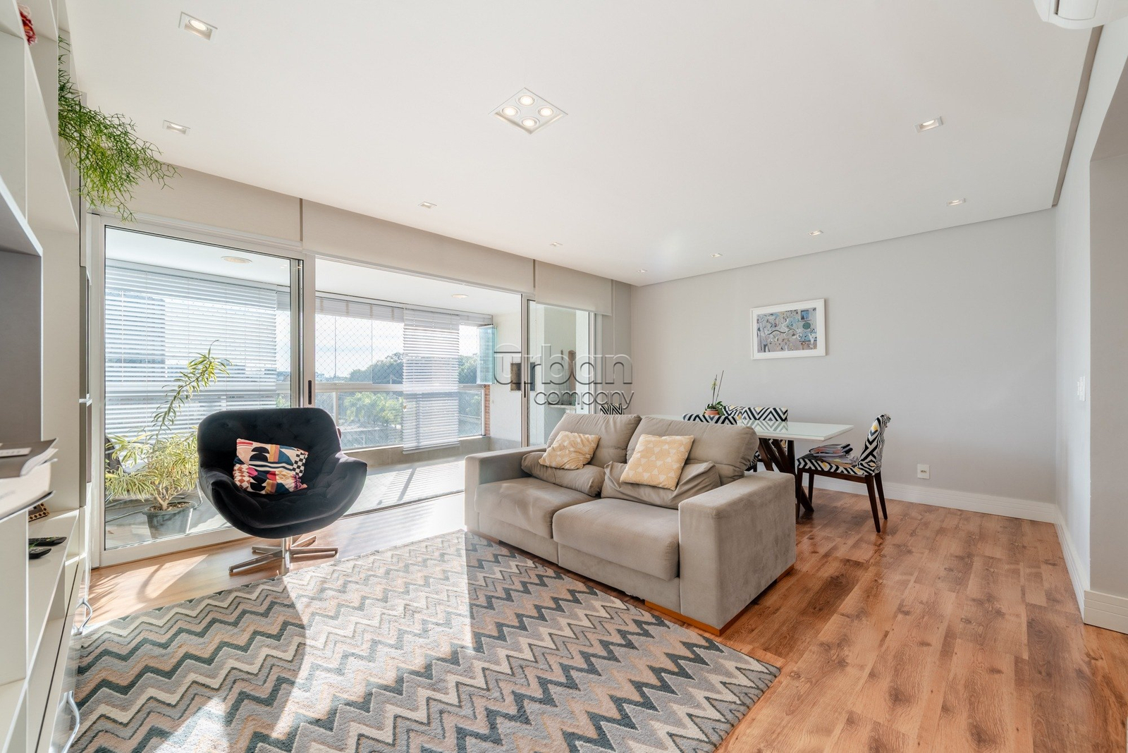 O living espaçoso acomoda três ambientes distintos, integrando-se harmoniosamente à sacada com churrasqueira, criando um ambiente gourmet ideal para receber amigos e familiares. A cozinha planejada, o lavabo elegante, os ambientes climatizados e a área de serviço separada garantem praticidade e bem-estar no dia a dia. Os móveis soltos não permanecem no imóvel.