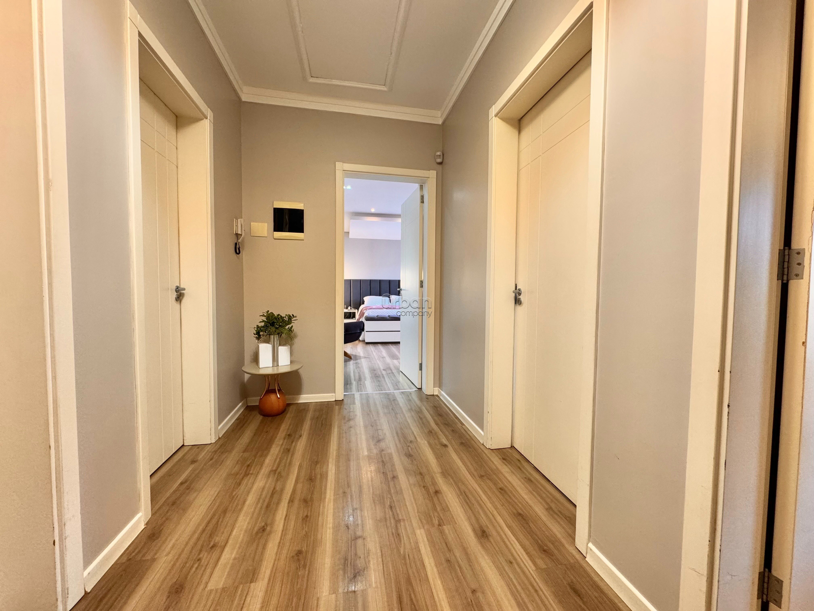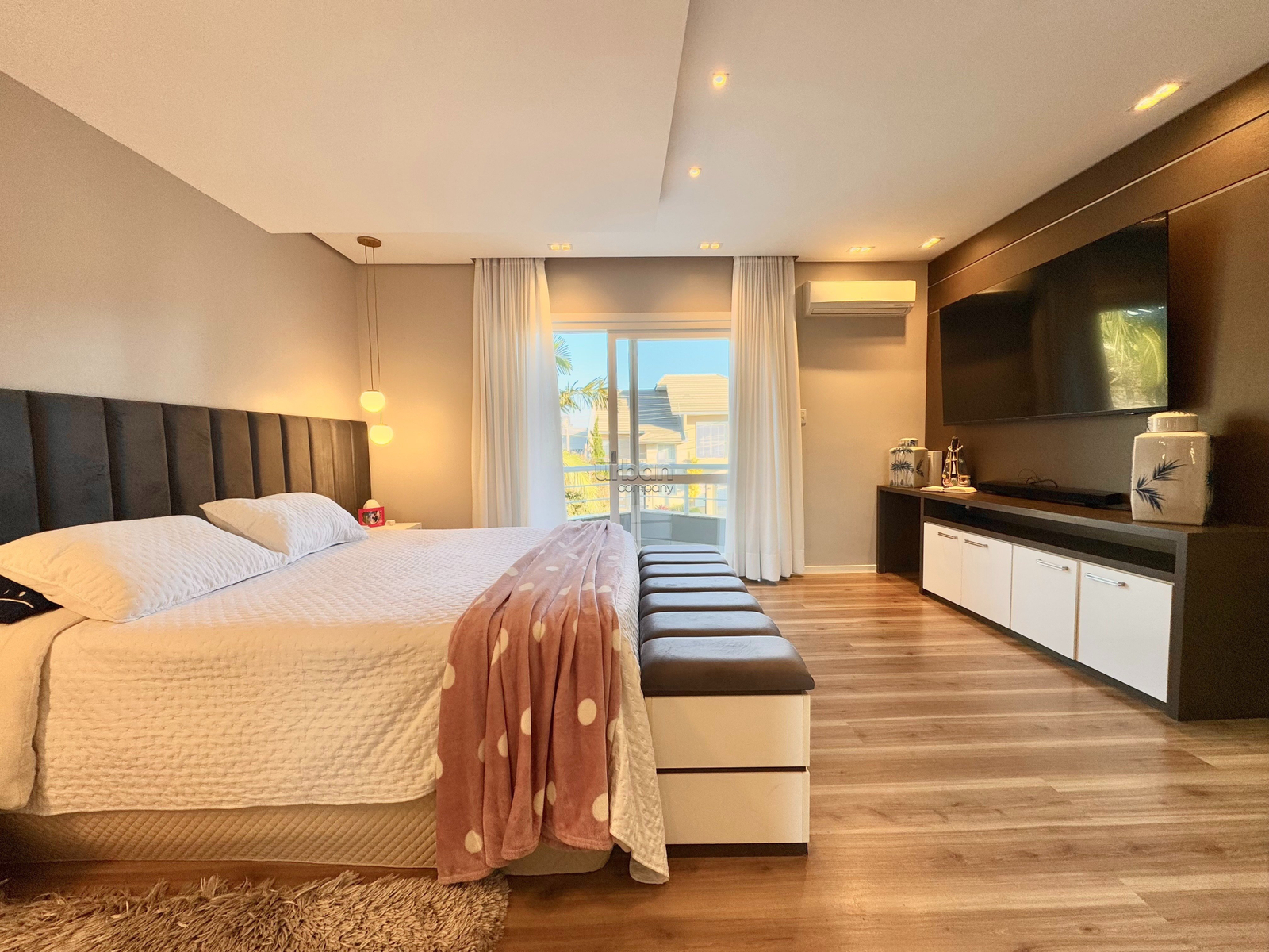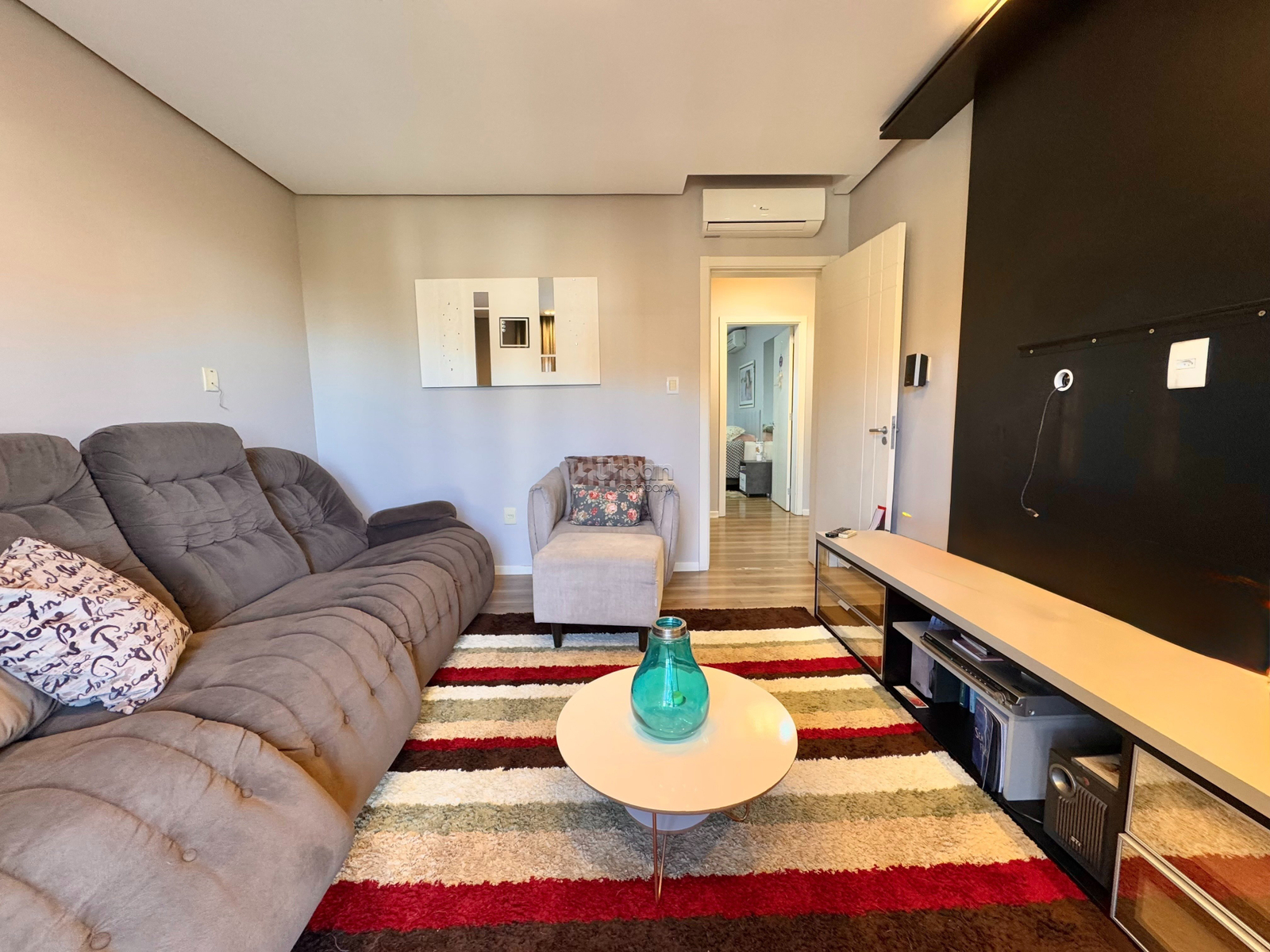 O imóvel conta com uma suíte master com sacada, equipada com hidromassagem e closet, além de dois quartos e banheiro social. Há ainda uma sala de TV com sacada, que pode ser facilmente convertida em um quarto extra.