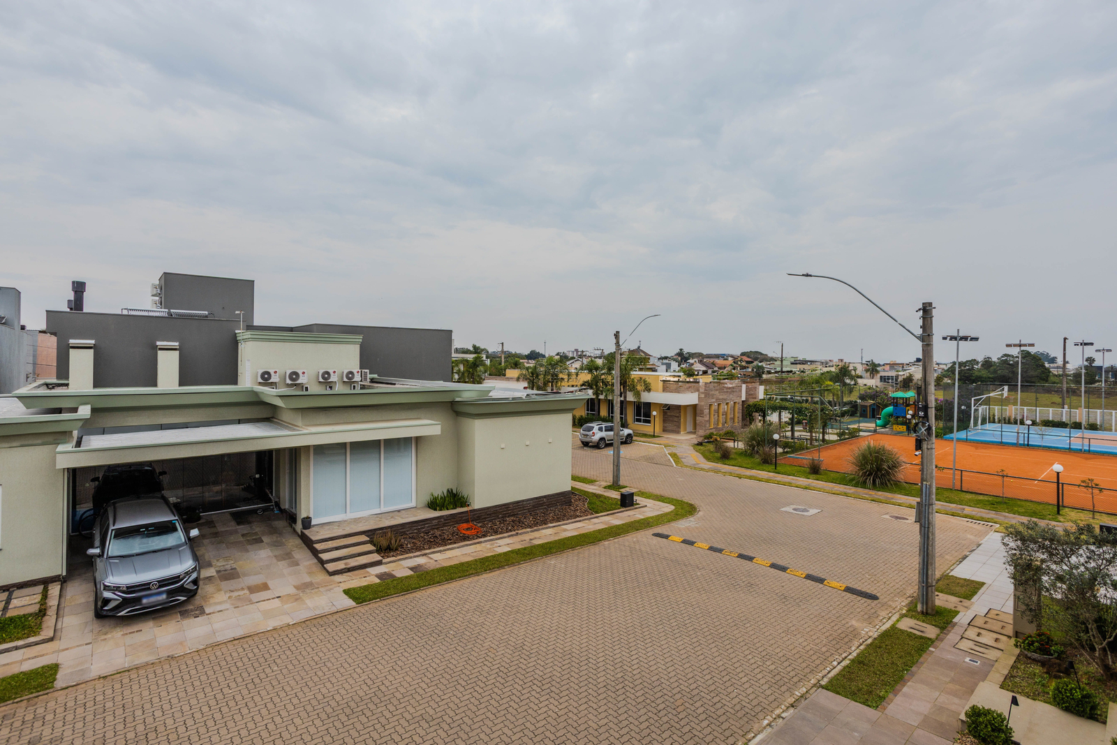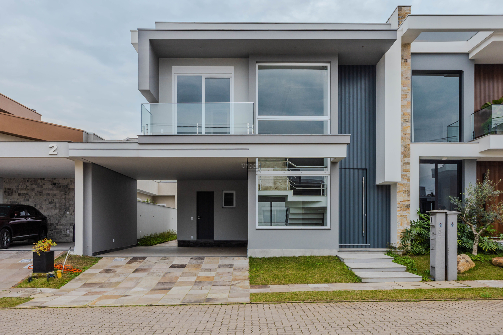 Acabamentos de alto padrão, com piso porcelanato no térreo, laminado no andar superior, porcelanato nos banheiros e aberturas externas em PVC automatizadas. Conta ainda com área de serviço funcional e uma planta inteligente e bem distribuída.