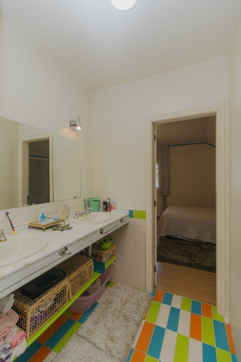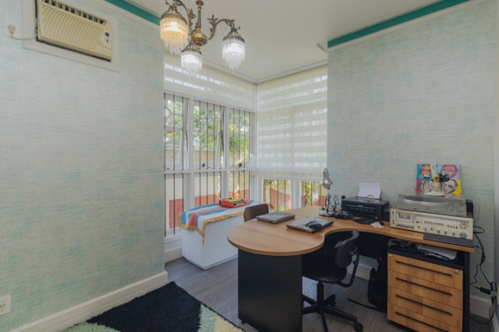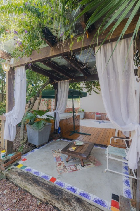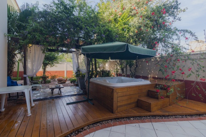 São 242m² construídos em dois terrenos (600m²), com sala de estar, jantar, escritório, lavabo, cozinha com churrasqueira rústica, fogão a lenha e forno, além de banheiro auxiliar e área de serviço. Parte externa com deck, pergolado em madeira nobre, jardim planejado e Jacuzzi. 4 vagas cobertas e 4 descobertas.