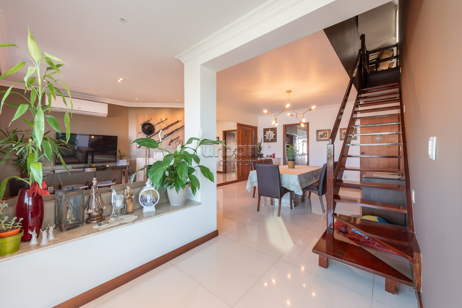 No primeiro pavimento, você encontra três salas generosas, criando um espaço perfeito para estar, jantar e relaxar. Além disso, há um escritório, ideal para quem busca praticidade no dia a dia. A lareira adiciona charme e aconchego ao ambiente. A cozinha planejada combina funcionalidade e elegância, e a área de serviço completa inclui uma dependência para maior conveniência.