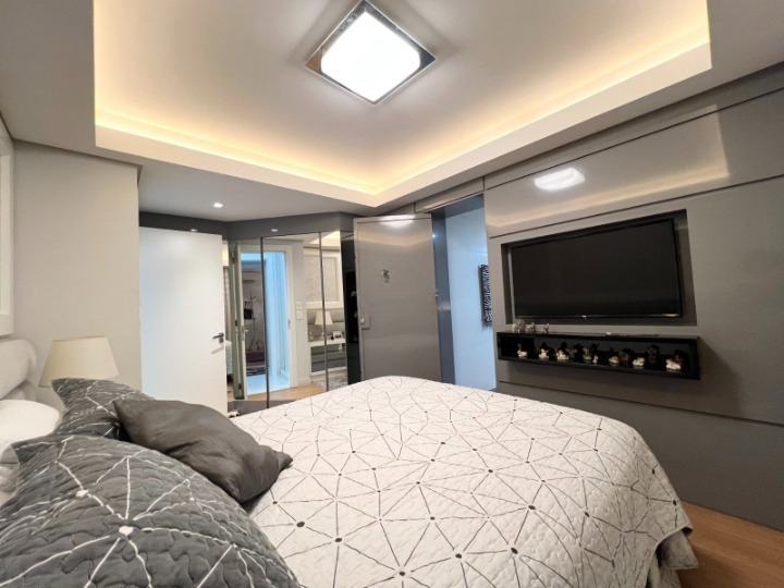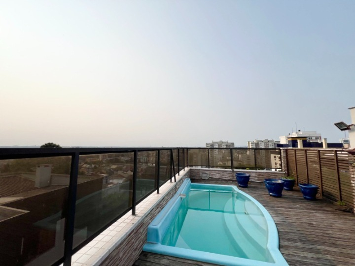 A praticidade e exclusividade são evidentes, com acesso ao elevador em ambos os pavimentos, algo raro de se encontrar. Situada em uma torre única, a cobertura oferece uma vista panorâmica espetacular da cidade, permitindo que você contemple Canoas de um ângulo privilegiado. O imóvel se destaca na cidade por oferecer um diferencial incomparável: um terraço privativo que se estende por toda a cobertura, equipado com um pergolado e uma elegante piscina com deck.