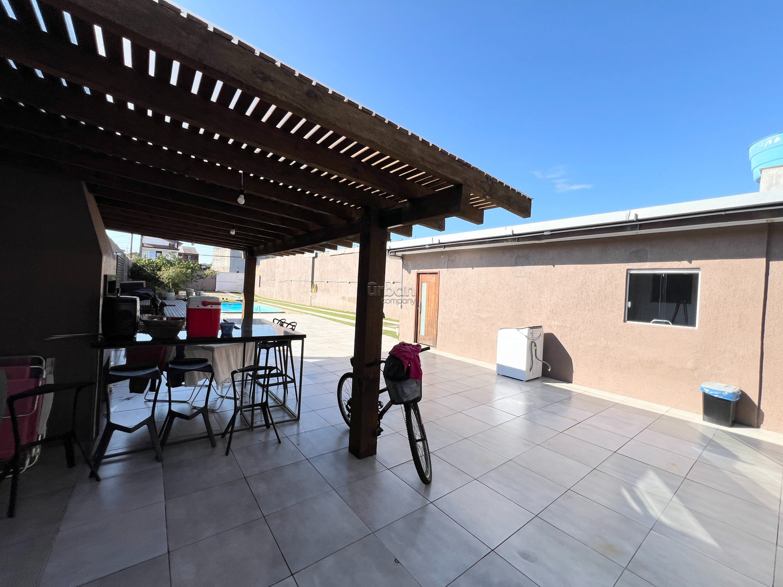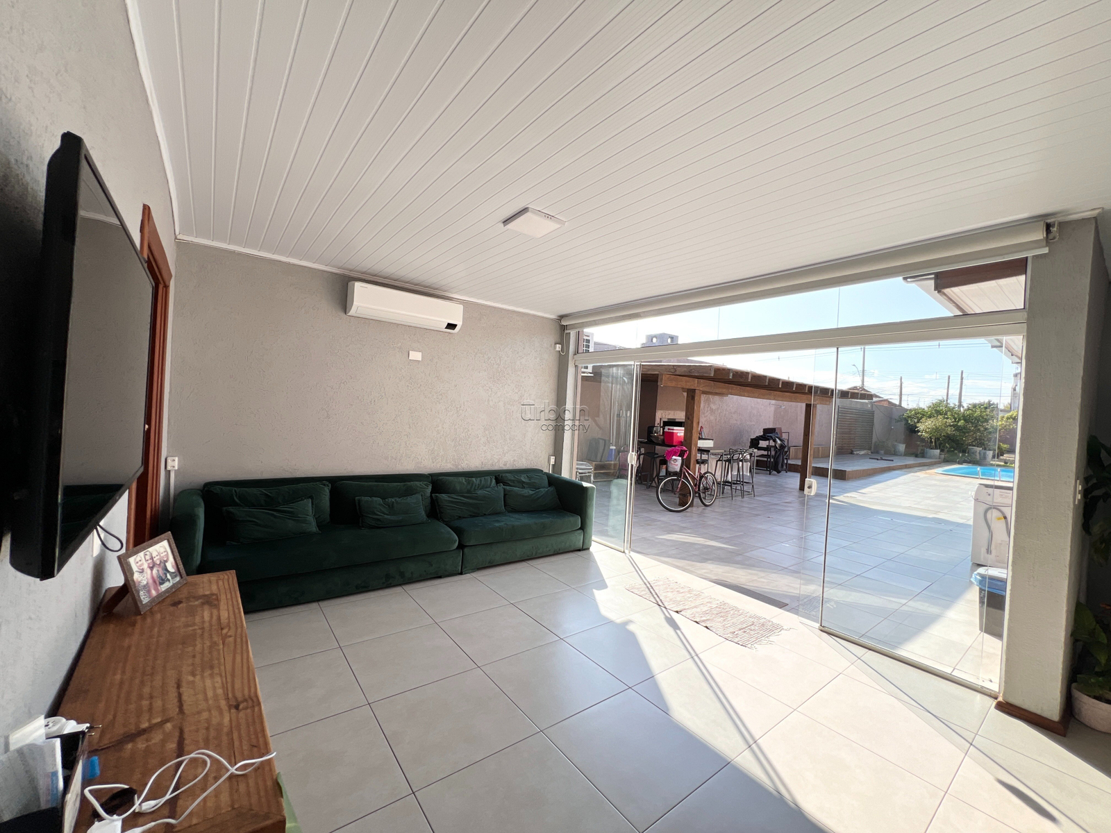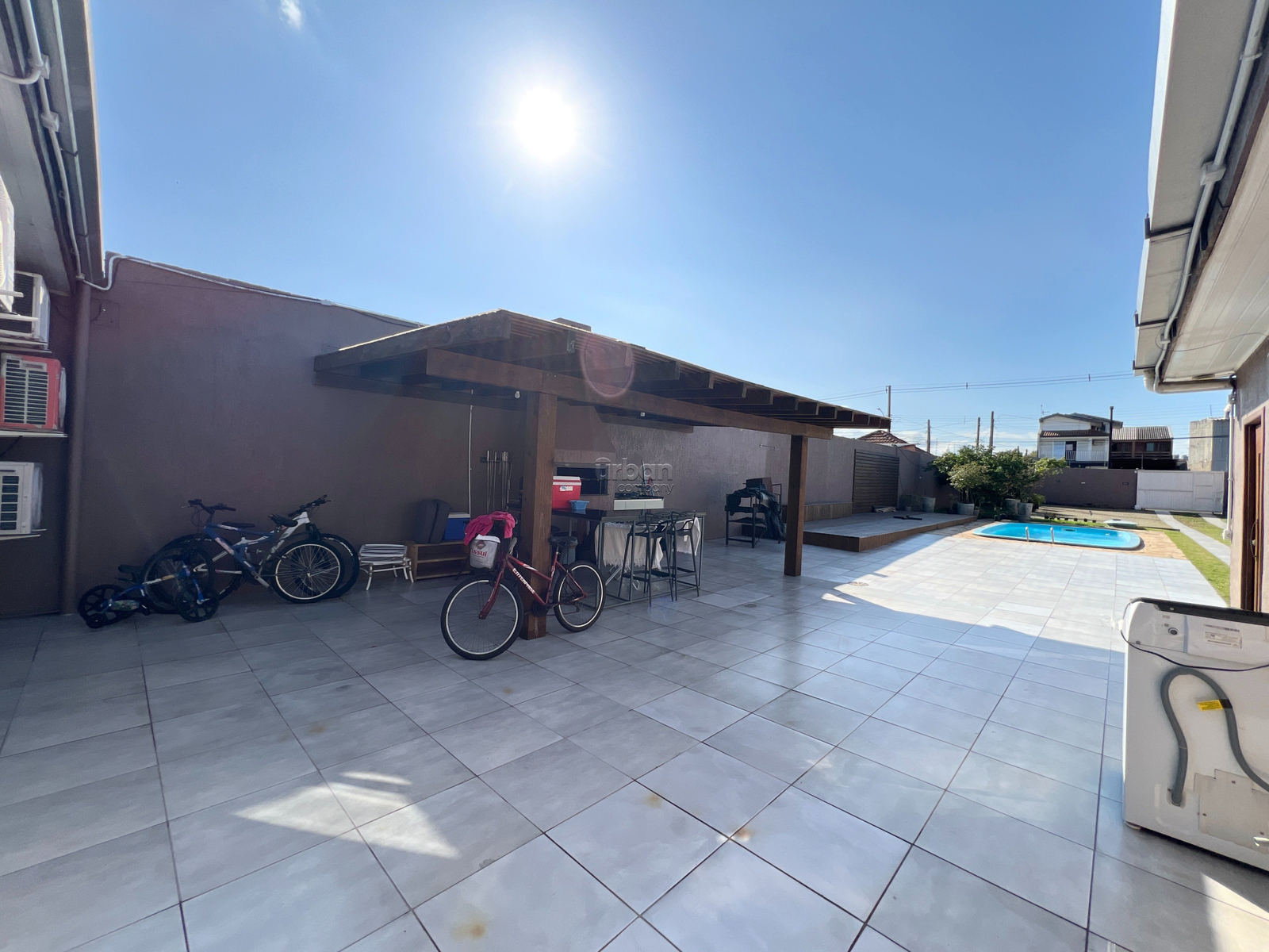 Conta com 3 dormitórios, sala de estar e jantar muito bem iluminados, cozinha integrada com móveis planejados, 2 banheiros sociais, área de serviço externa com lavanderia e guarda volumes, espaço gourmet com churrasqueira, pátio privativo com piscina e espaço de estacionamento para 5 veículos.