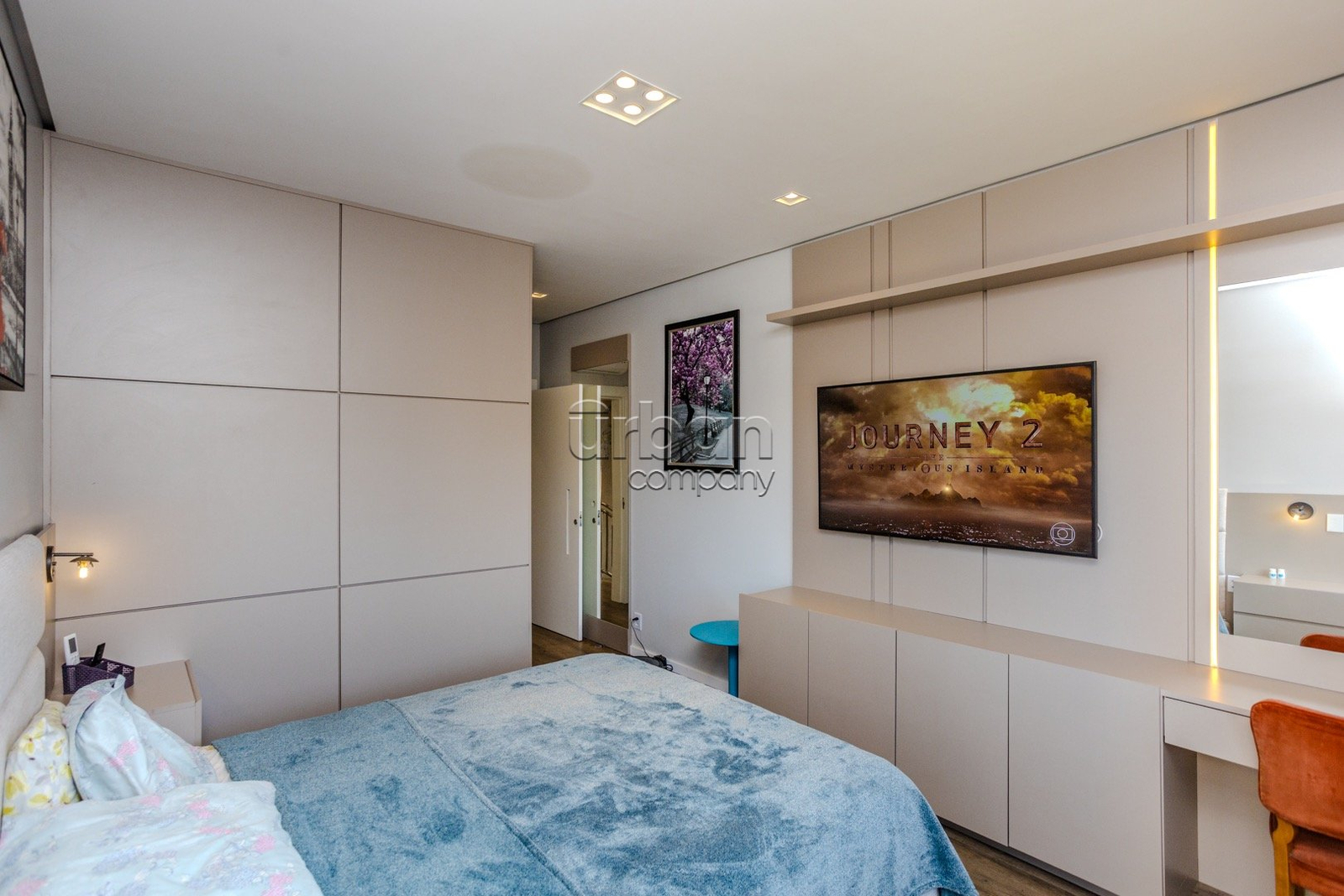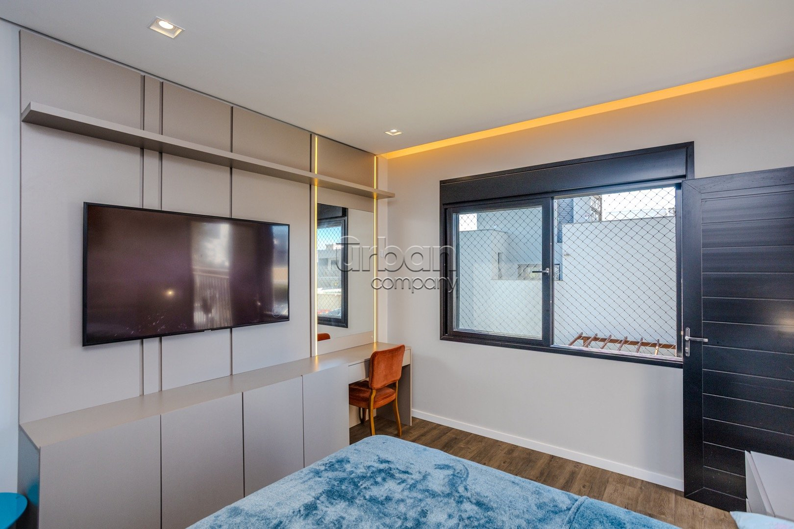 - Televisão e persianas elétricas nas janelas;