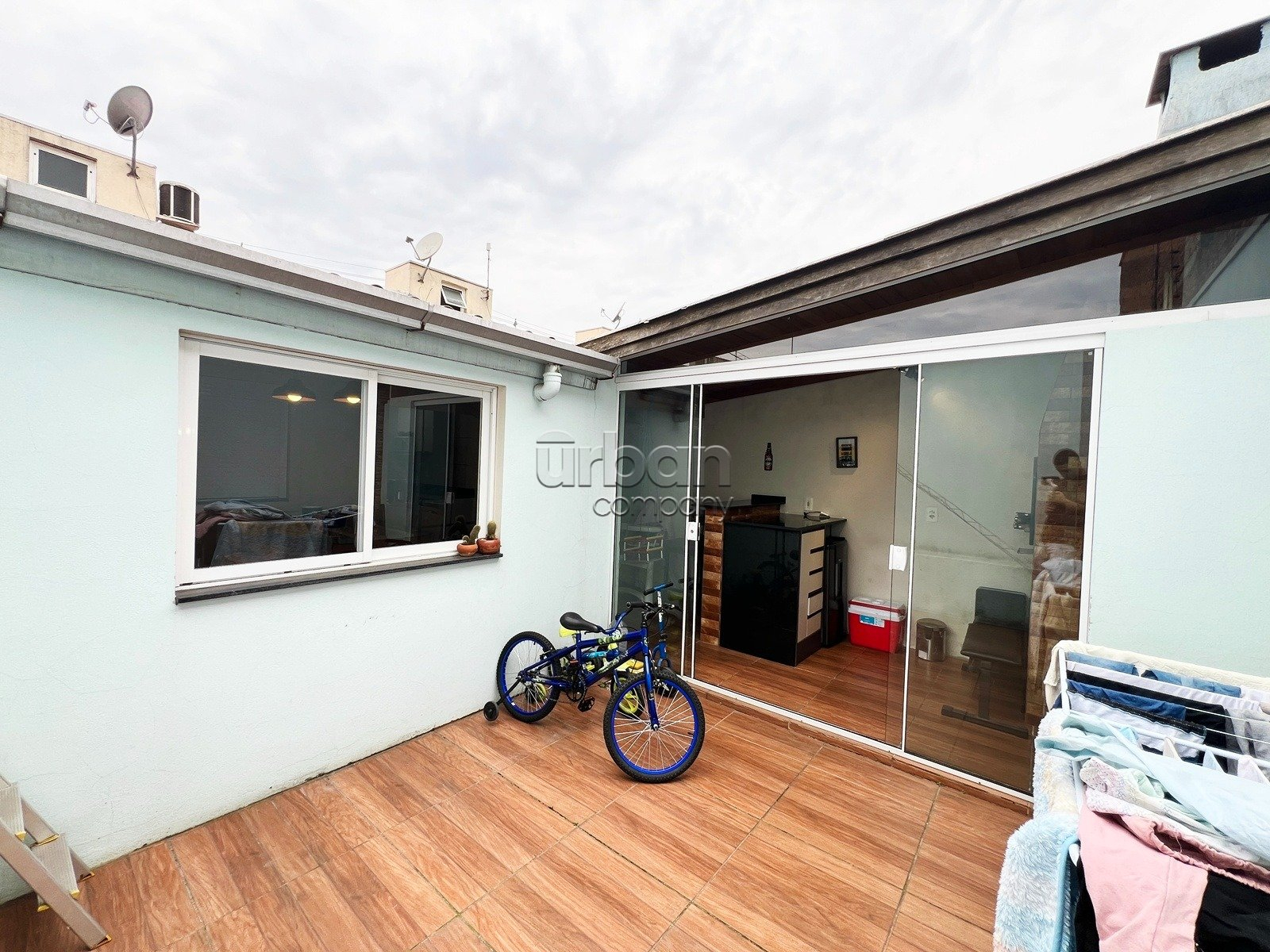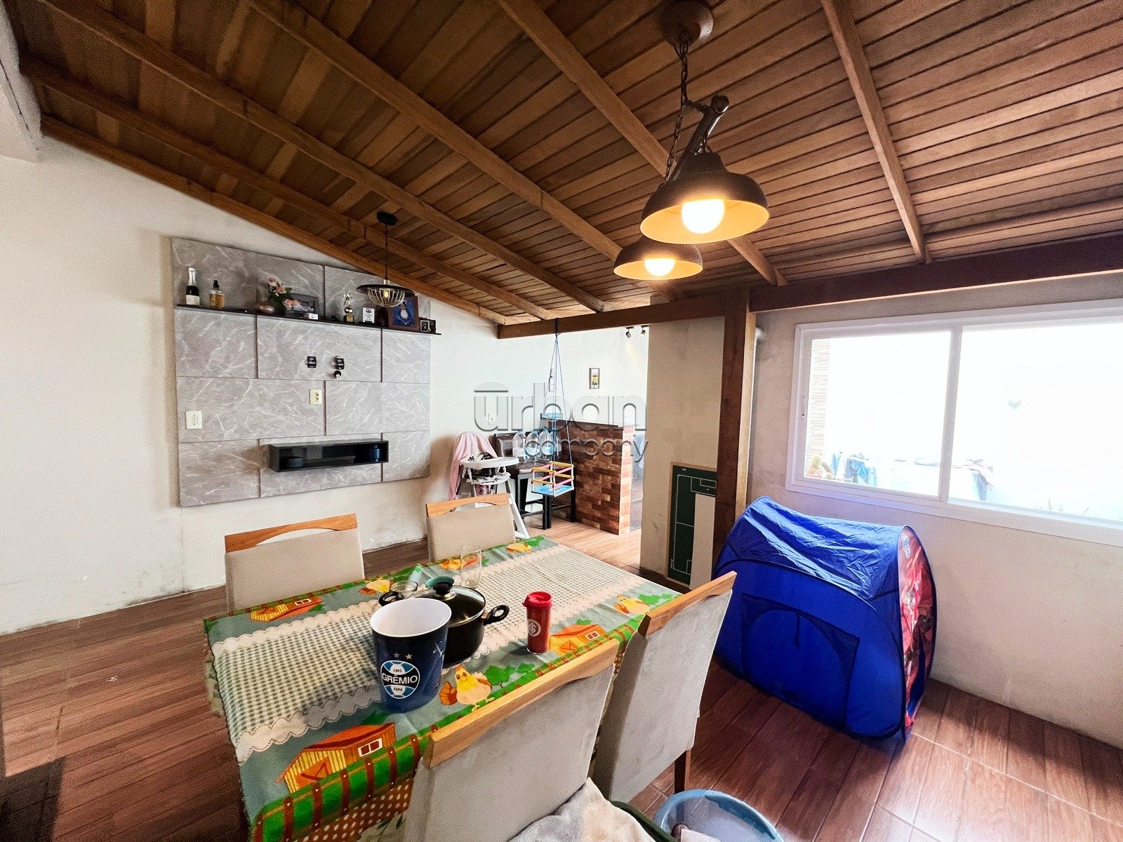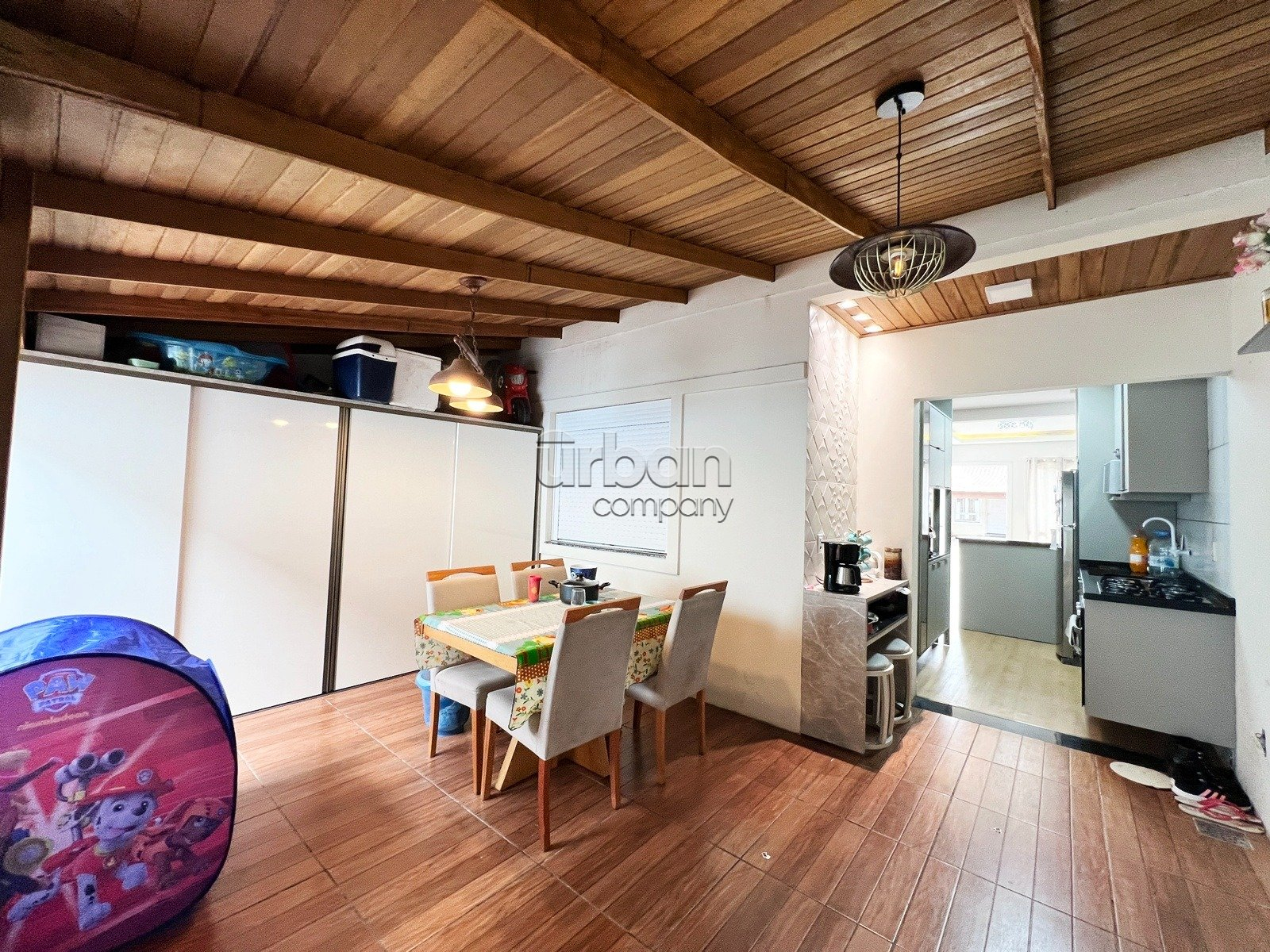 Conta com 2 dormitórios, sala de estar e jantar muito bem iluminados, cozinha integrada, espaço gourmet com churrasqueira, 1 banheiro social, área de serviço, pátio privativo e garagem descoberta para 2 veículos.