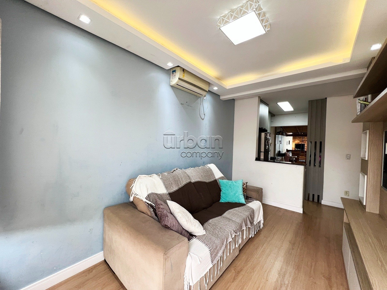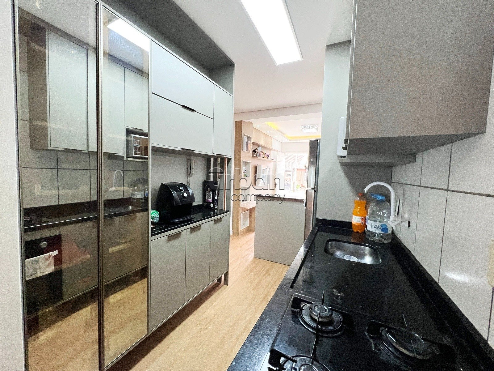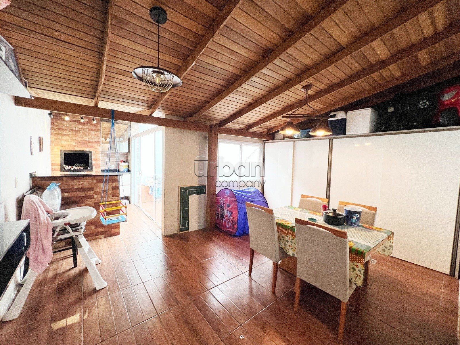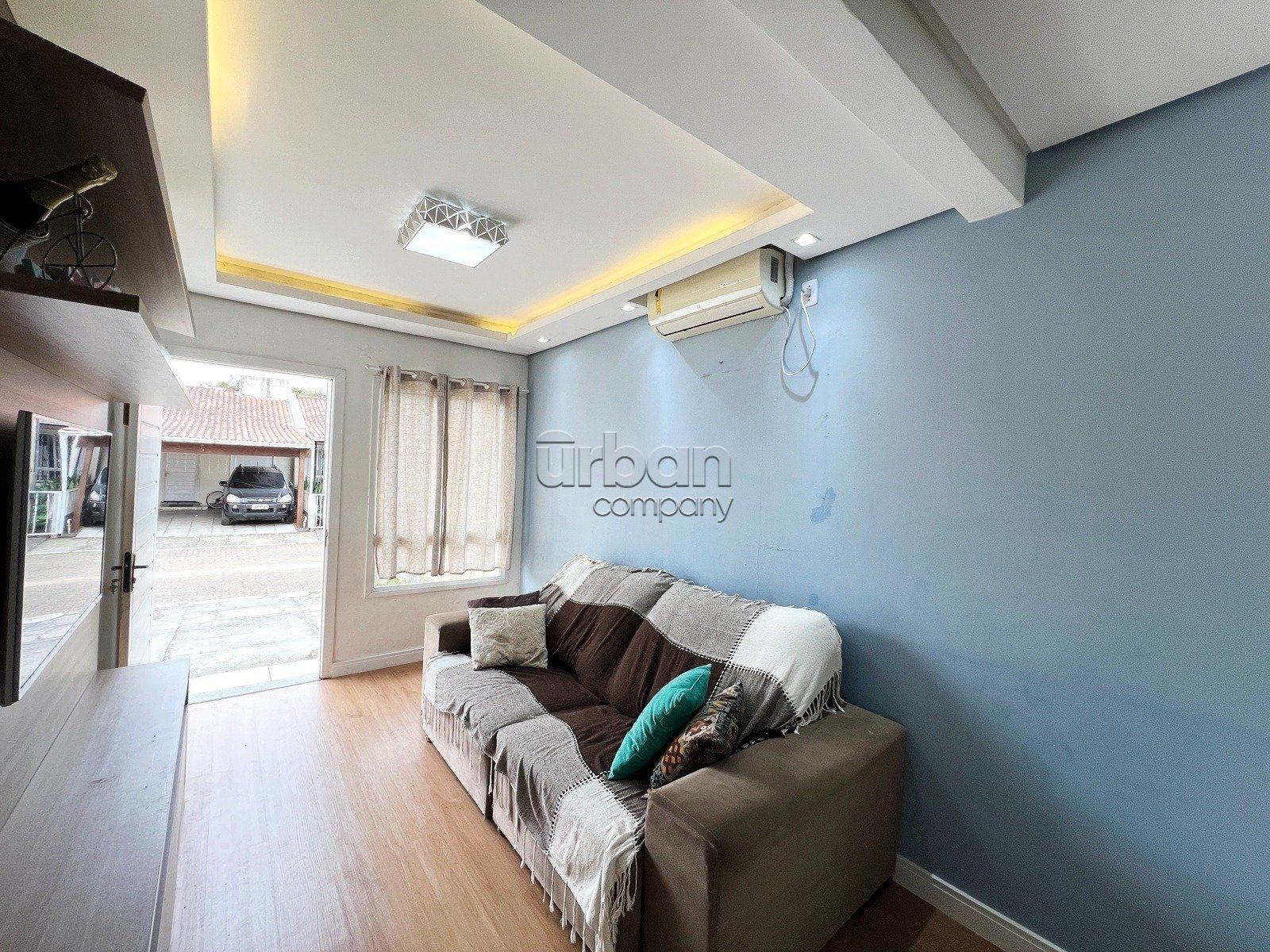 Conta com 2 dormitórios, sala de estar e jantar muito bem iluminados, cozinha integrada, espaço gourmet com churrasqueira, 1 banheiro social, área de serviço, pátio privativo e garagem descoberta para 2 veículos.