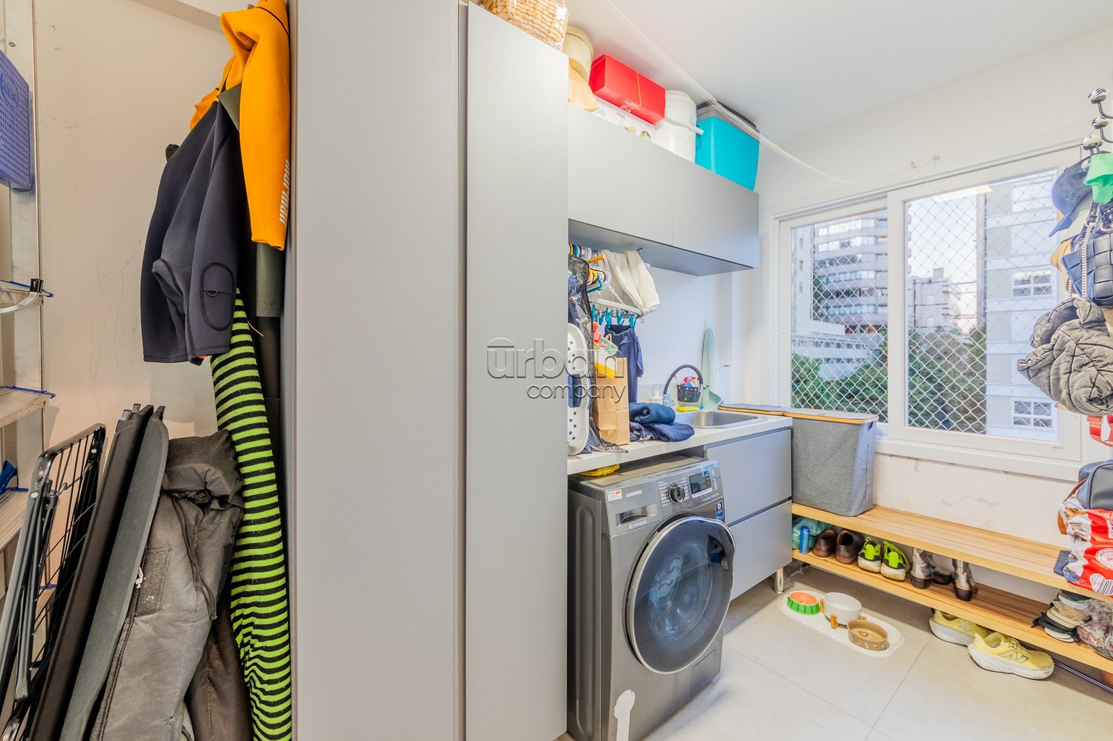 Imóvel possuí amplo living para 3 ambientes com sacada, cozinha americana com churrasqueira e área de serviço separada.