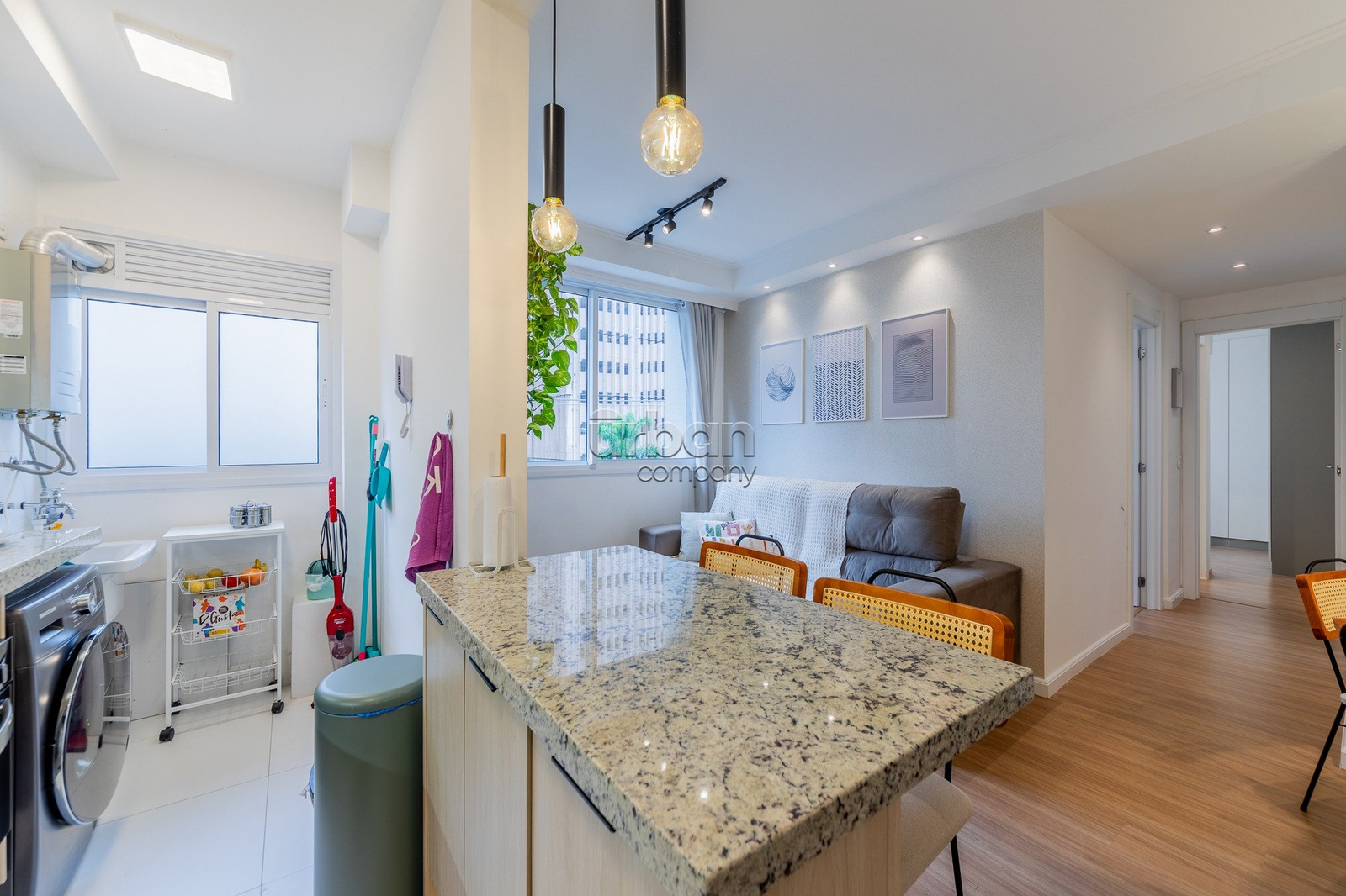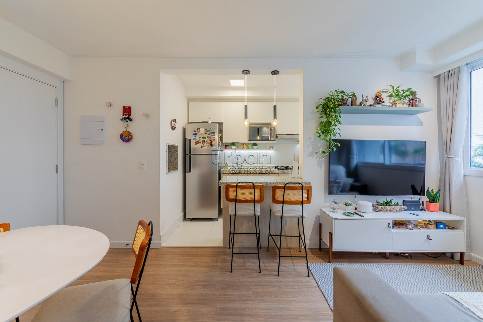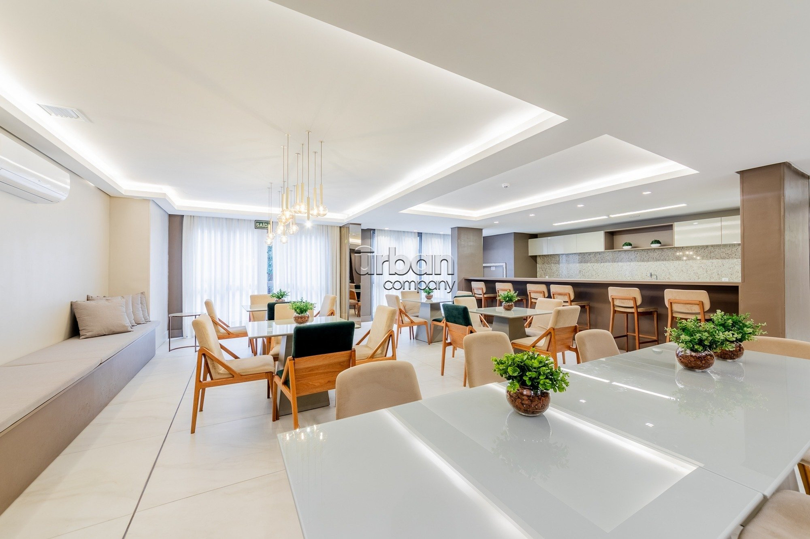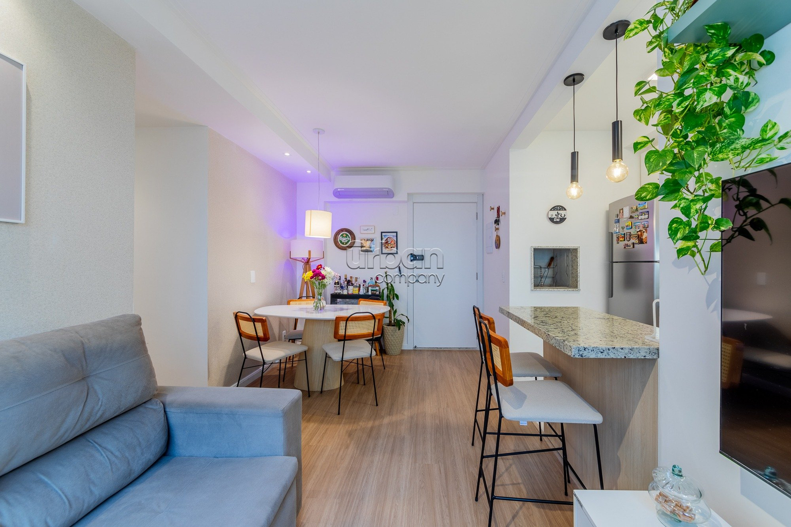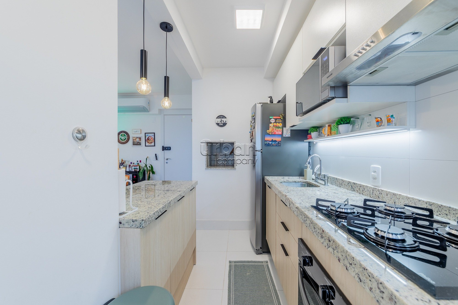 Apartamento com 67m² de área privativa; 3 dormitórios sendo 1 suíte; living 2 ambientes; cozinha americana completa com churrasqueira (e para maior conveniência, permanecem os splits, fogão e forno); e área de serviço integrada.