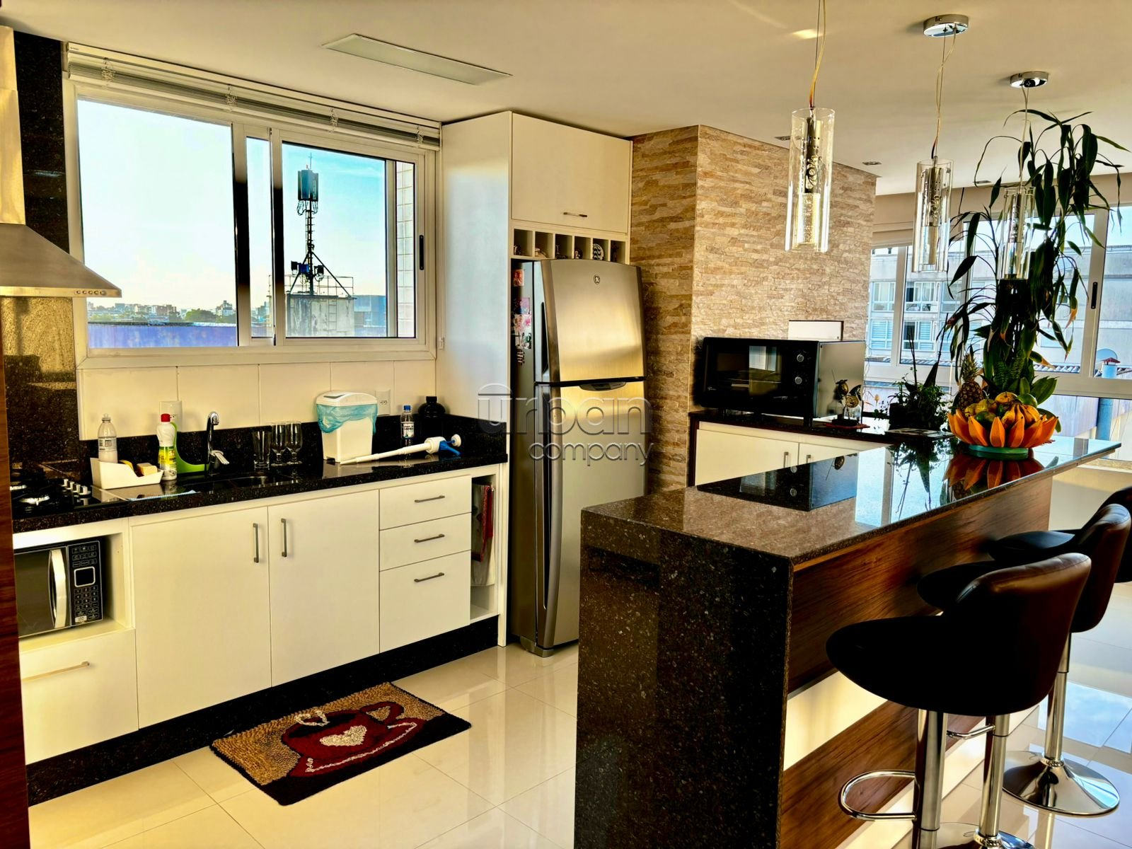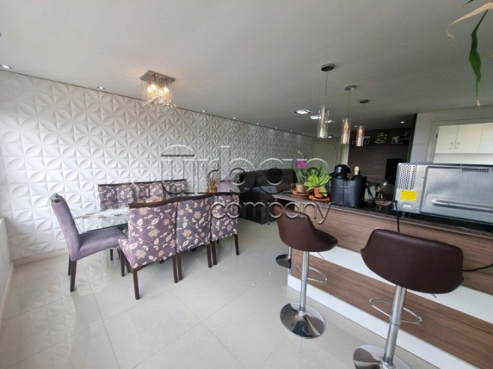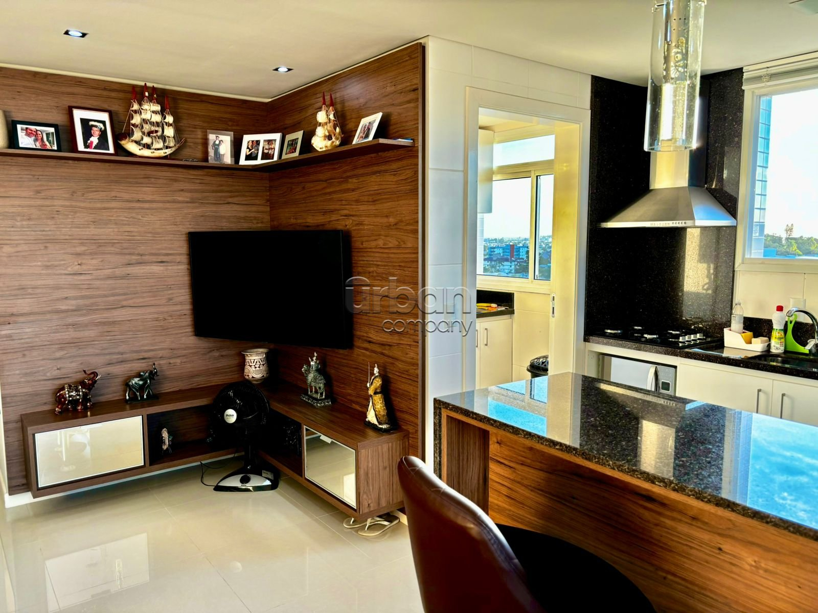 Com 79,10m² de área privativa, pronto pra morar, mobiliado, piso em porcelanato, teto com rebaixo em gesso, água quente com aquecedor de passagem já instalado. Living amplo com churrasqueira e sacada integrada, vista livre. Cozinha totalmente mobiliada e equipada, área de serviço separada, vaga coberta para 2 veículos.
