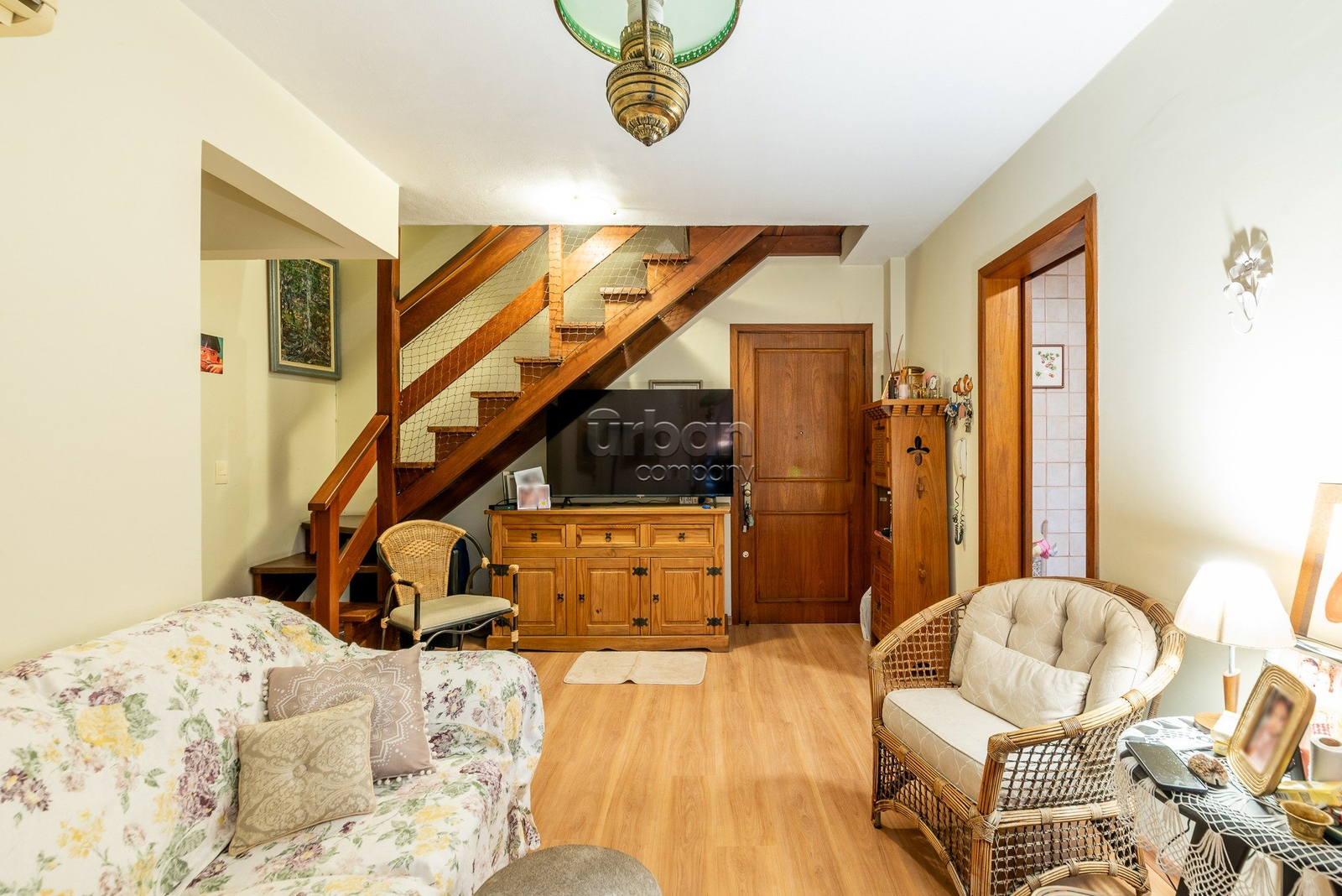 No primeiro pavimento, o imóvel conta com 3 dormitórios (1 suíte), banheiro social, living com sacada fechada, cozinha equipada, dependência completa e banheiro auxiliar. Ambientes com ótima iluminação e ventilação natural. Acabamentos incluem aberturas internas em madeira, piso laminado nos dormitórios e piso frio na cozinha.