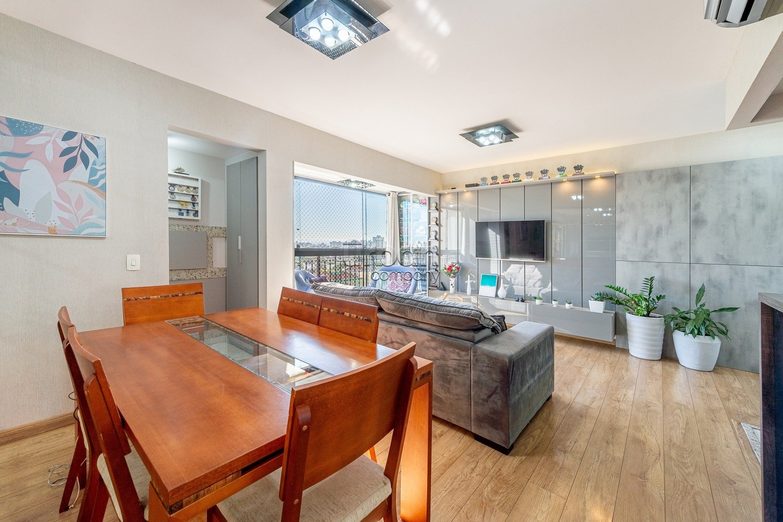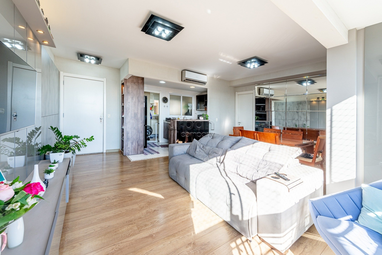 O living para 2 ambientes é amplo e bem iluminado, proporcionando um espaço aconchegante para momentos de lazer. A churrasqueira integrada torna o ambiente ideal para receber amigos e familiares. Além disso, o apartamento conta com banheiro social, cozinha com móveis planejados e área de serviço separada, garantindo funcionalidade no dia a dia.