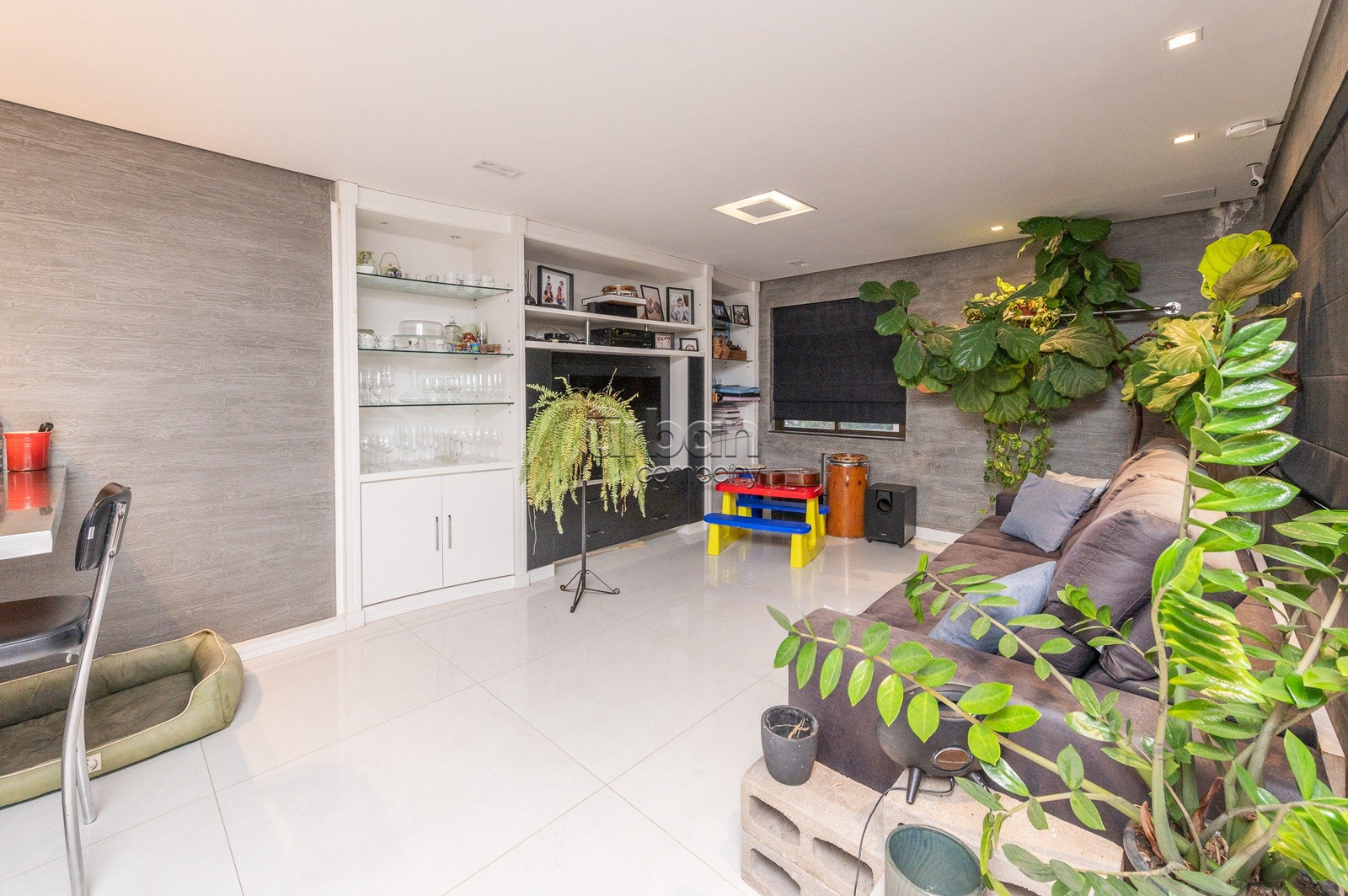No segundo piso: espaço para dois ambientes com uma cozinha gourmet completa, churrasqueira e lavabo. Terraço com piscina e hidromassagem.