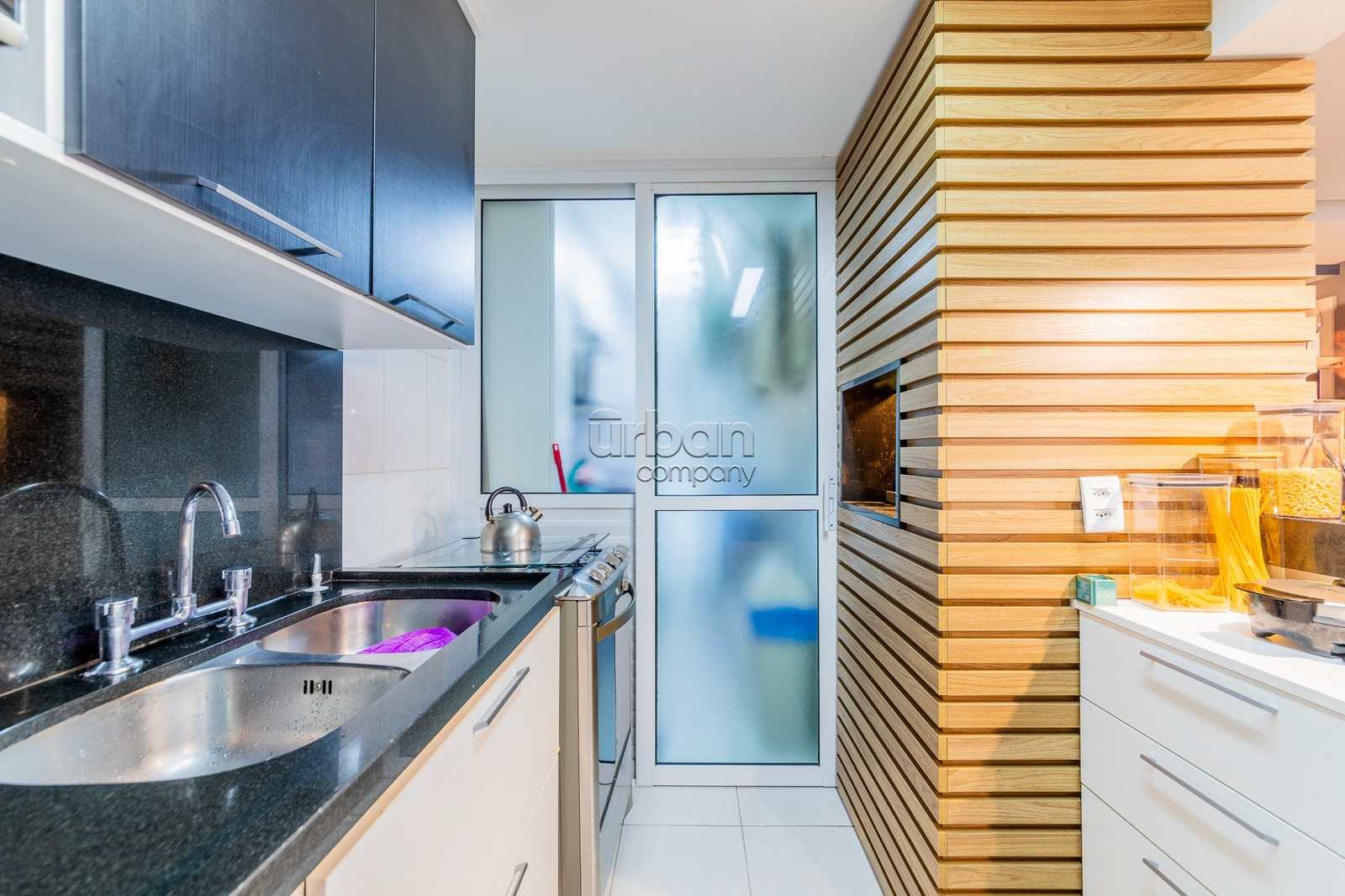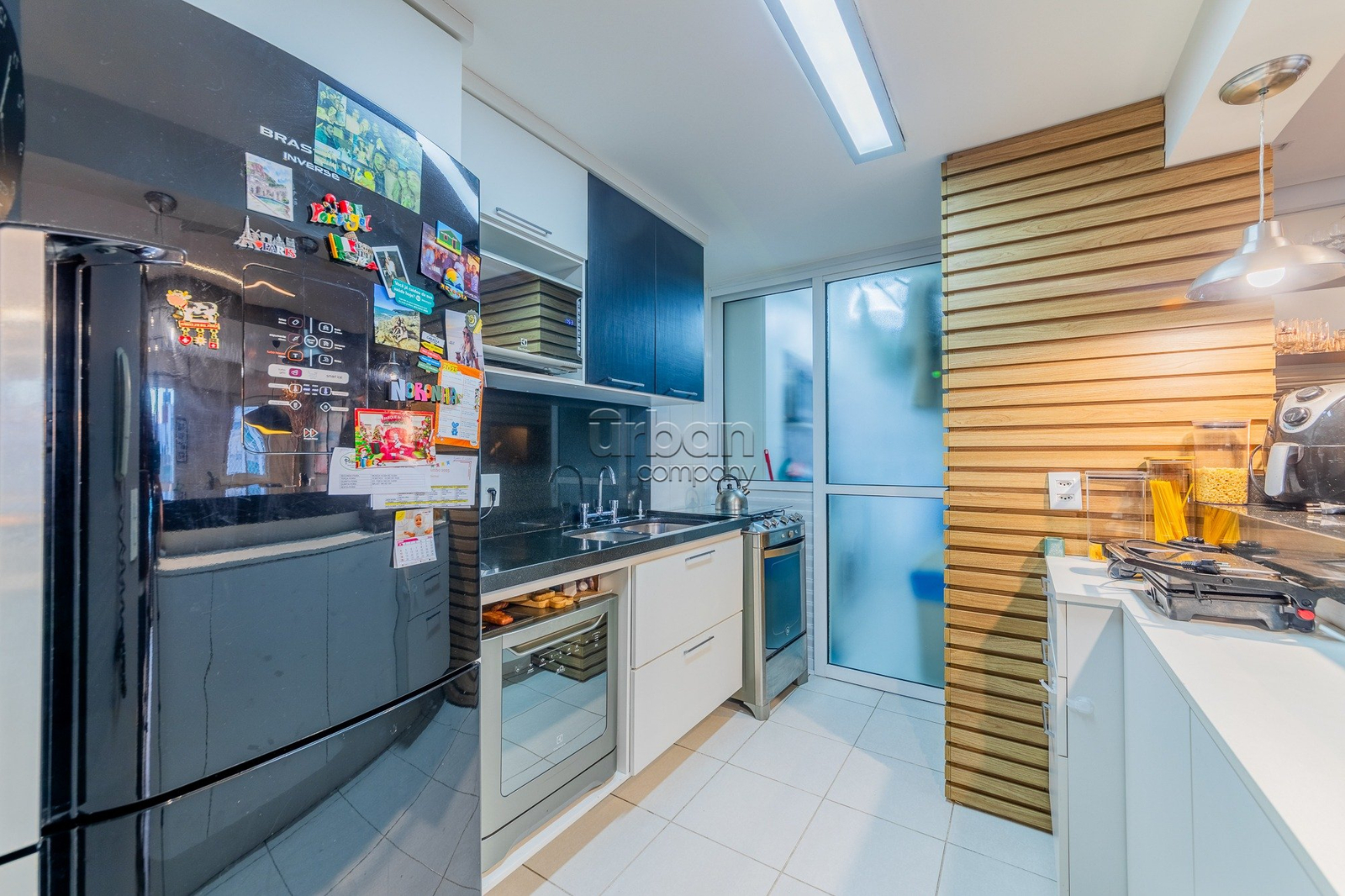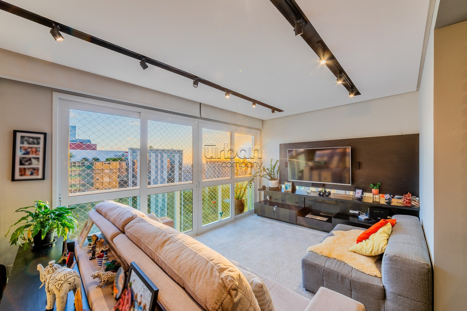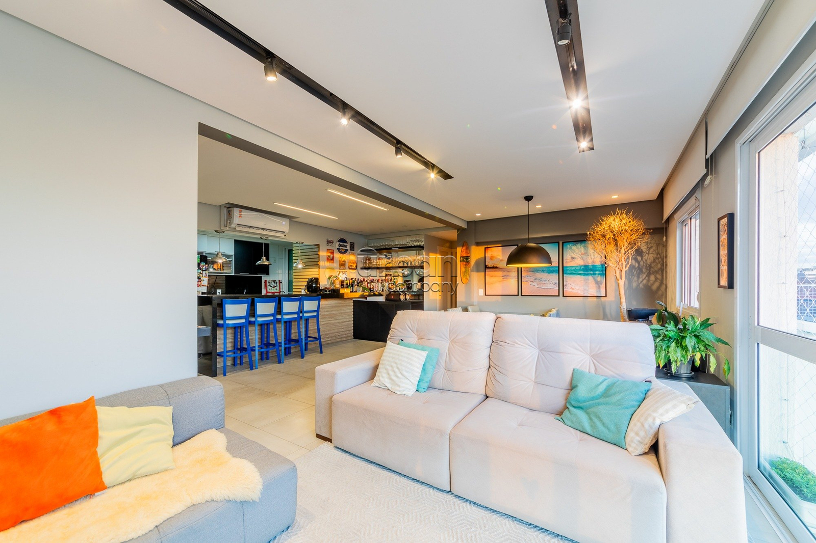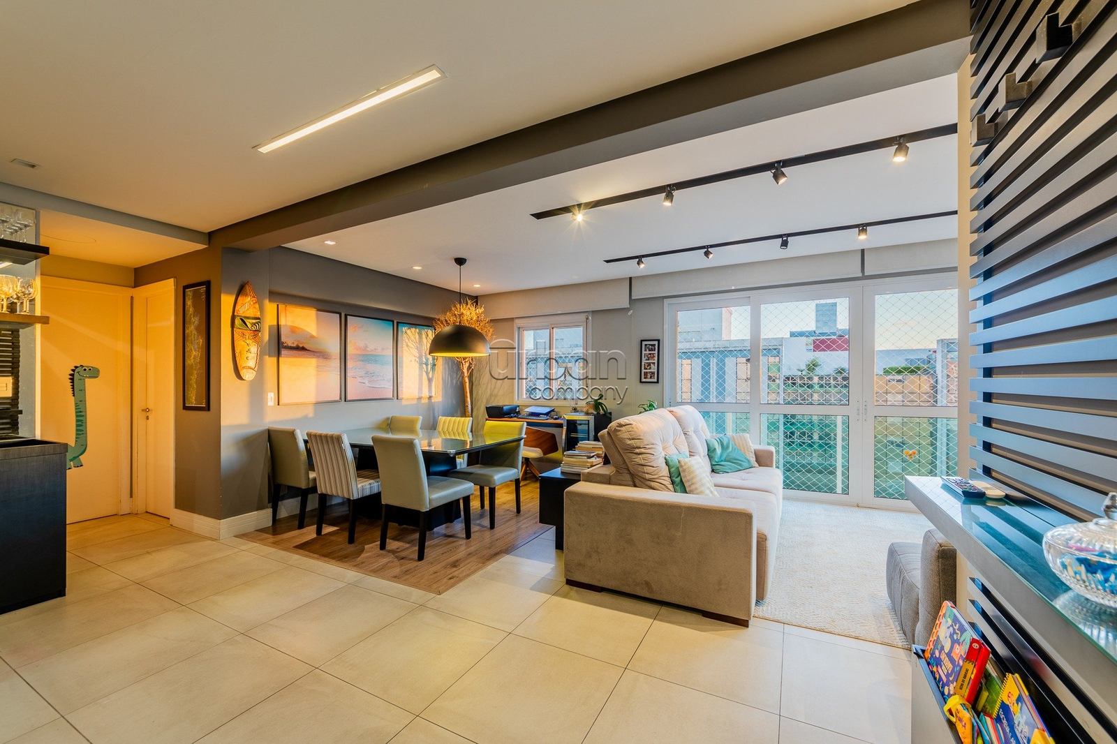 Apartamento amplo, com 80m² privativos, composto por 2 dormitórios, sendo 1 deles suíte, amplo living para 2 ambientes com janelas piso/teto, cozinha montada em conceito aberto com churrasqueira, área de serviço independente.