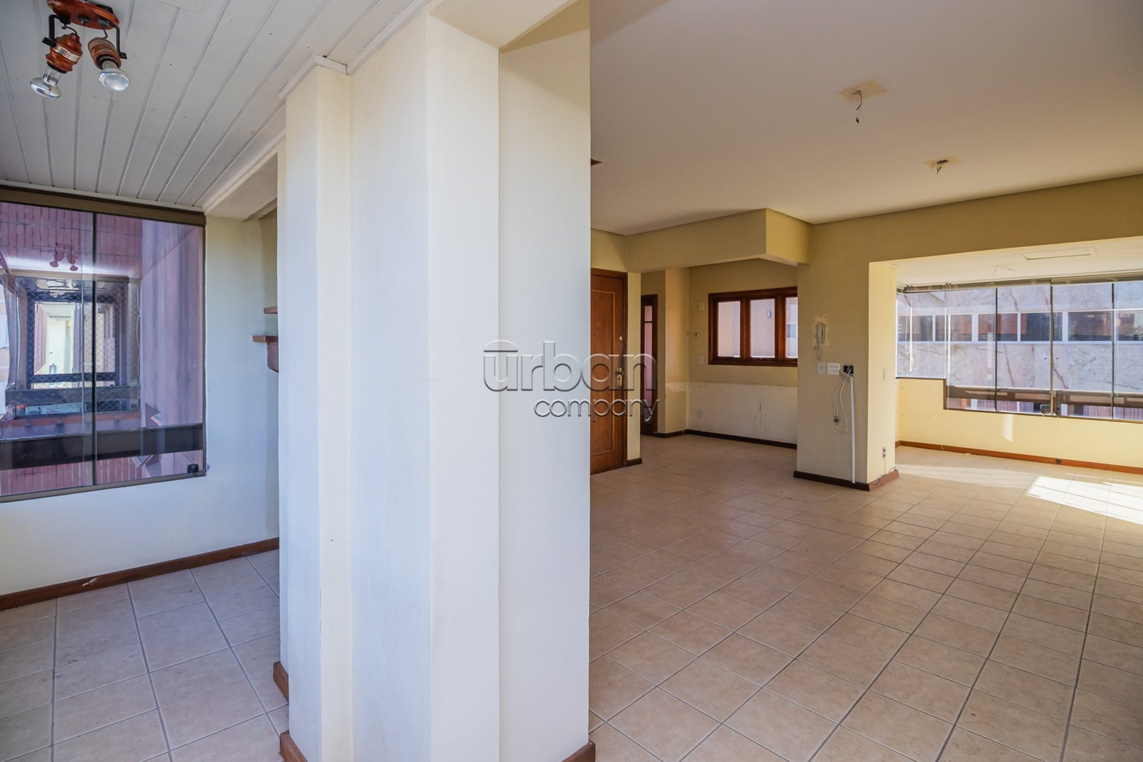 A cobertura é composta por três dormitórios, distribuídos de forma inteligente entre os dois pavimentos. No andar inferior, encontram-se uma suíte com closet, um segundo dormitório, banheiro social e uma ampla sala de estar com dois ambientes, integrados a uma sacada que percorre toda a extensão da área social, proporcionando luminosidade e ventilação natural.