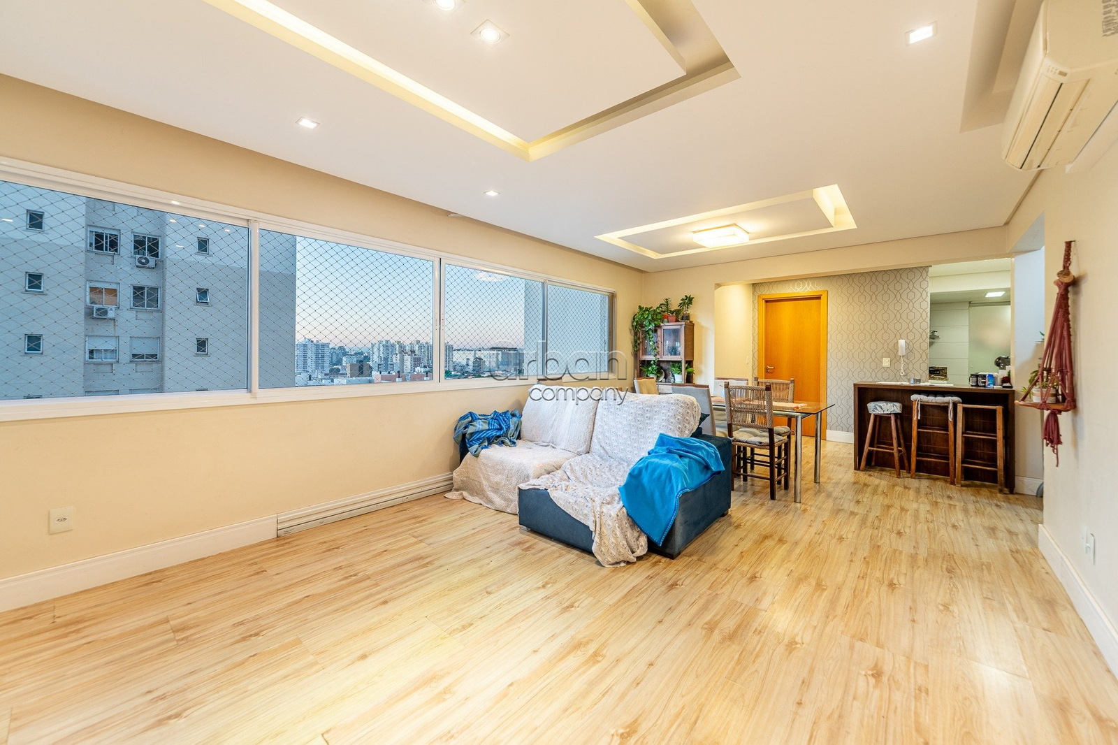São 112m² privativos, andar alto com vista livre, 3 dormitórios sendo 1 suíte, amplo living com janelões, sala de jantar integrada a cozinha americana montada com churrasqueira, área de serviço individual, área de circulação com armários embutidos e 3 vagas cobertas.