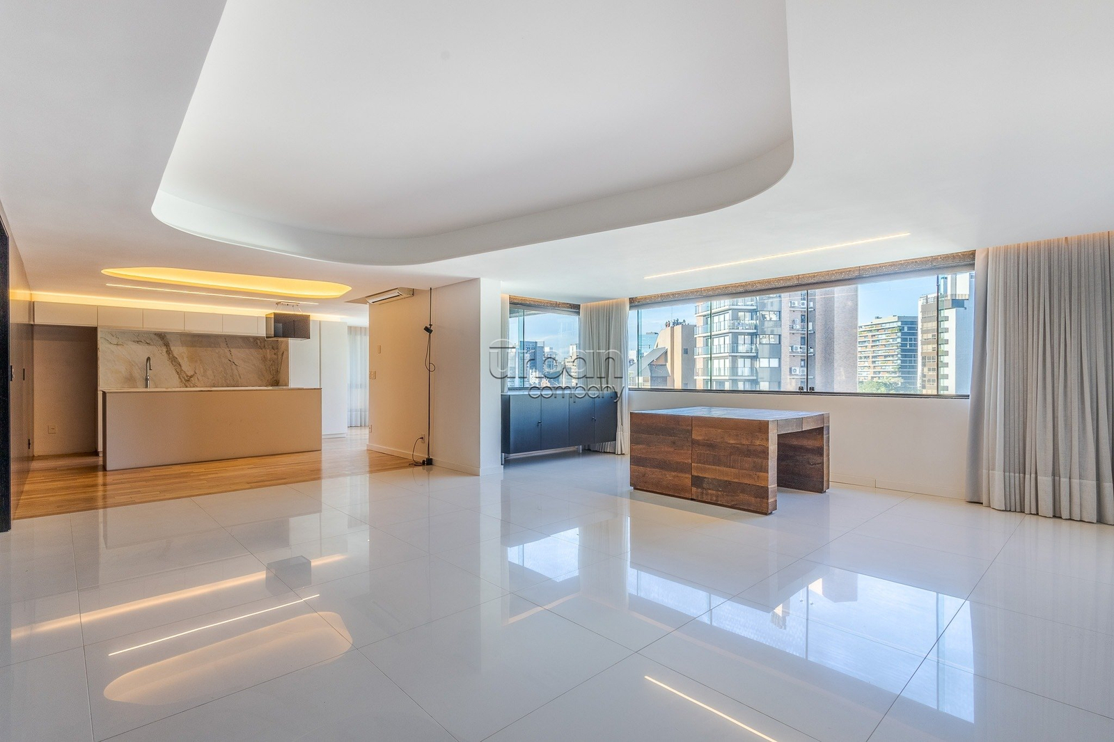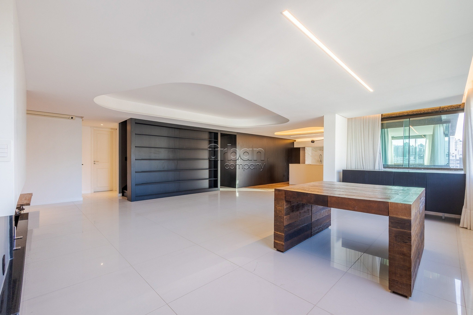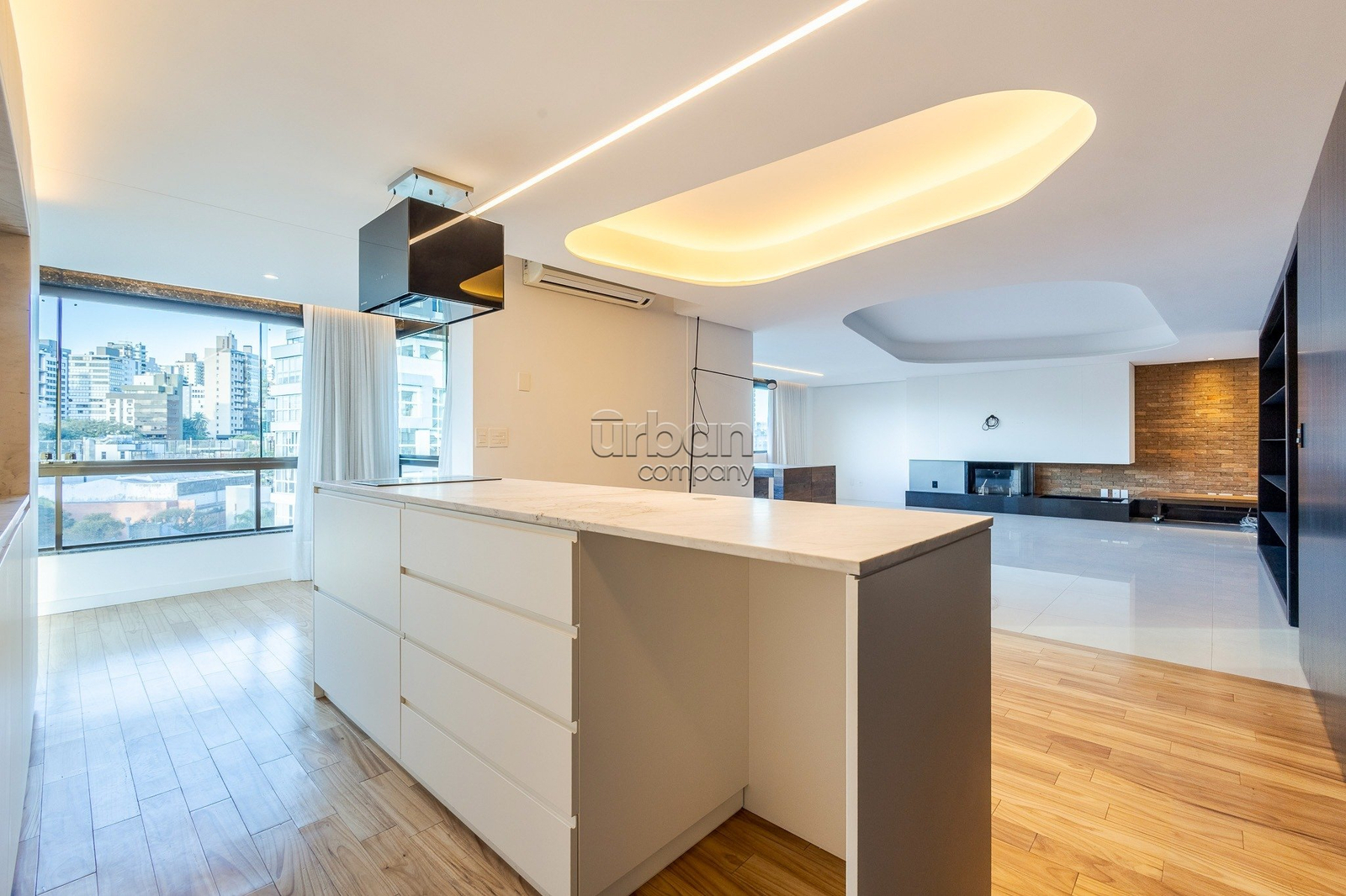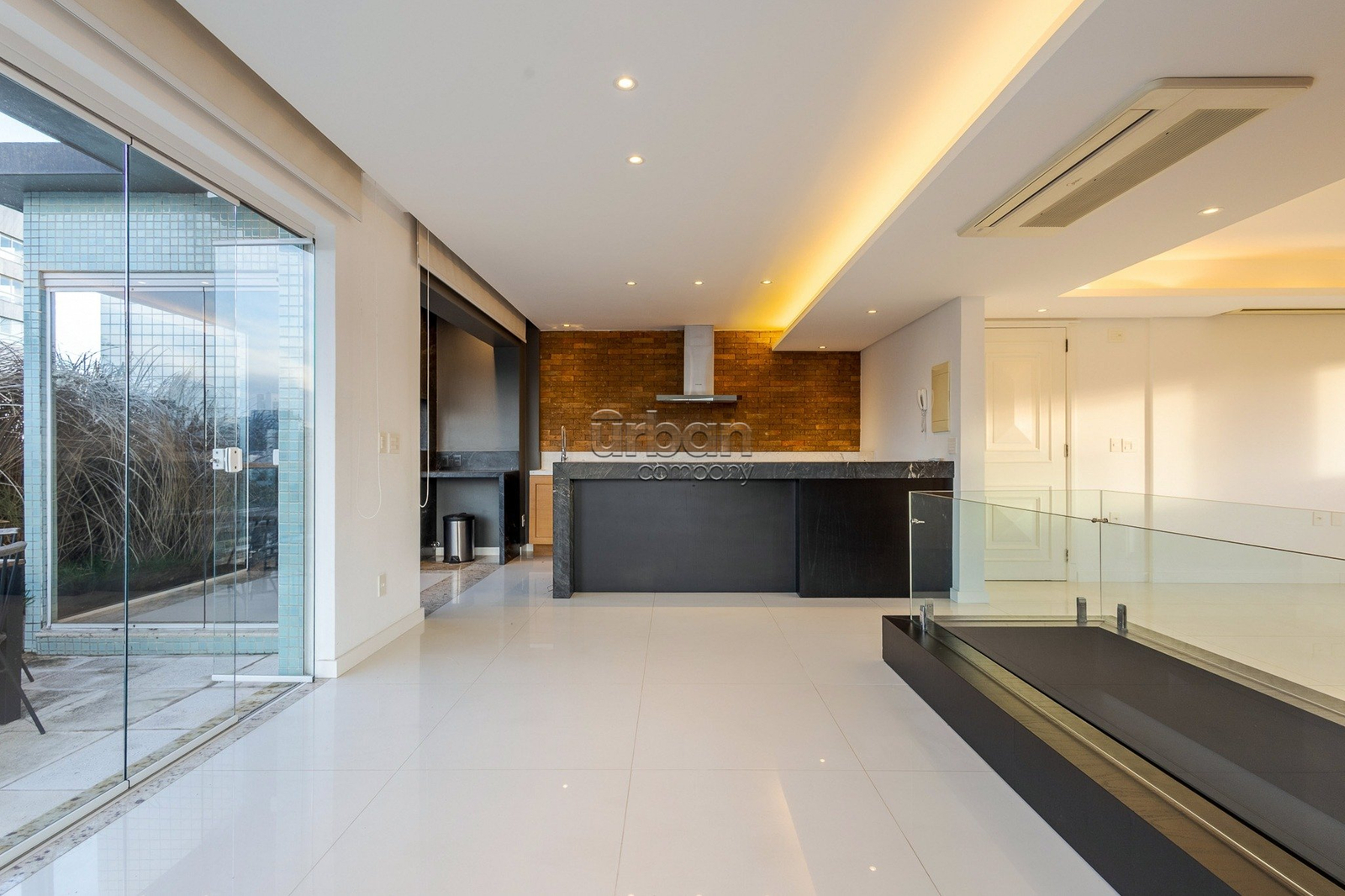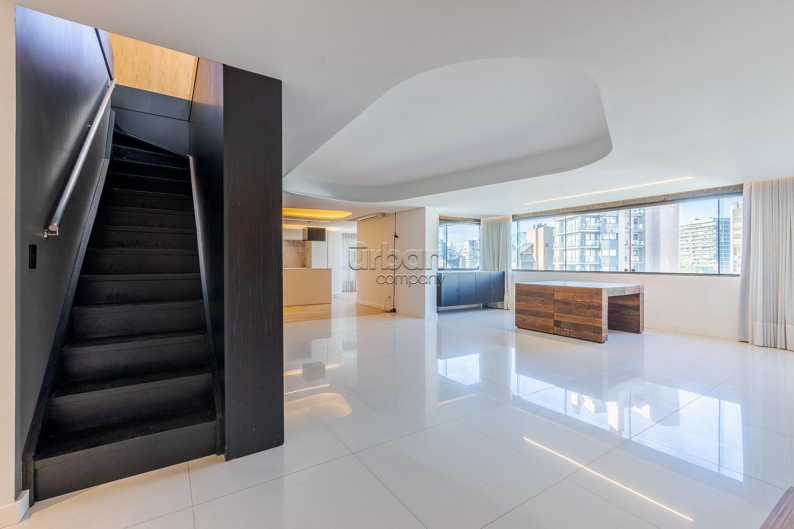 O living estendido acomoda até quatro ambientes integrados, com excelente iluminação natural e orientação solar privilegiada. A cozinha é montada, funcional e conta com ampla área de serviço. O imóvel possui acessos independentes nos dois pavimentos e elevador com acesso direto à cobertura, garantindo praticidade e acessibilidade.