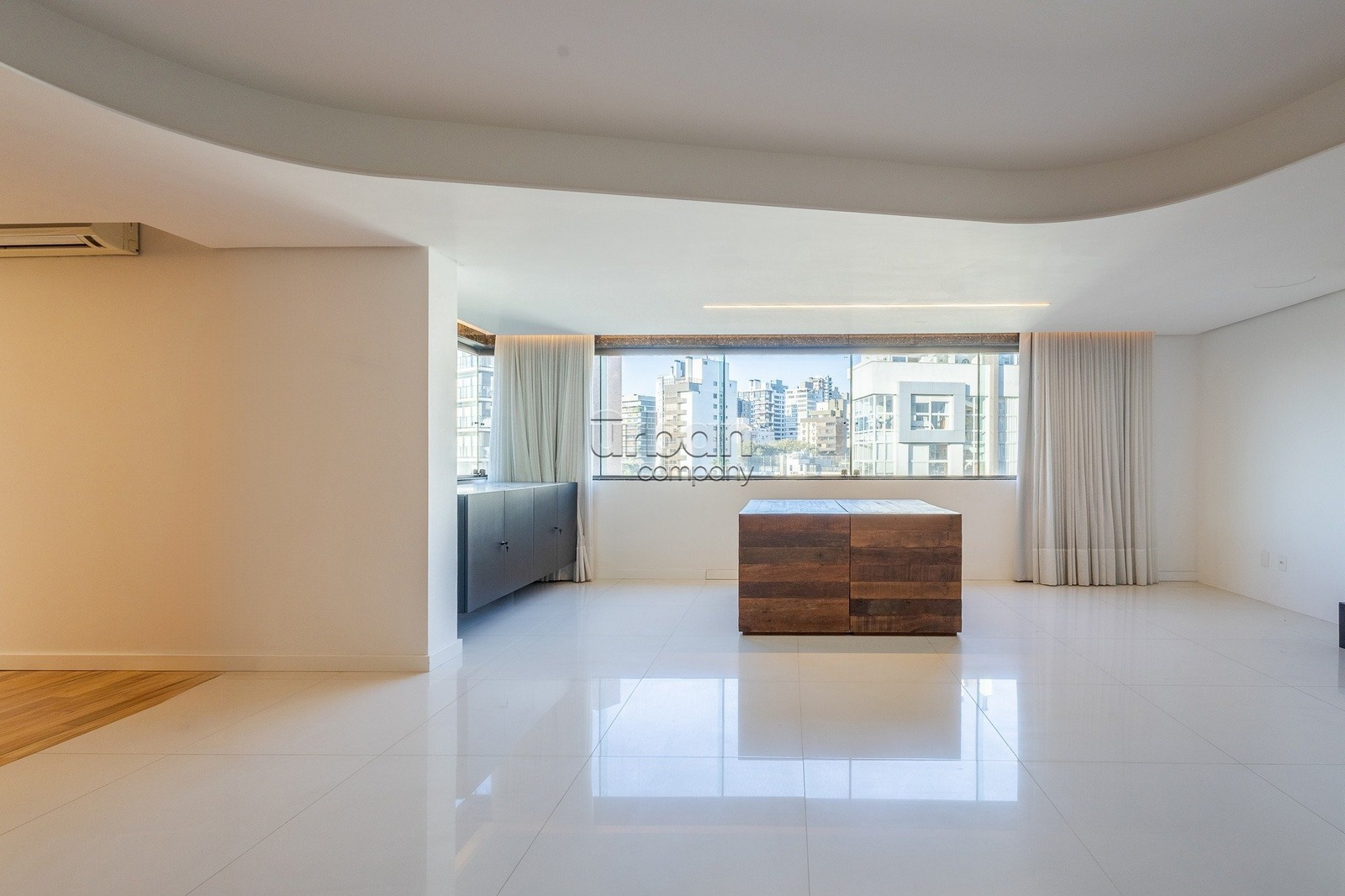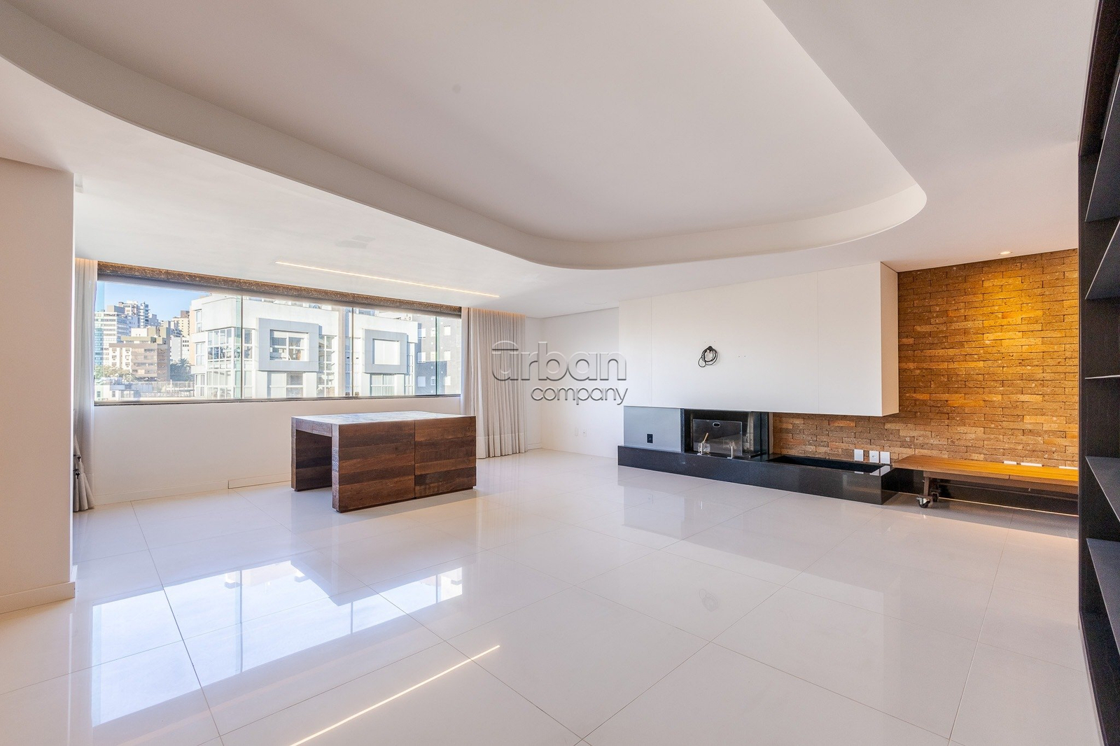 No pavimento superior, a área social conta com sala de estar e jantar integradas ao espaço gourmet com parrilla, além de um amplo terraço com vista definida para a Praça da Encol, perfeito para momentos de lazer e contemplação.