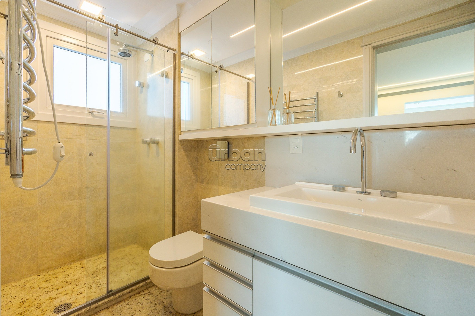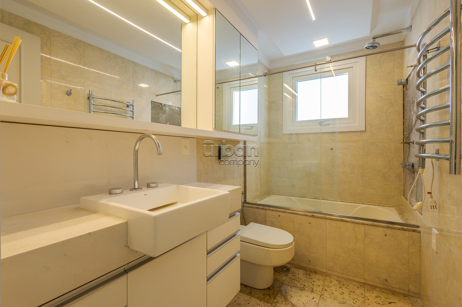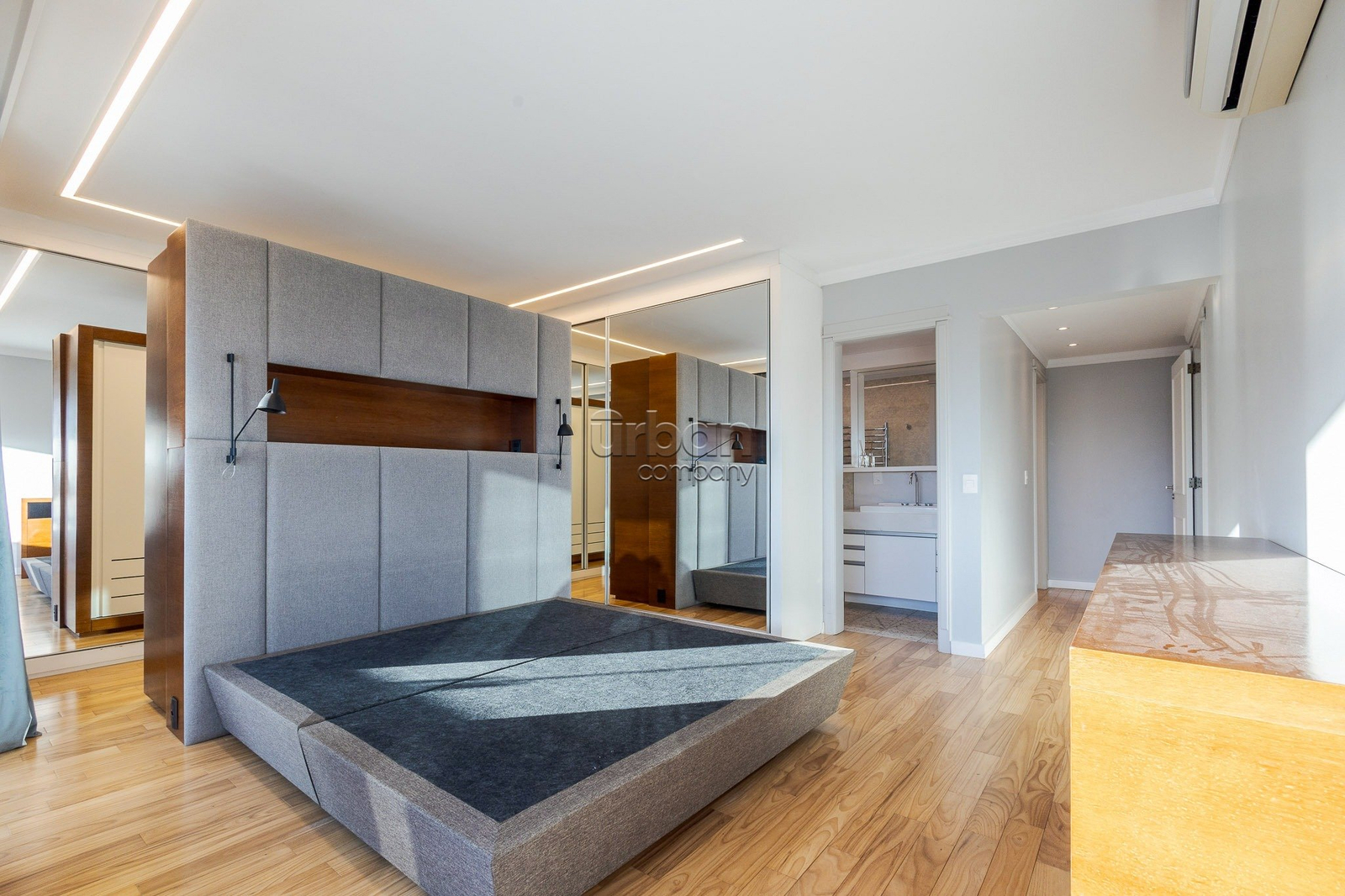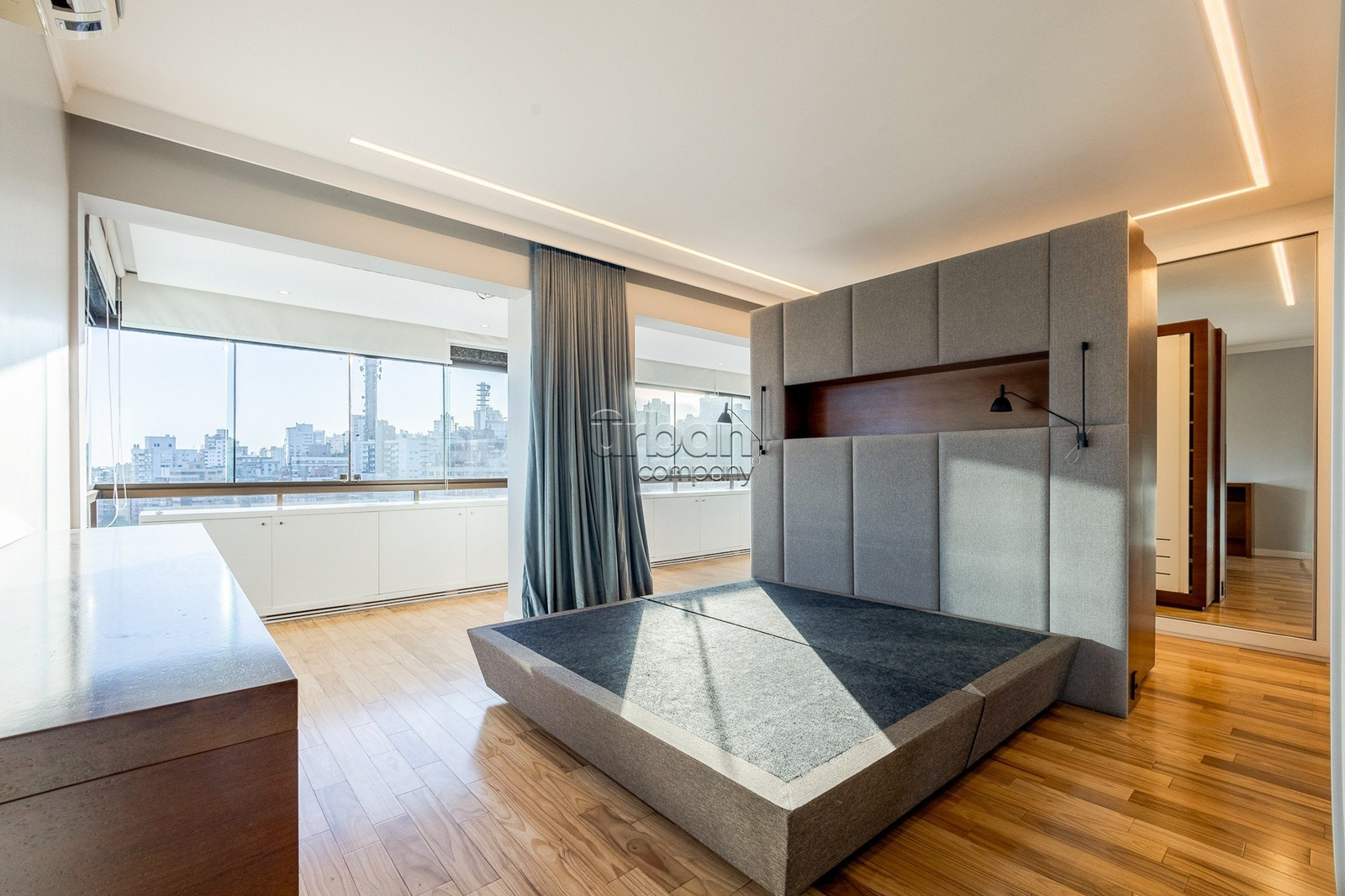 Originalmente com 3 suítes, atualmente está configurada como uma ampla suíte master, com possibilidade de reverter facilmente para 2 suítes, conforme a necessidade do novo morador.