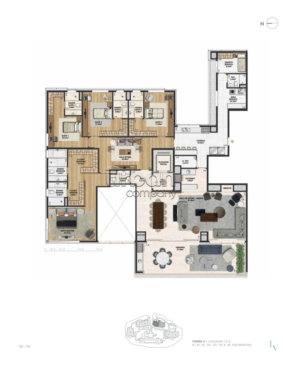 O apartamento conta com cinco banheiros e três vagas cobertas de garagem, além de uma planta inteligente e espaçosa, ideal para quem valoriza elegância, funcionalidade e uma vista deslumbrante para o Rio Guaíba. Cada detalhe foi pensado para proporcionar uma vivência refinada, com ambientes amplos e bem distribuídos.