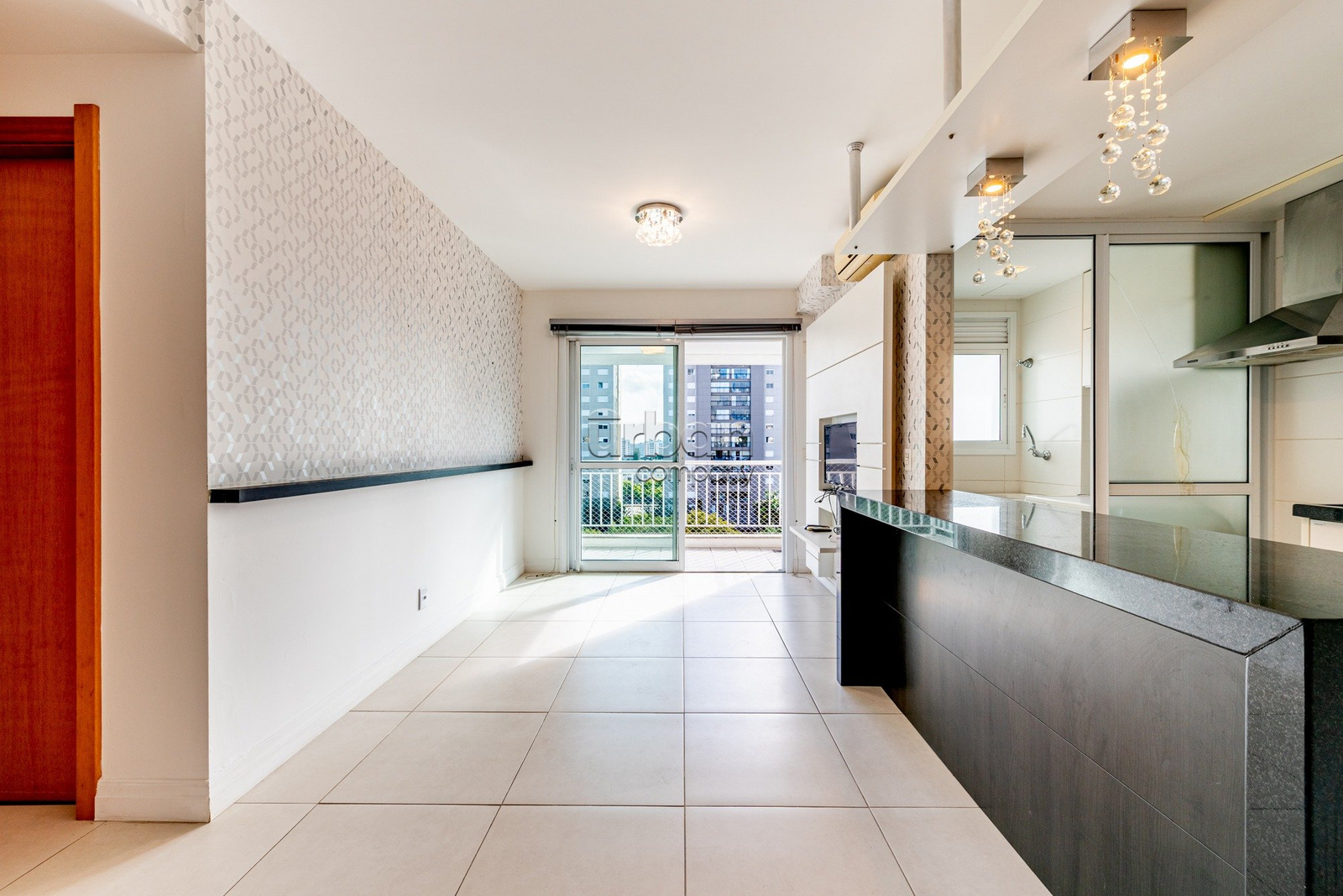O imóvel oferece living espaçoso para dois ambientes, sacada aberta, cozinha americana completa e área de serviço independente. A planta é bem distribuída e funcional, com acabamento de qualidade e uma vaga de garagem coberta.