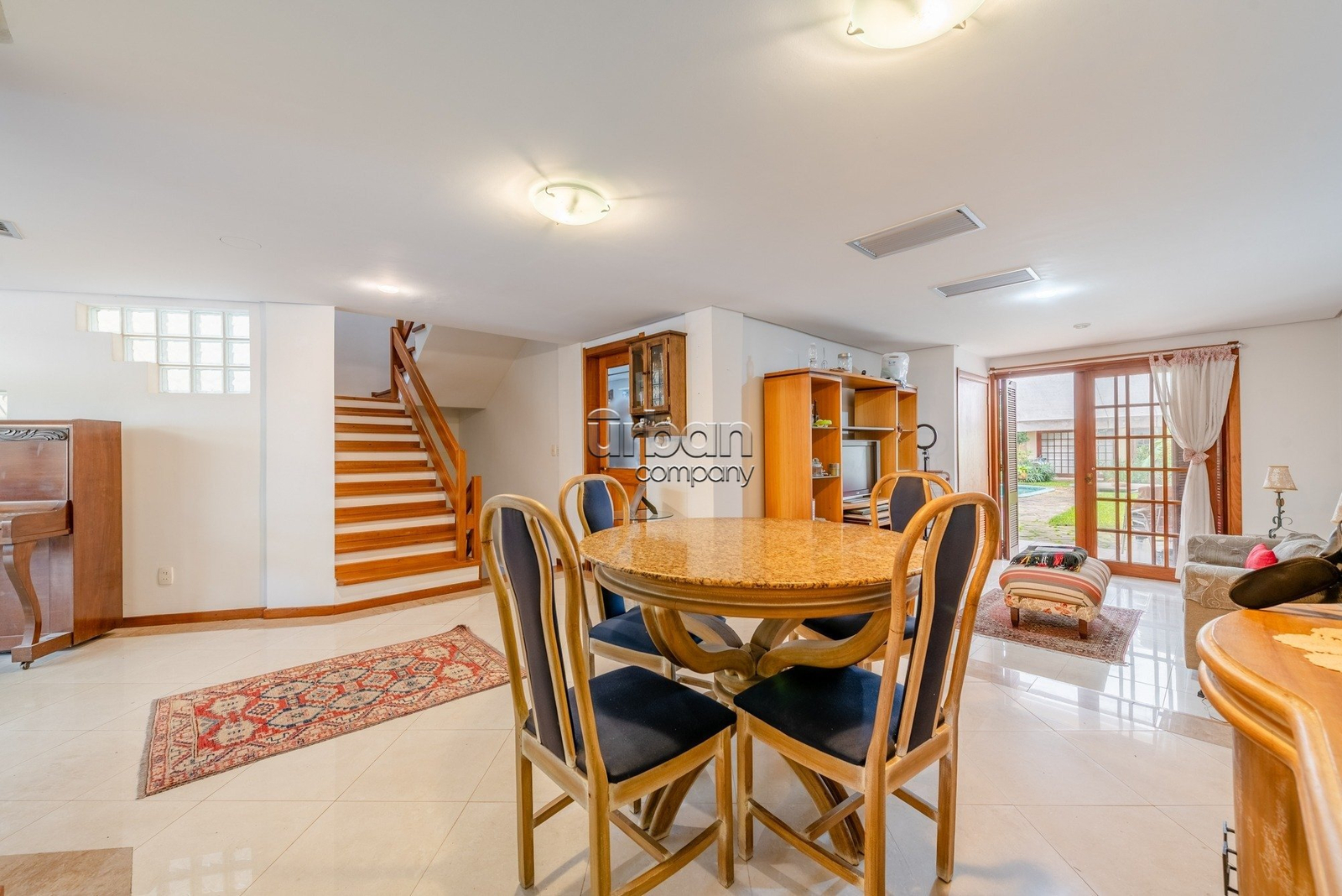 No subsolo, o imóvel dispõe de garagem com acesso direto ao jardim e ao living, além de lavanderia, despensa e banho auxiliar, compondo uma área de serviço completa.