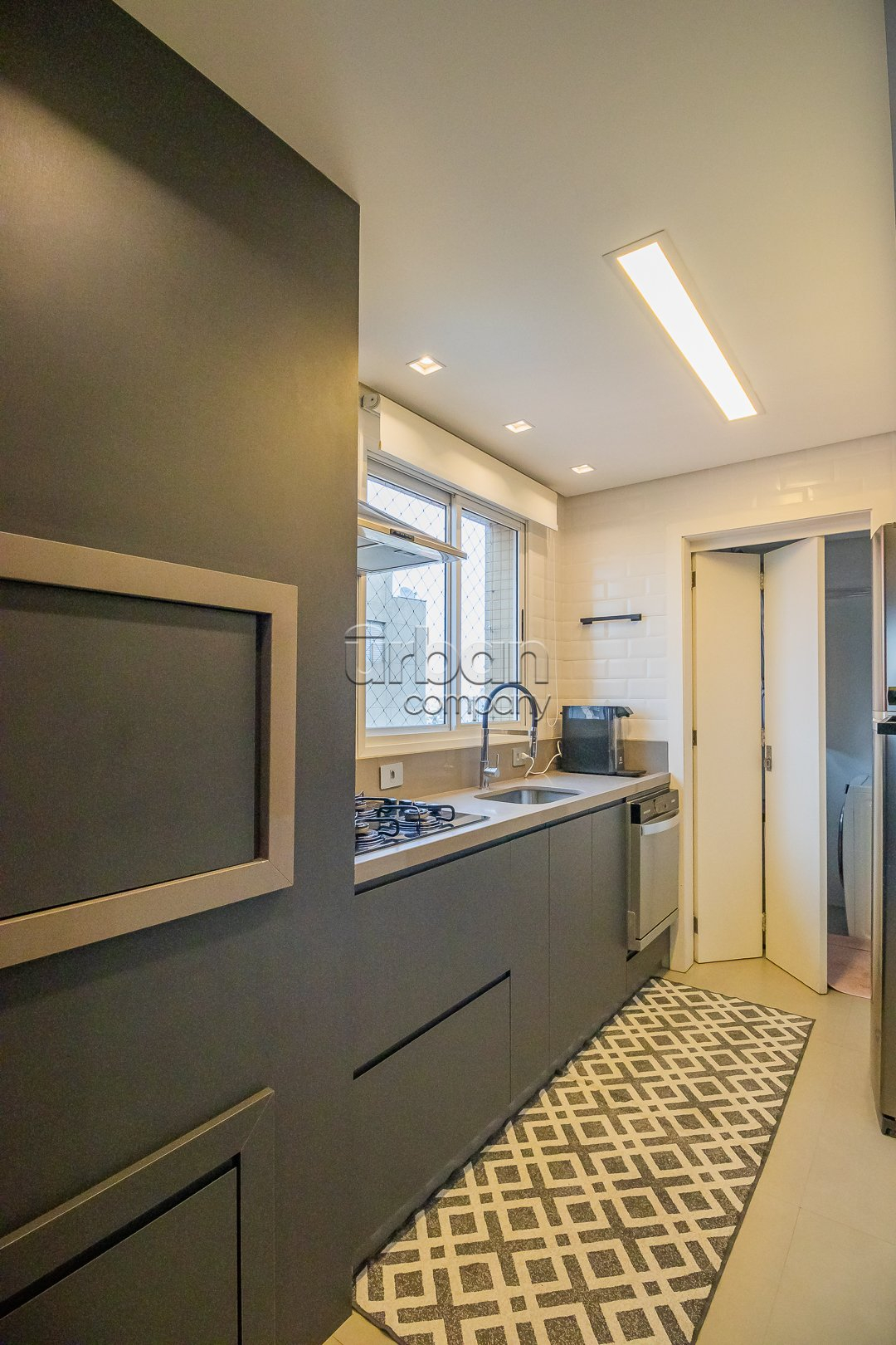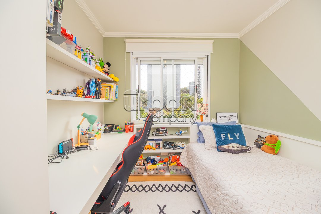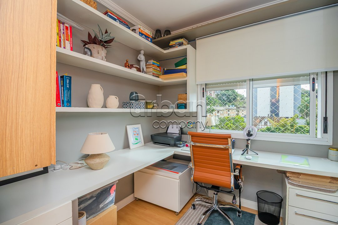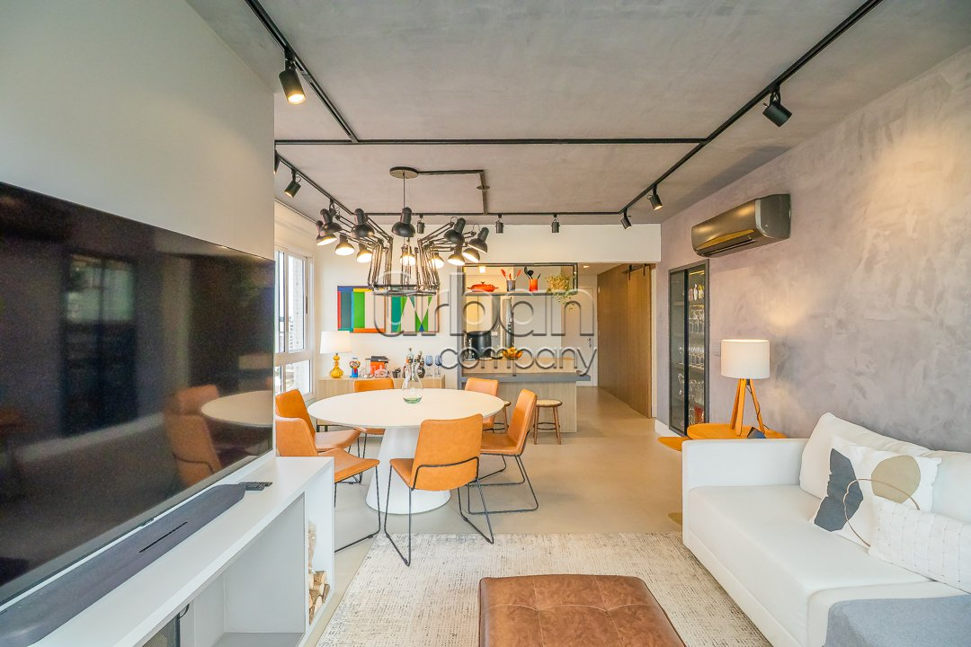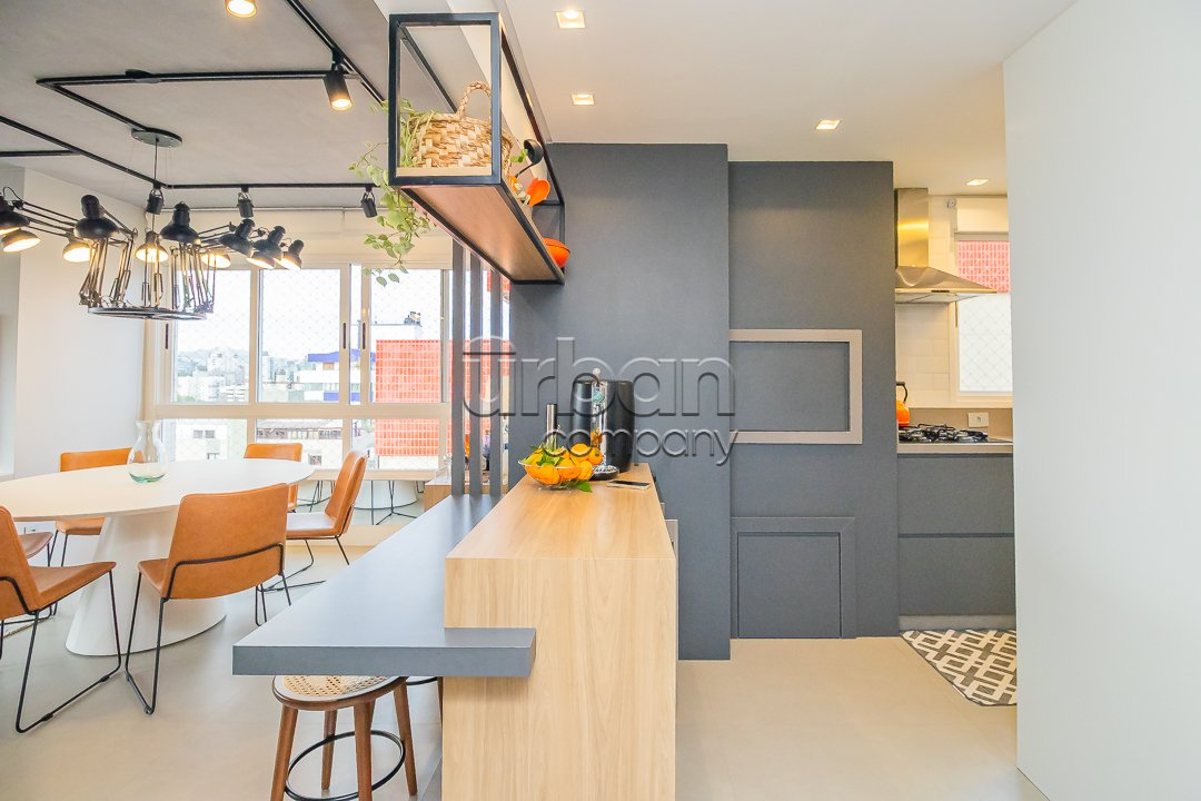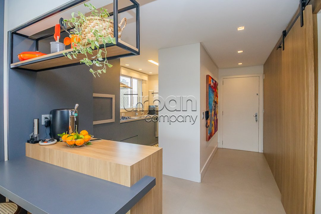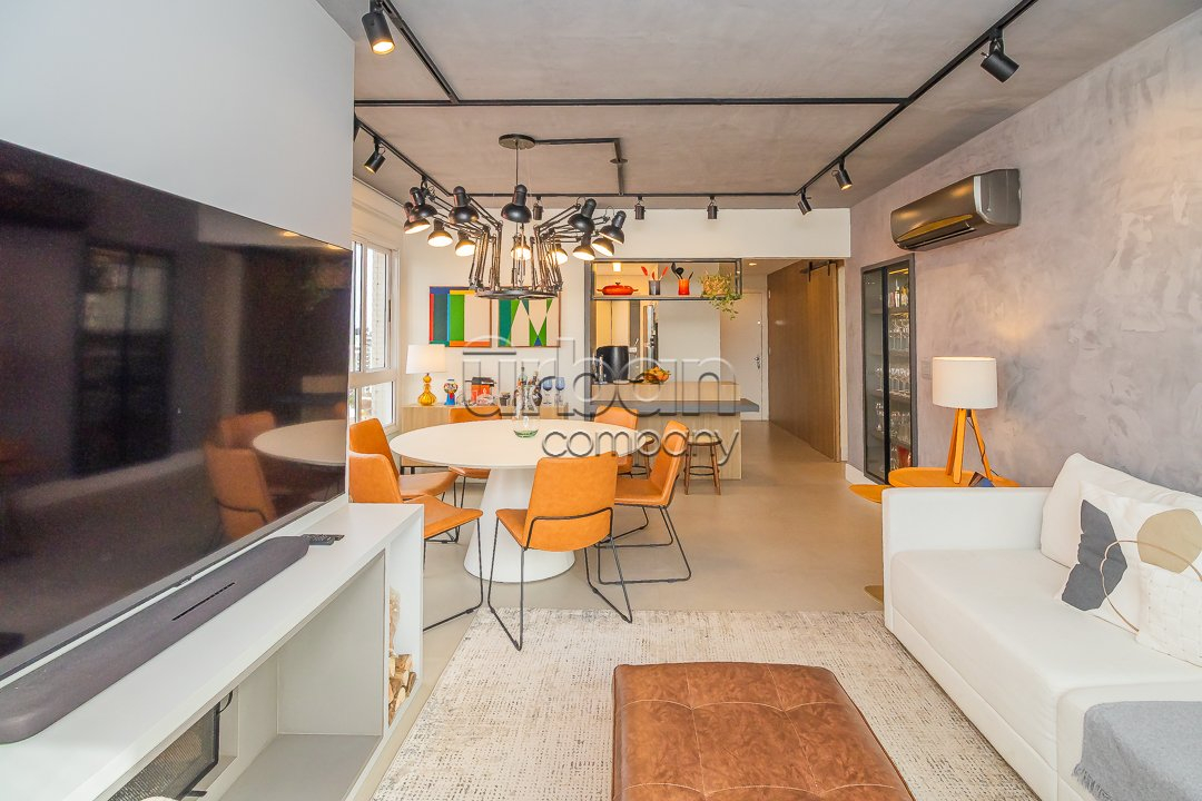 O living possui dois ambientes e conta com uma lareira, ideal para os dias frios. O imóvel dispõe de hall de entrada, cozinha americana com churrasqueira e lavanderia. Possui vista panorâmica, ótima posição solar (Leste e Norte), é muito bem ventilado e conta com água quente e gás central com medição individual.