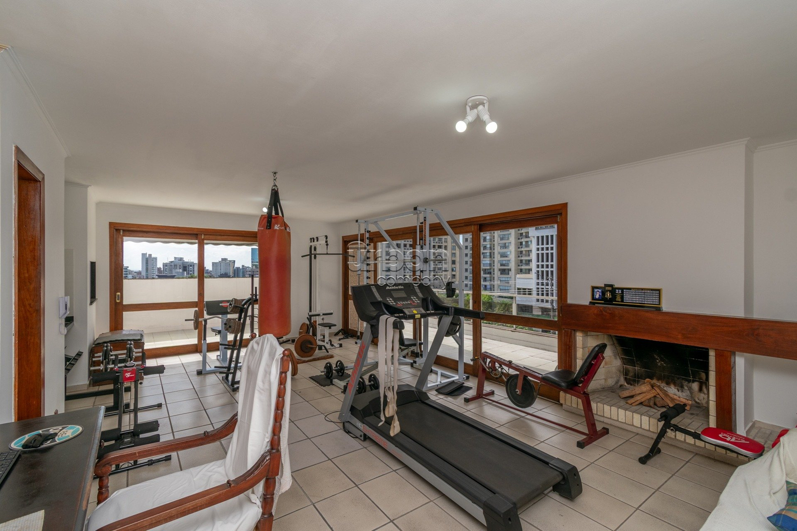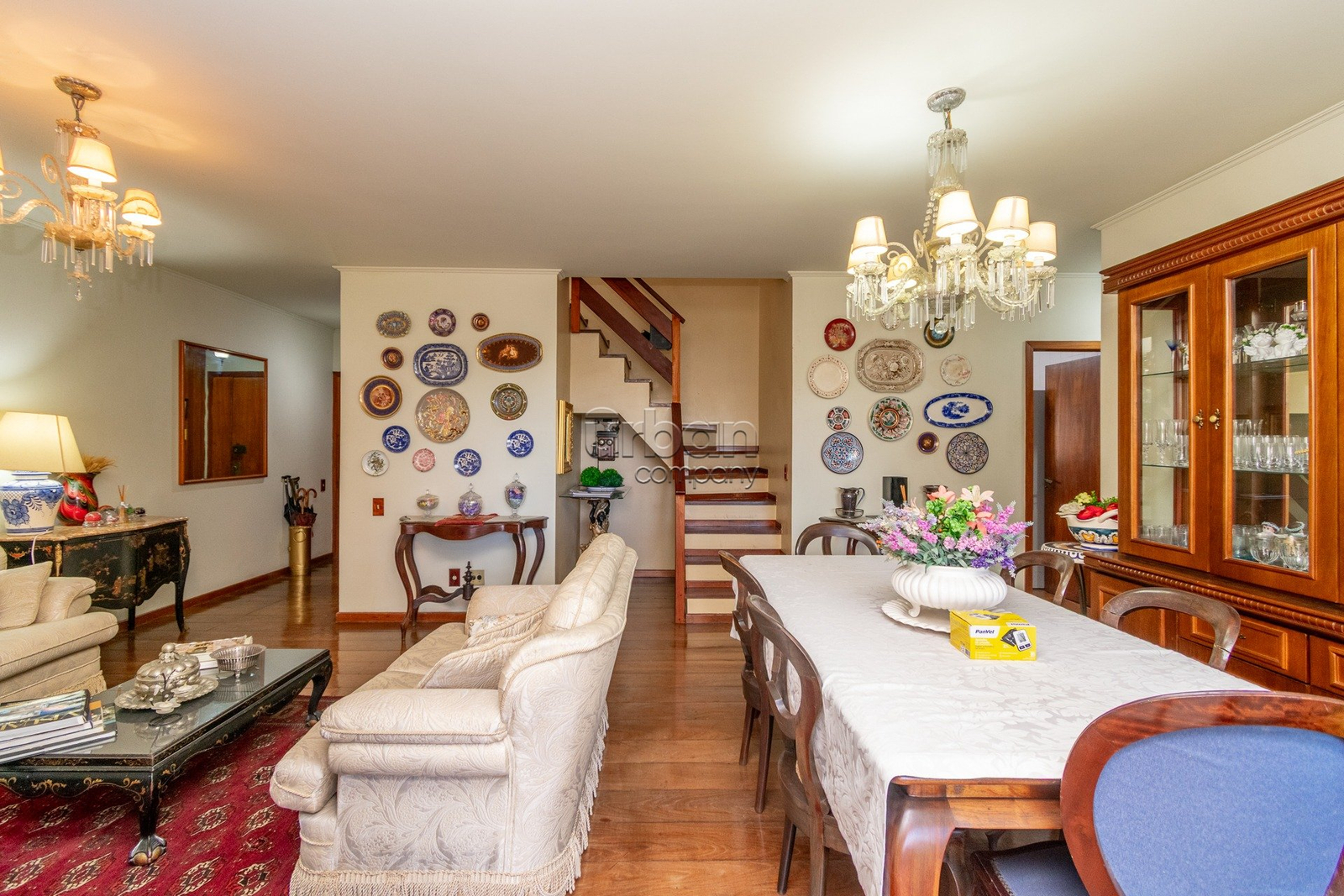 O pavimento superior surpreende com uma espaçosa área social equipada com lareira e churrasqueira, perfeita para receber amigos e criar momentos memoráveis. Há também um banheiro completo, espaço para home office, depósito e um extenso terraço com vista aberta para a Avenida Carlos Gomes ? um verdadeiro convite ao relaxamento.