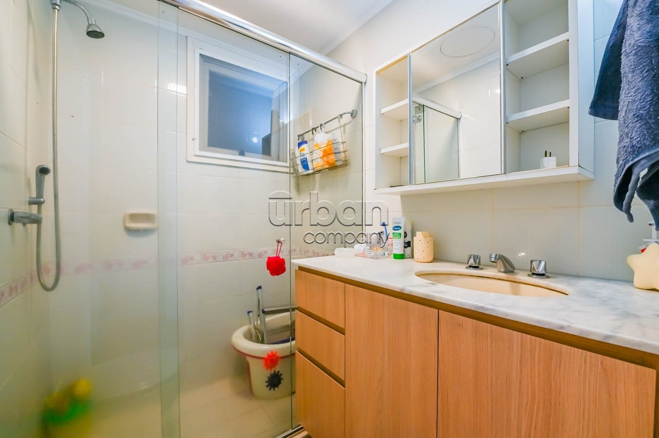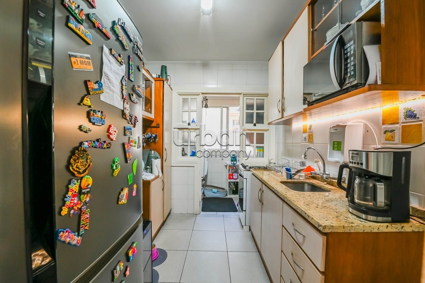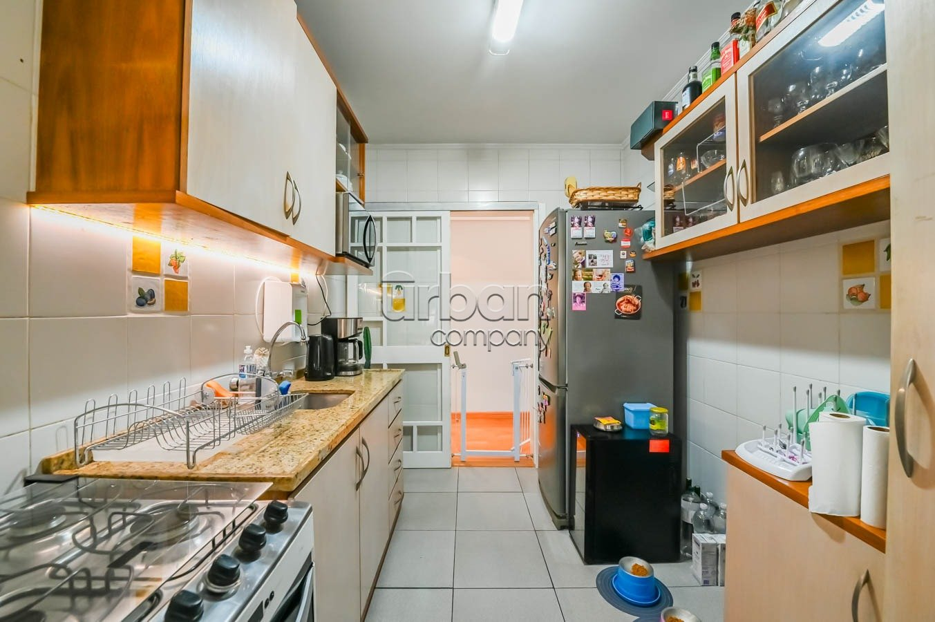 A cozinha está equipada com móveis sob medida que permanecem no imóvel, agregando praticidade e estilo ao ambiente. O segundo banheiro é completo, atendendo perfeitamente às necessidades da família ou visitantes.