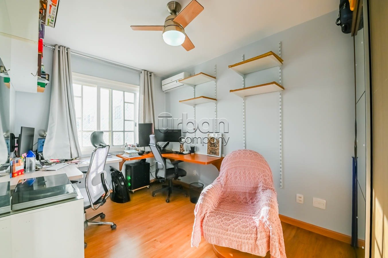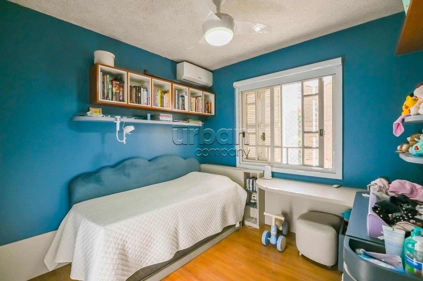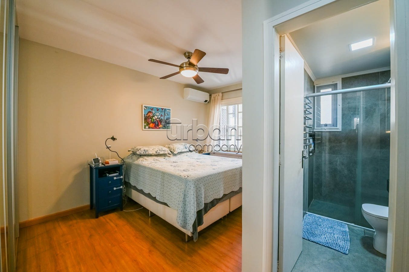 A cozinha está equipada com móveis sob medida que permanecem no imóvel, agregando praticidade e estilo ao ambiente. O segundo banheiro é completo, atendendo perfeitamente às necessidades da família ou visitantes.