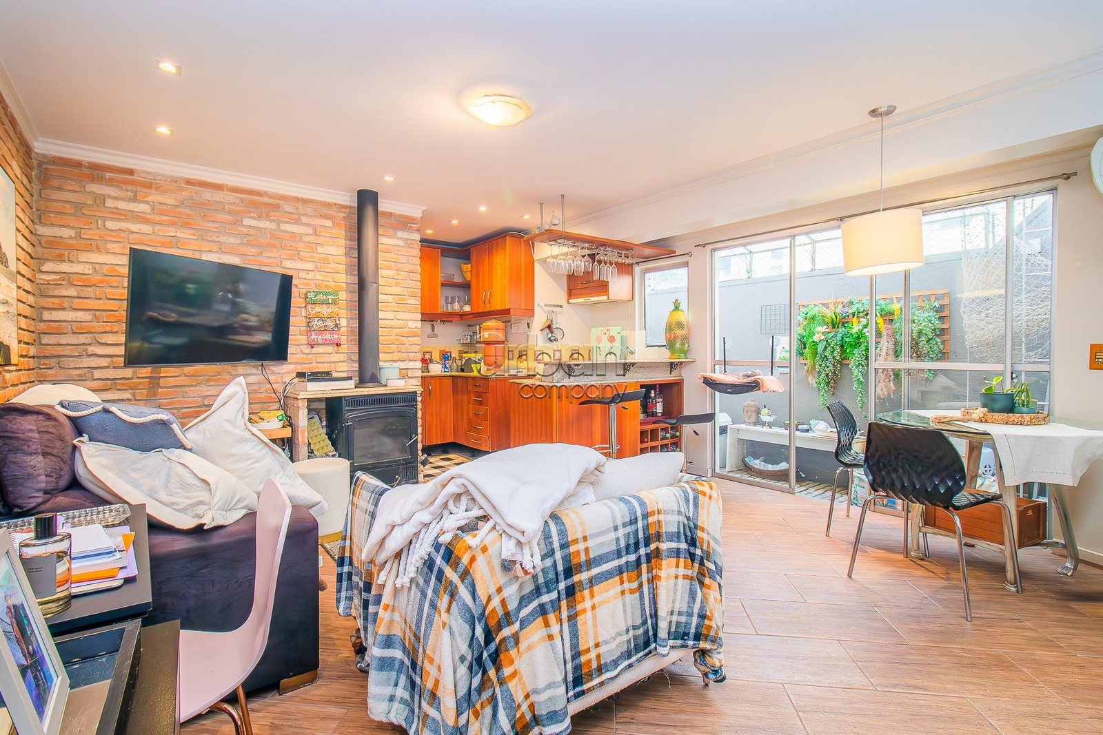O segundo apartamento, com entrada independente, possui mais de 87m² e é perfeito para diversas finalidades. Com living com lareira integrado à cozinha americana, dois dormitórios e um banheiro social com banheira de hidromassagem, pode ser utilizado como moradia para filhos, espaço para hóspedes, área gourmet para receber amigos ou até mesmo como ambiente comercial.