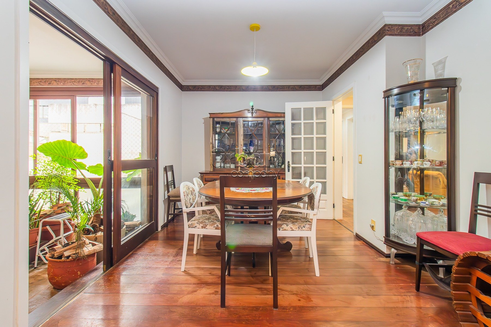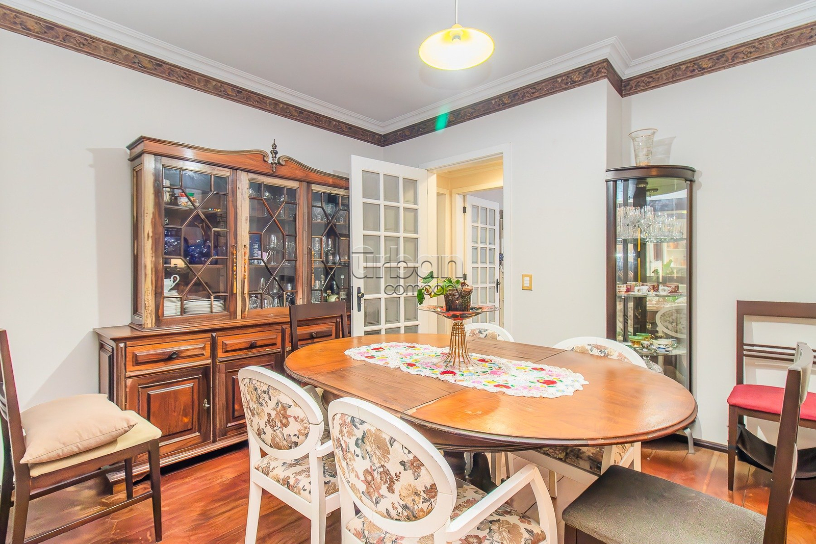 Composto por dois apartamentos independentes sob a mesma matrícula, o principal oferece um living generoso em três ambientes com lareira, sala de jantar, lavabo e um amplo escritório ideal para home office. A área íntima conta com três dormitórios, sendo uma suíte com closet, além de banheiro social e um encantador jardim de inverno. A cozinha é espaçosa e funcional, conectada à área de serviço separada e à dependência completa.