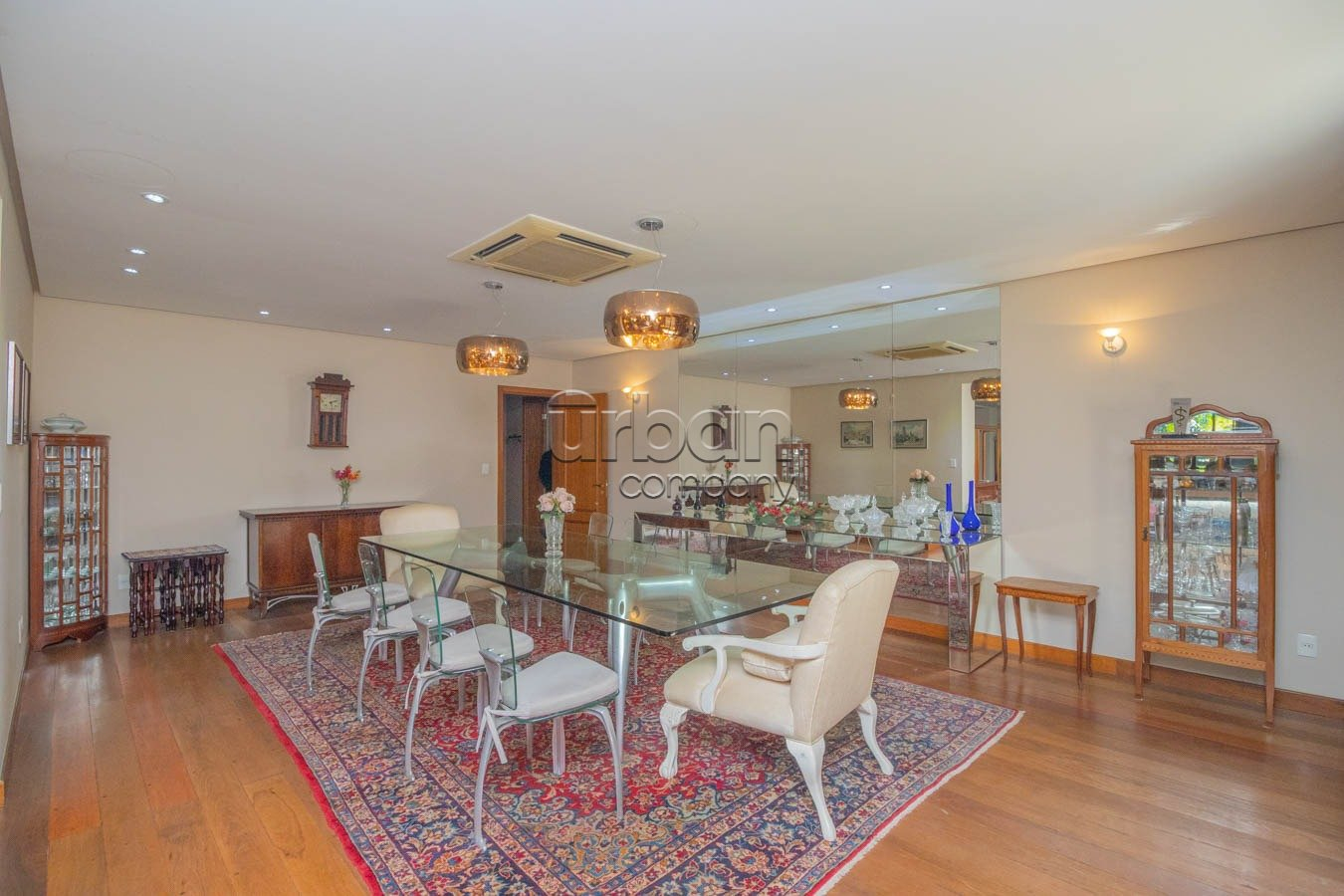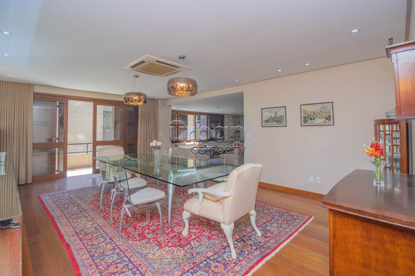 A área íntima conta com quatro dormitórios, sendo três suítes generosas. A suíte master é um verdadeiro refúgio, equipada com closet e sacada privativa. O living, distribuído em quatro ambientes distintos, é perfeito para receber com elegância, com lareira acolhedora e acesso a duas sacadas abertas que ampliam a sensação de espaço e luminosidade.