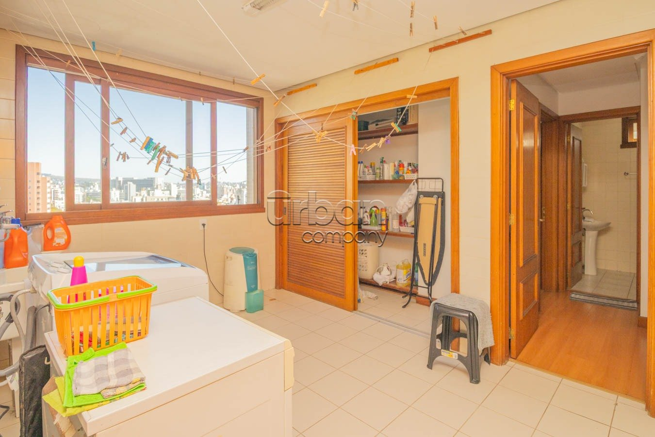 A área de serviço é separada e conta com duas dependências de empregada e banheiro auxiliar, garantindo praticidade no dia a dia. O imóvel ainda oferece quatro vagas de garagem escrituradas e individuais, além de um depósito espaçoso.