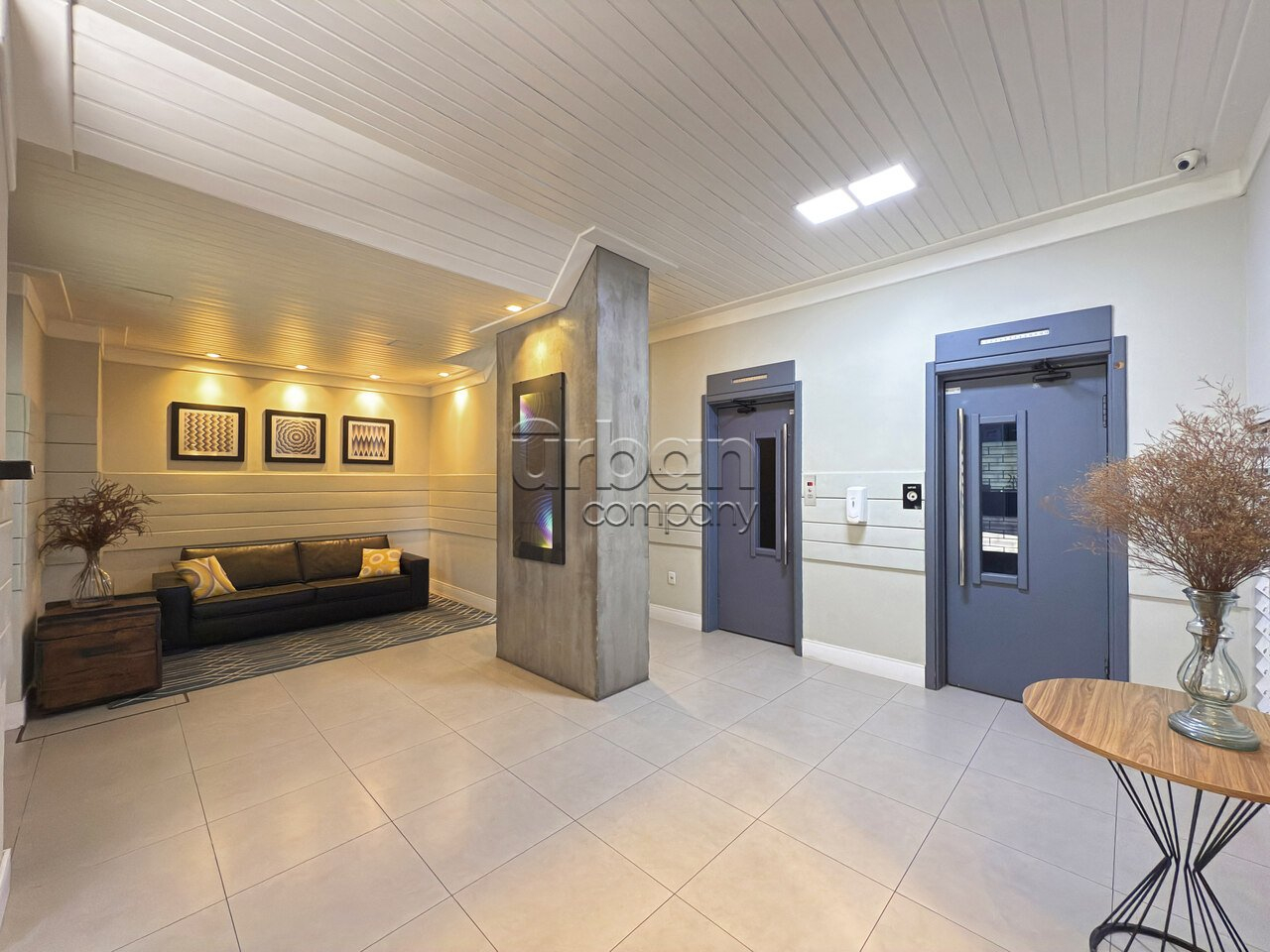 Prédio enxuto com elevador e interfone.