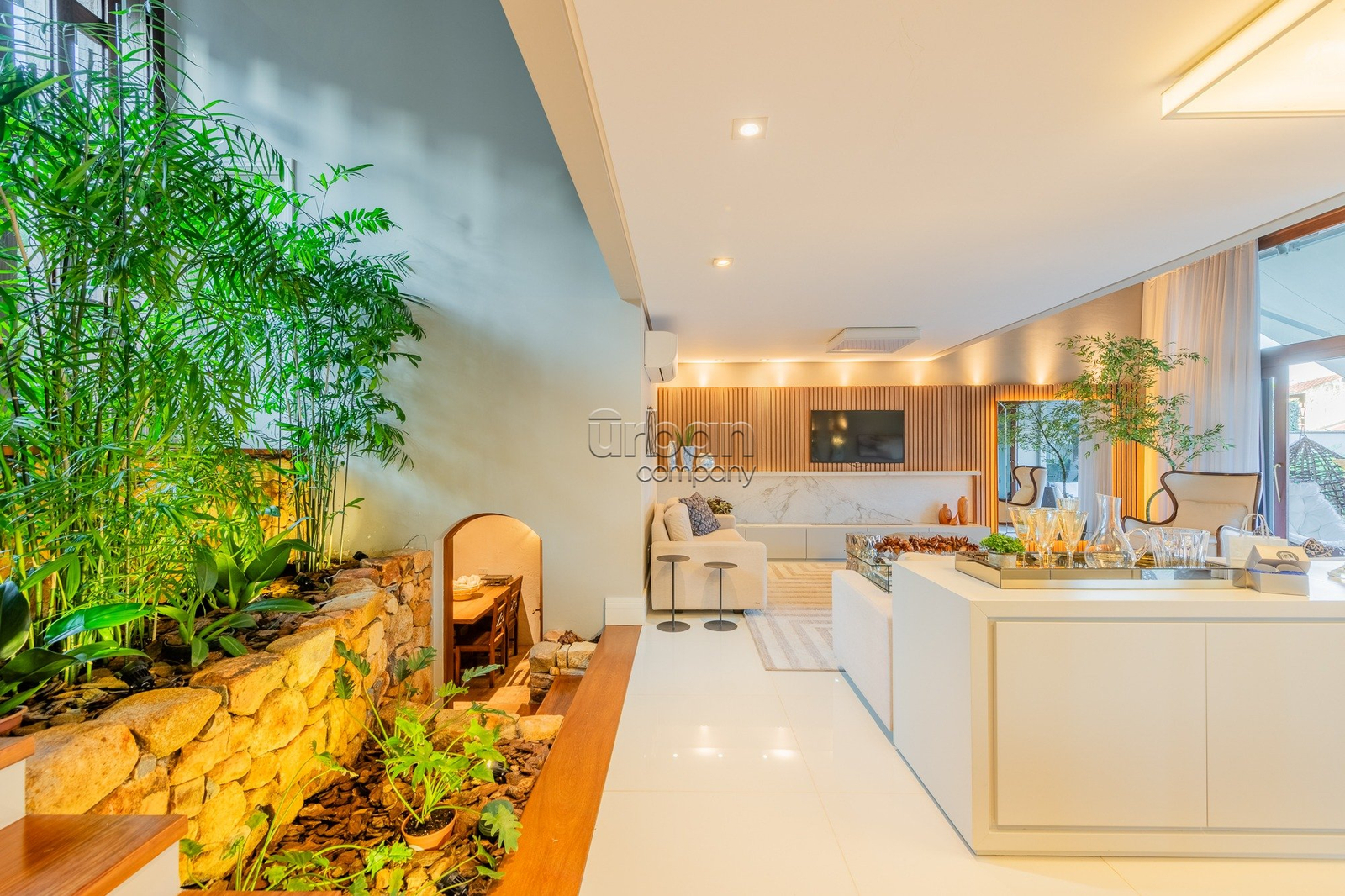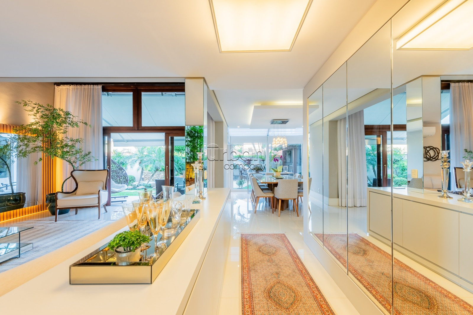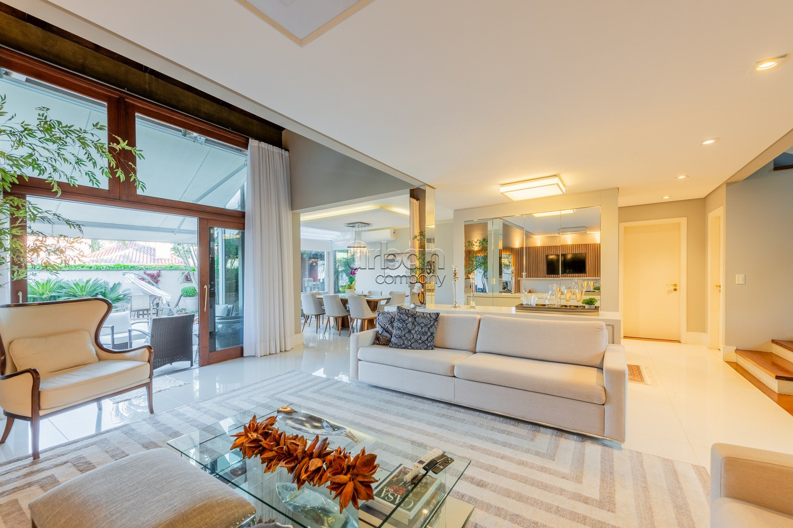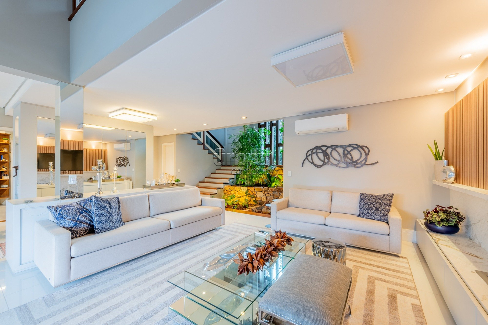 A área externa oferece piscina, espaço gourmet integrado, salão de festas, quintal, jardim de inverno, lareira, churrasqueira e placas solares. Ideal para quem busca conforto e lazer em um só lugar.