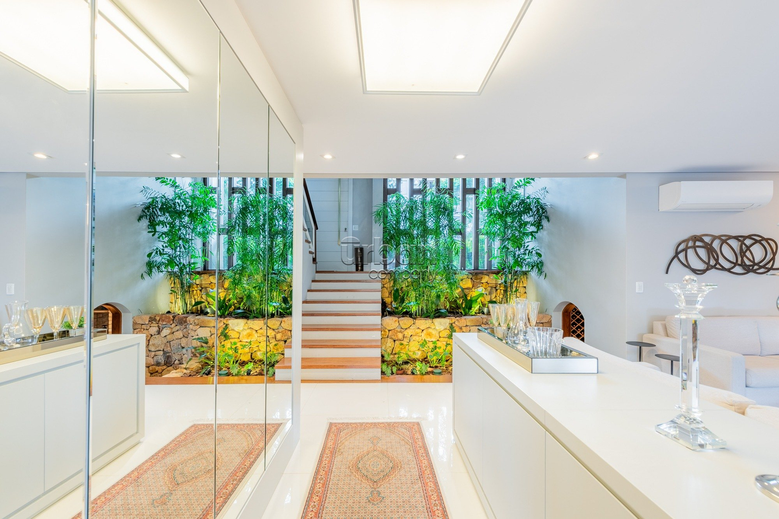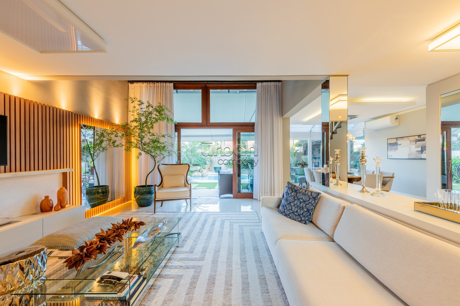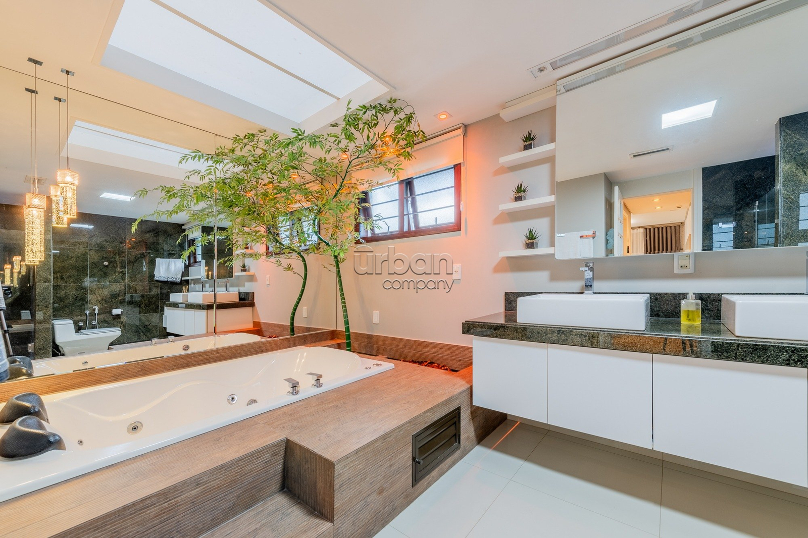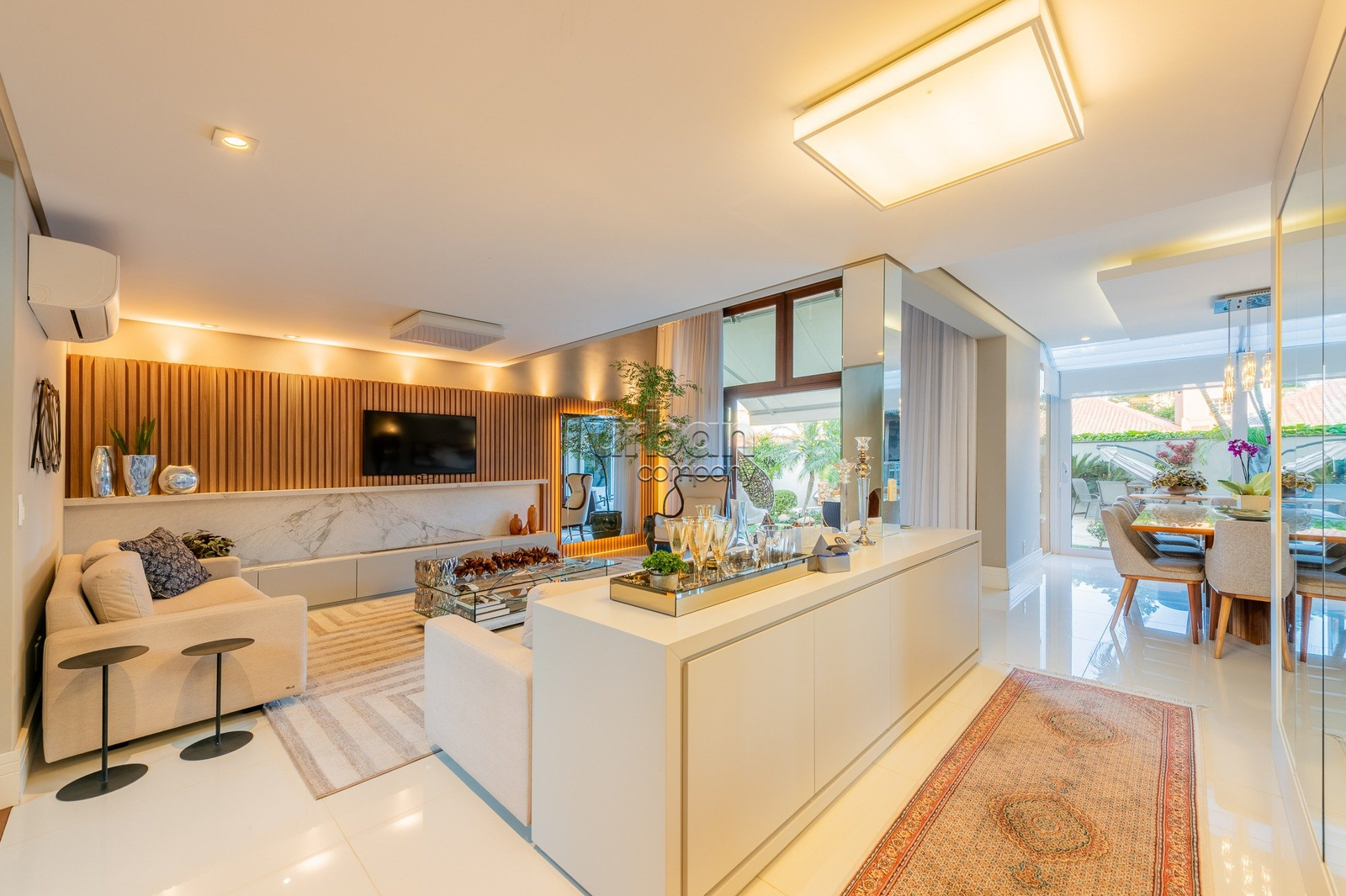 A área externa oferece piscina, espaço gourmet integrado, salão de festas, quintal, jardim de inverno, lareira, churrasqueira e placas solares. Ideal para quem busca conforto e lazer em um só lugar.