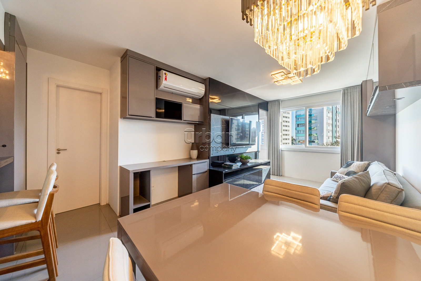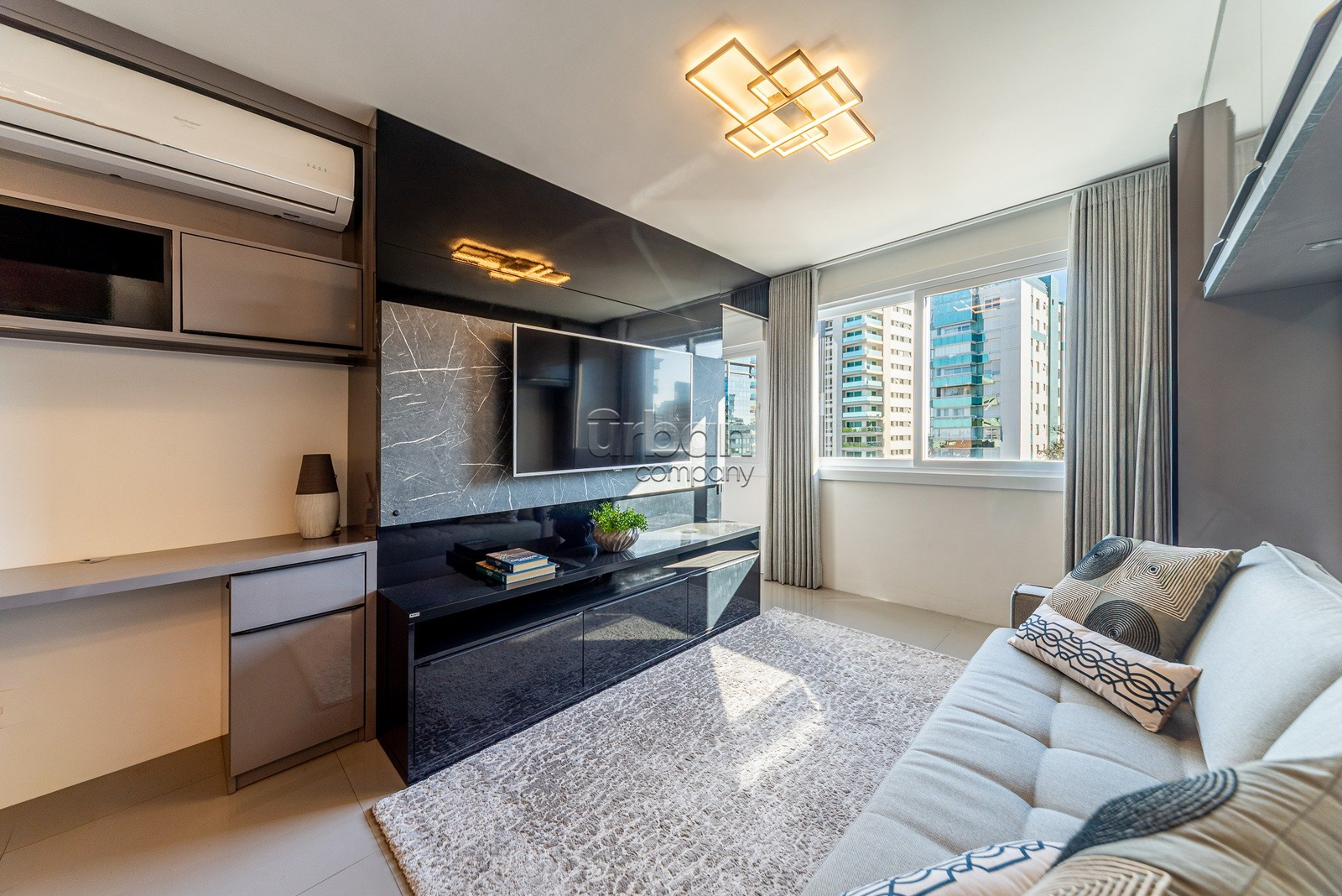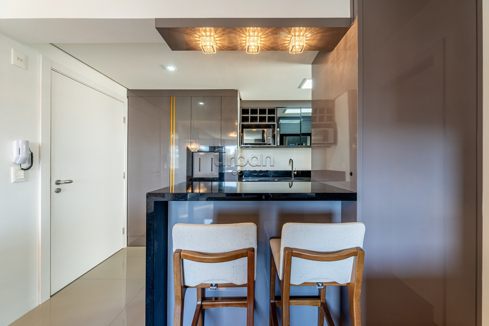 O imóvel conta com uma suíte elegante, além de lavabo, living integrado para dois ambientes e cozinha com área de serviço incorporada. Iluminação impecável e uma decoração de tirar o fôlego completam o charme desse espaço. Possui 2 vagas de garagem escrituradas e está localizado na área mais estratégica do bairro, próximo a todas as conveniências.