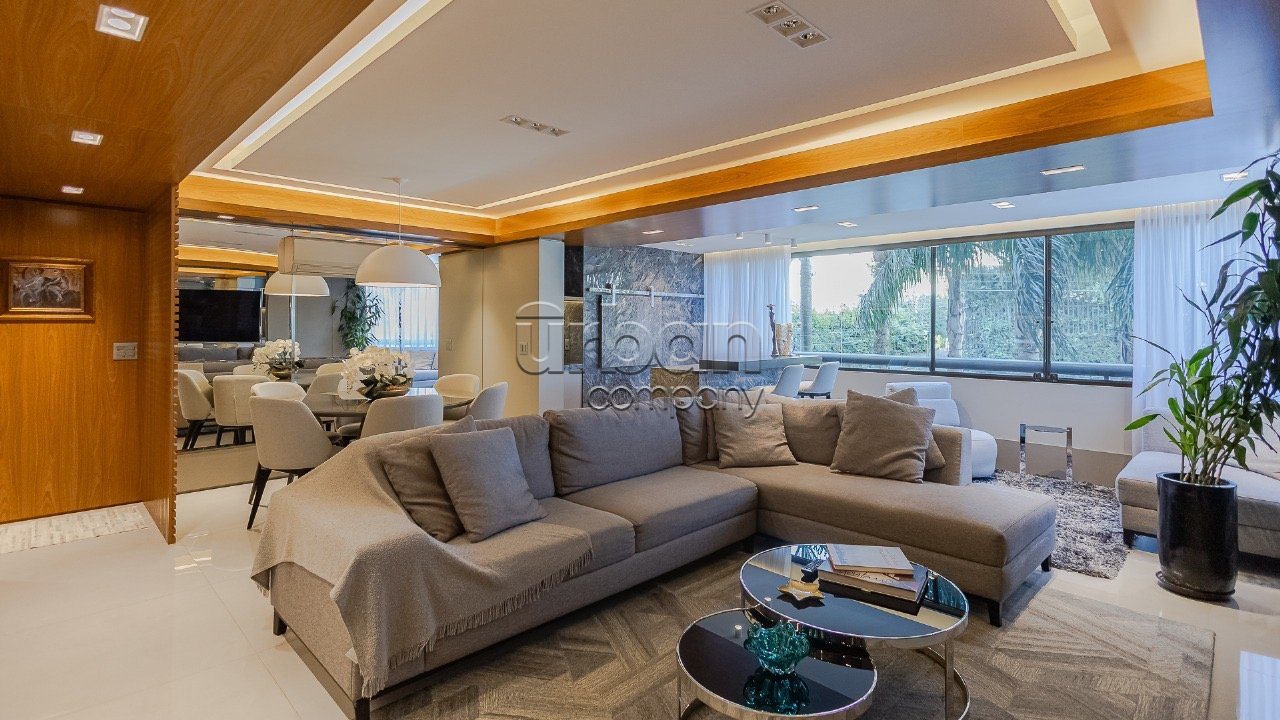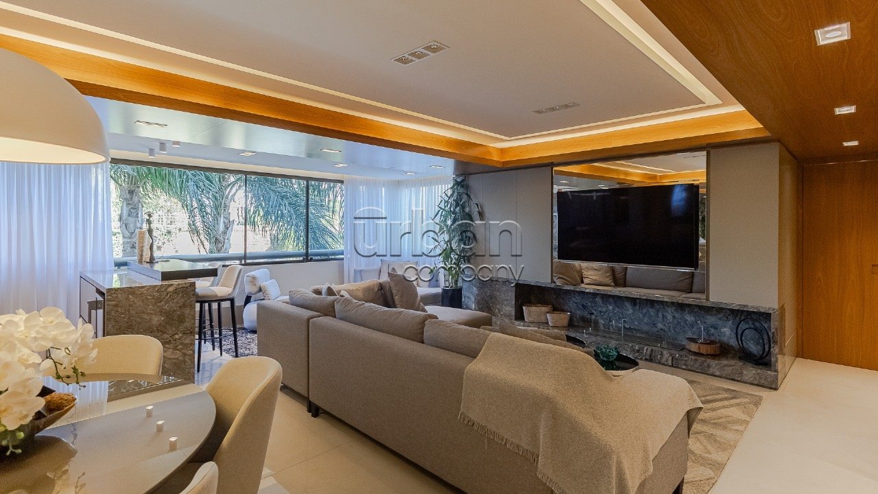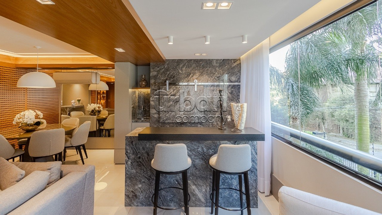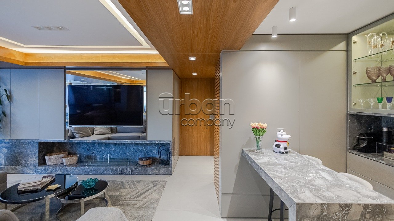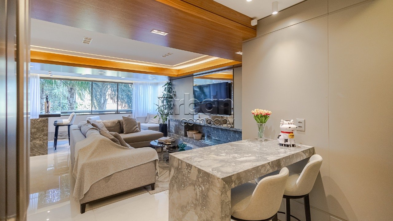 Apartamento com 3 dormitórios, suíte e Home office, planta de 123,96m² de área privativa. Oferece amplo living para 3 ambientes, estar, jantar e espaço gourmet. Cozinha, área de serviço separada. Conta com 2 vagas de estacionamento cobertas.